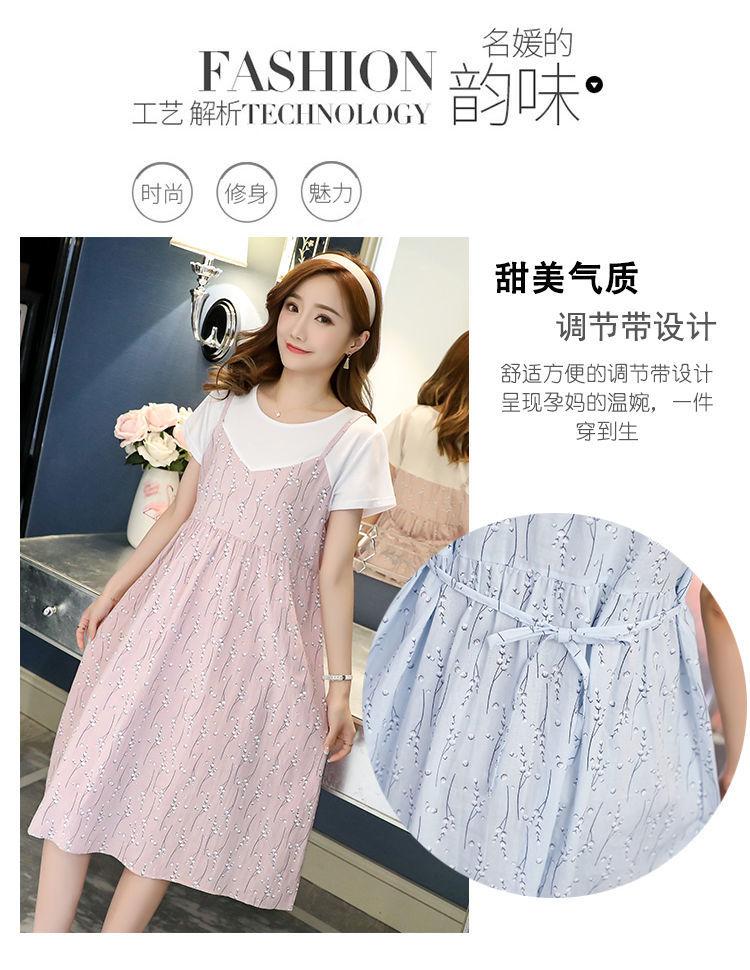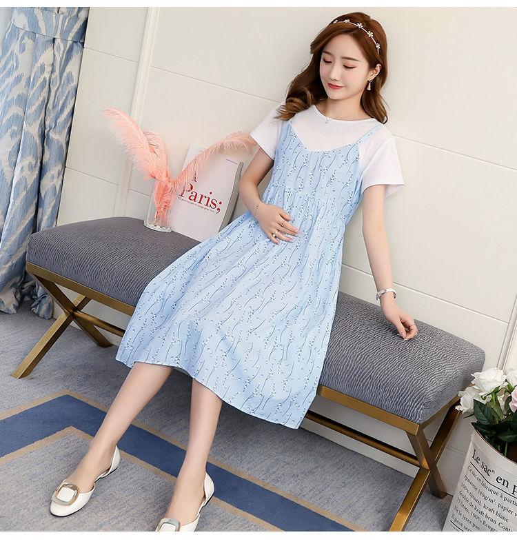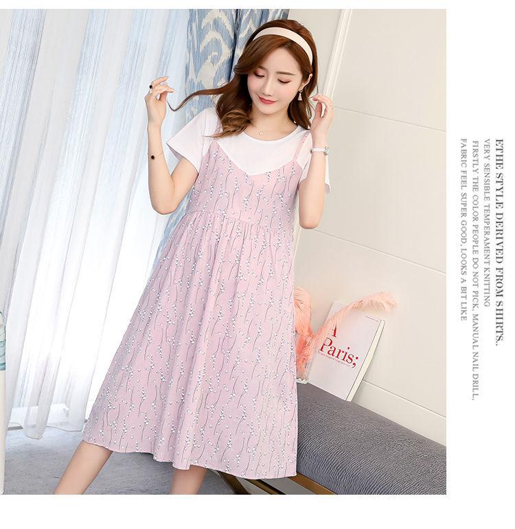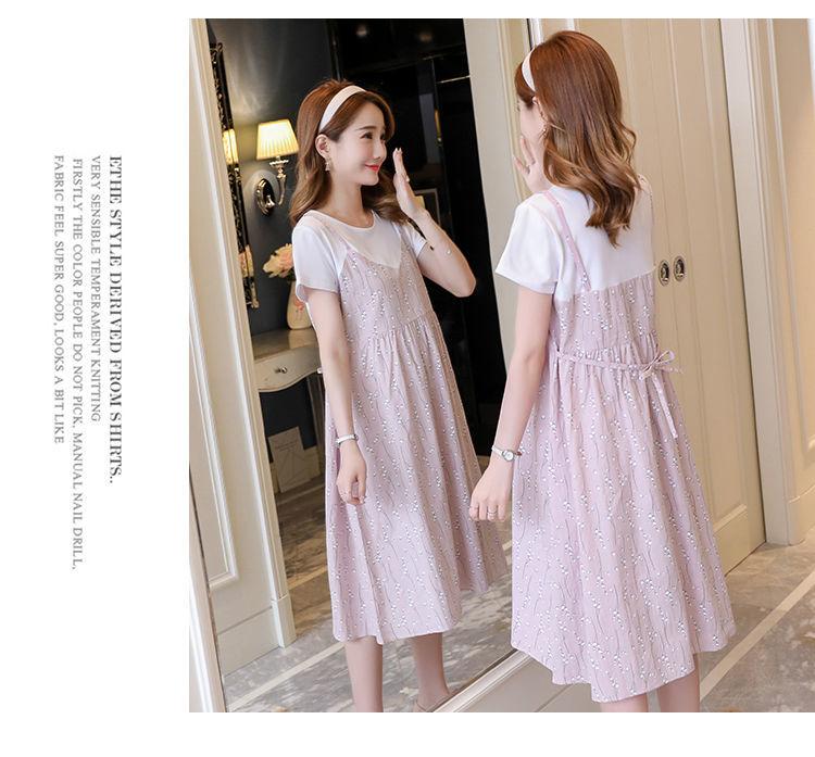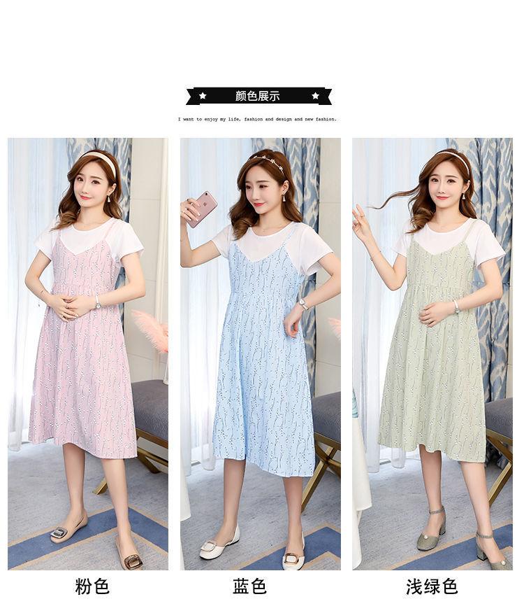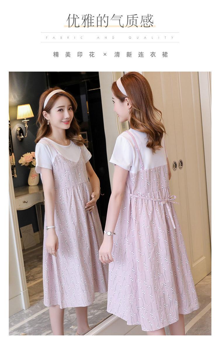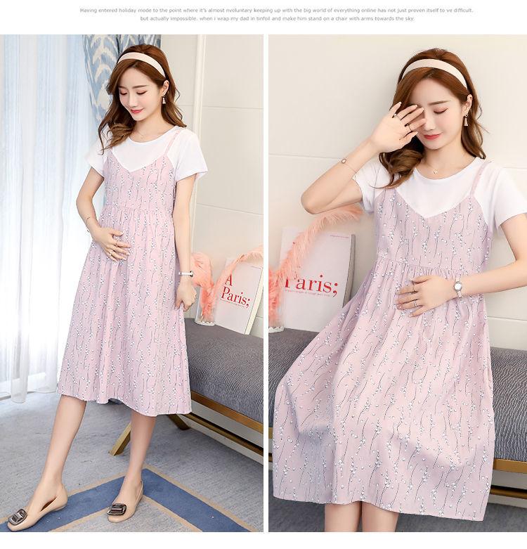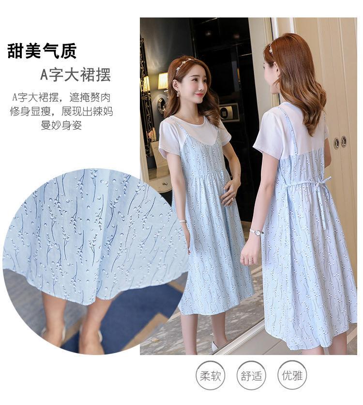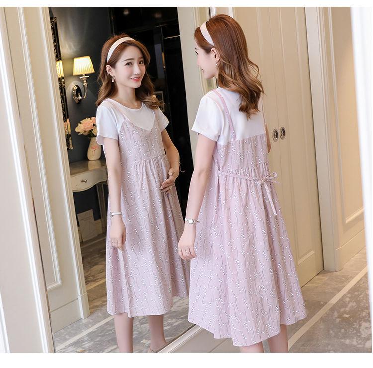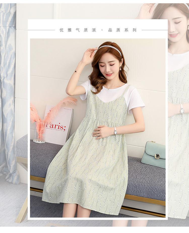 Vestido de verano de maternidad para salir, vestido de verano moderno para mamá sexy, floral pequeño fresco de dos piezas falsas