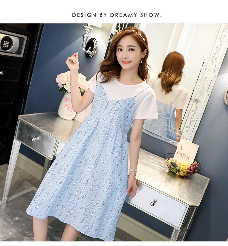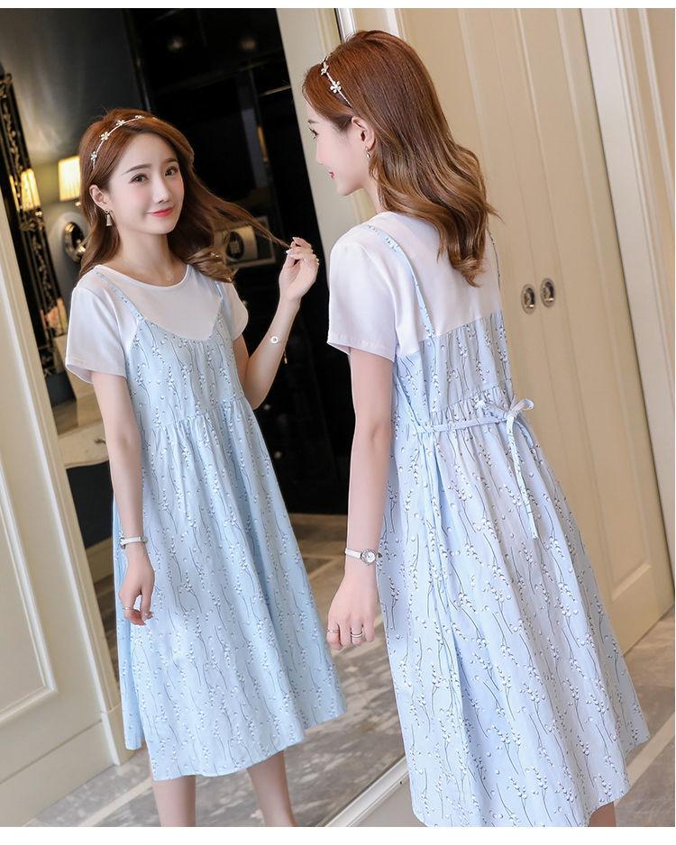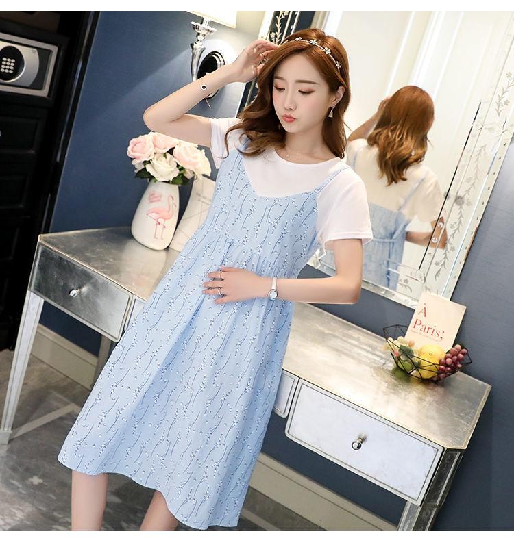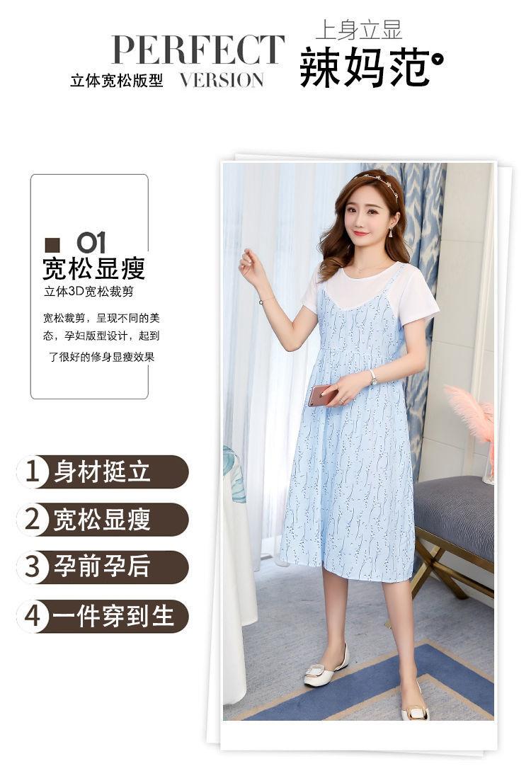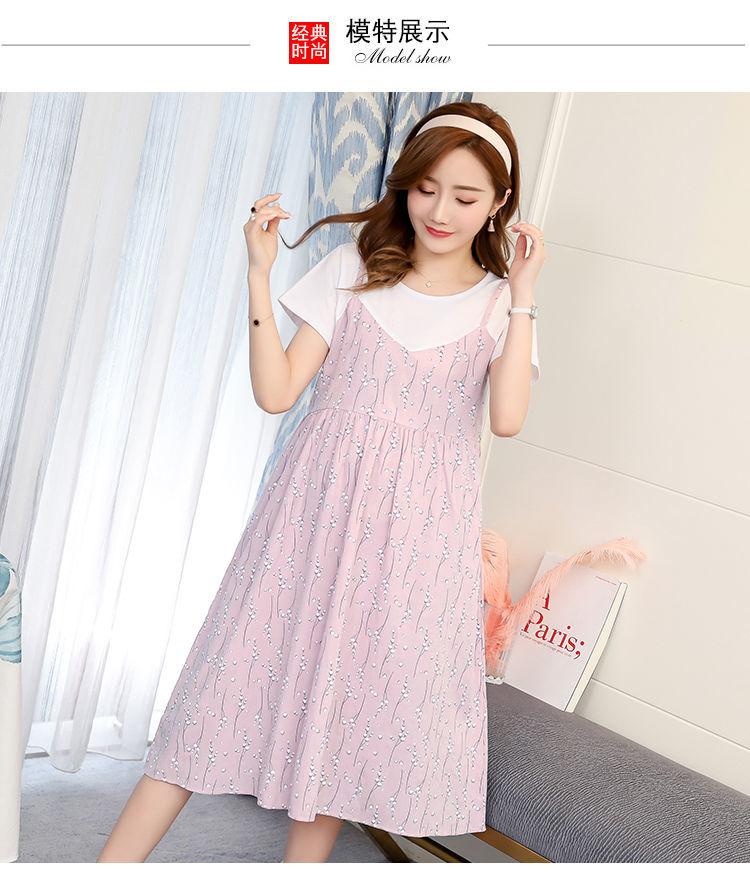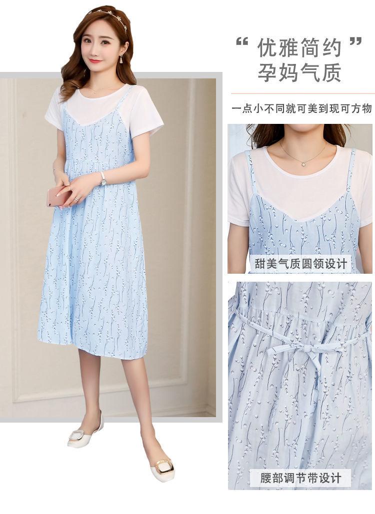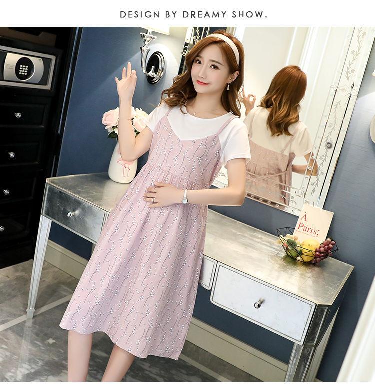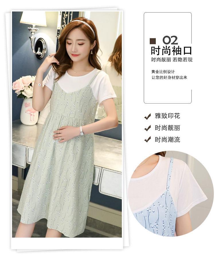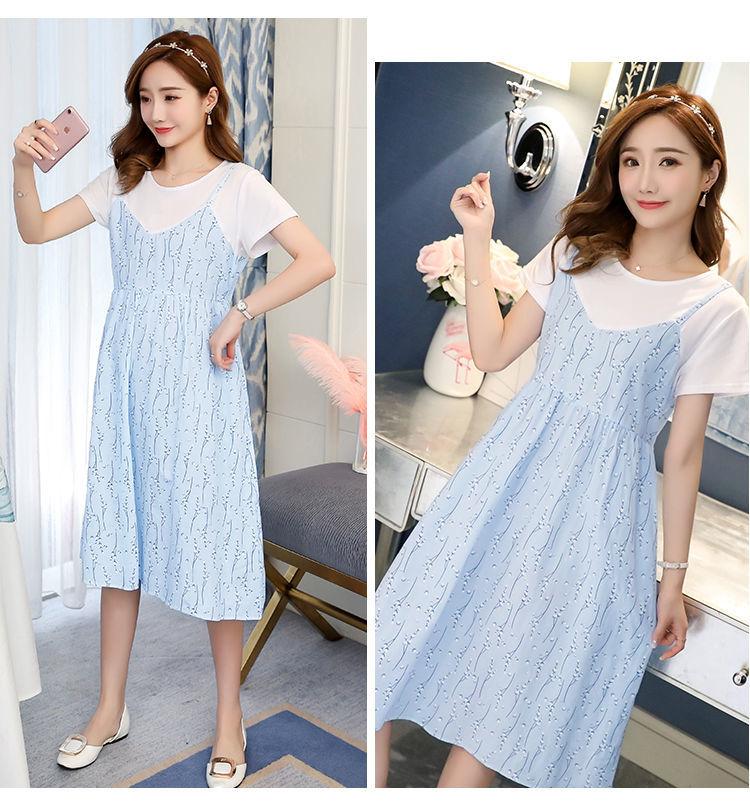 Vestido de verano de maternidad para salir, vestido de verano moderno para mamá sexy, floral pequeño fresco de dos piezas falsas