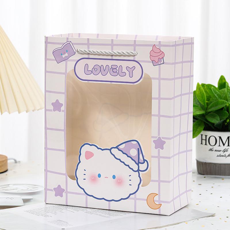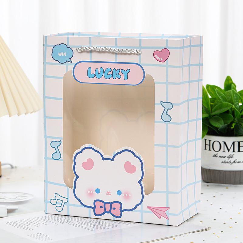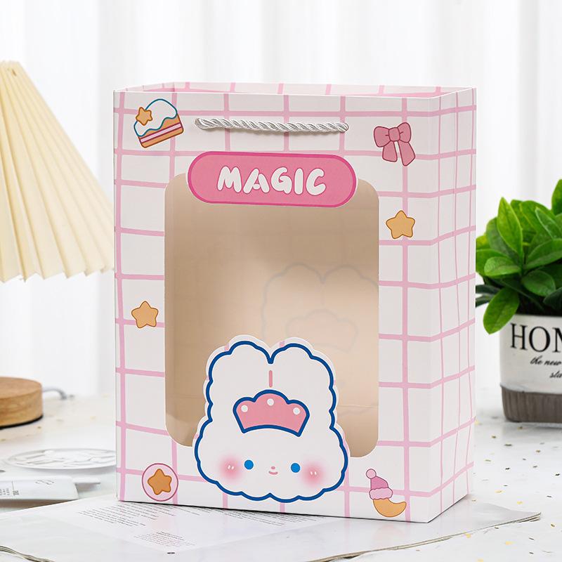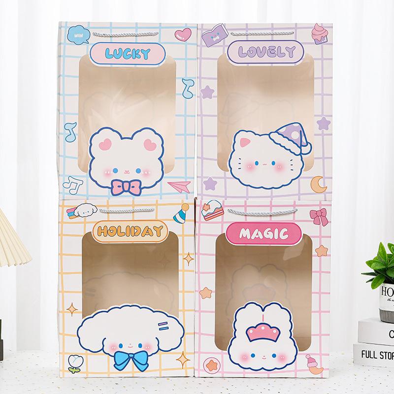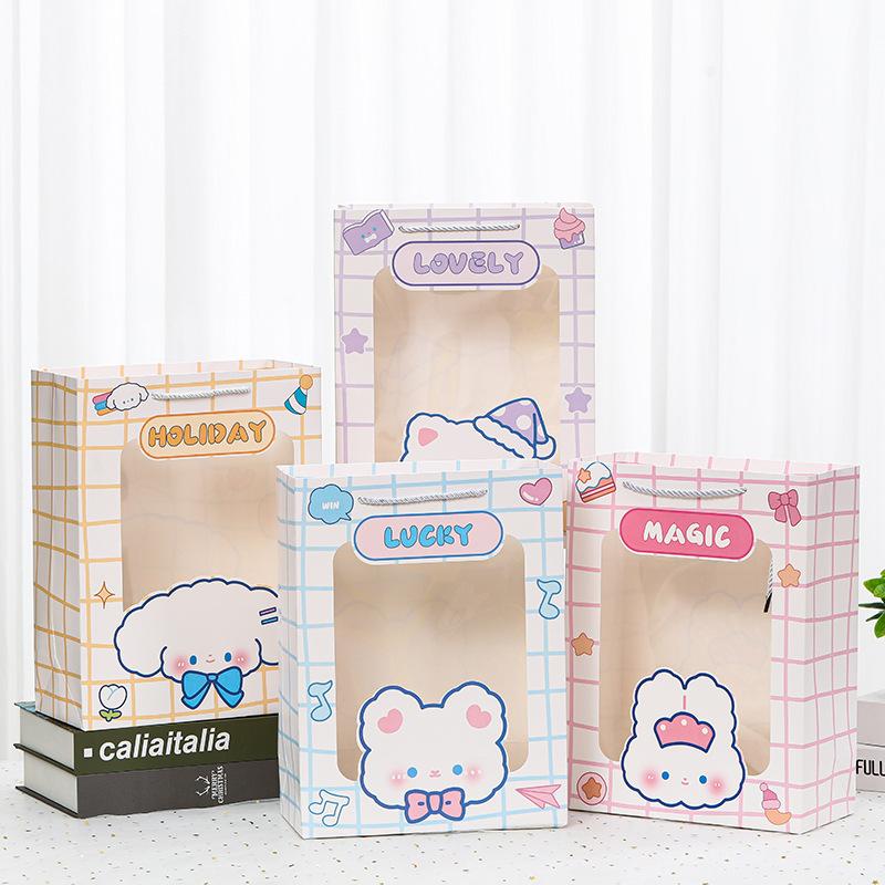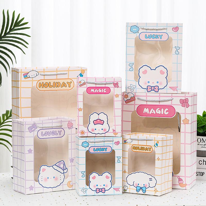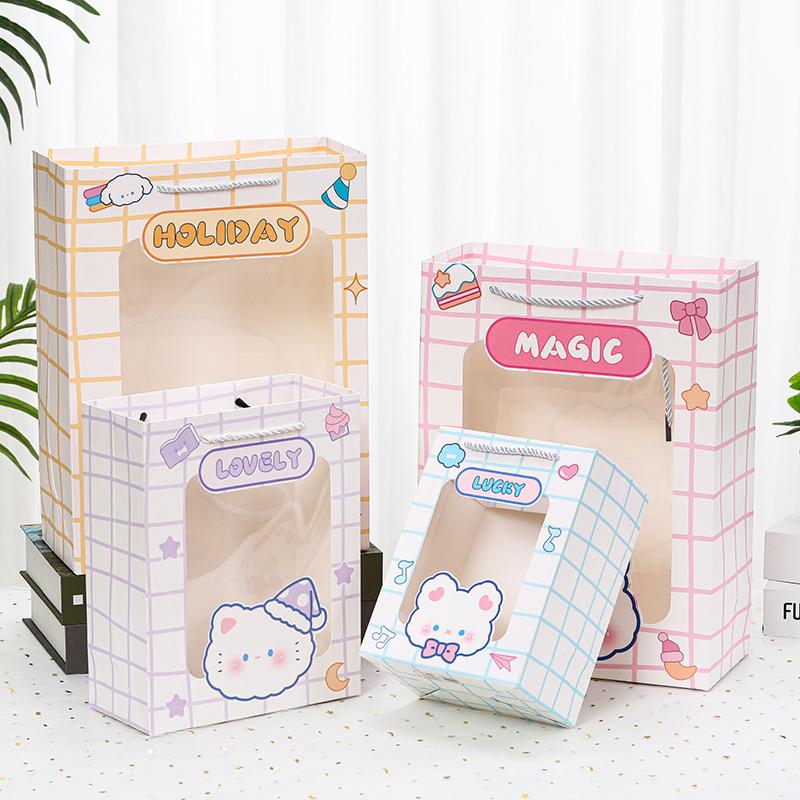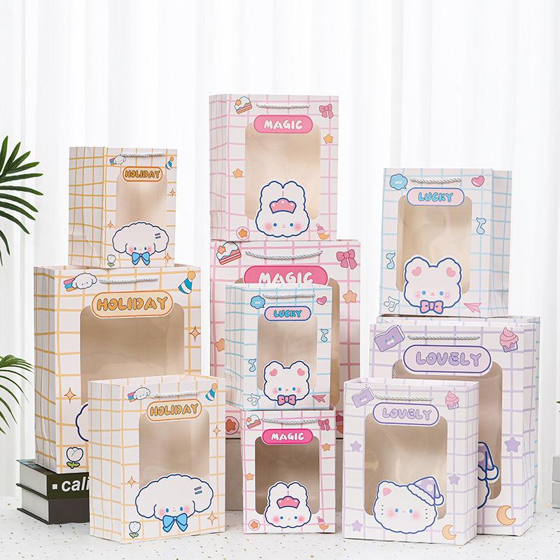 Nueva linda bolsa de regalo con ventana de dibujos animados que se abre, bolsa de papel para regalo de cumpleaños, bolsa de flores transparente, bolsa de mano para regalo.