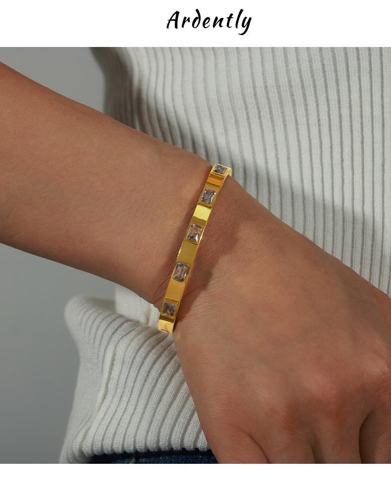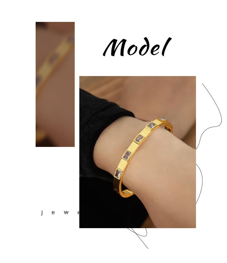 Nueva pulsera de moda transfronteriza de lujo ligero retro de nicho con diseño de acero de titanio chapado en oro e incrustaciones de circonitas, joyería sencilla para mujer al por mayor