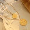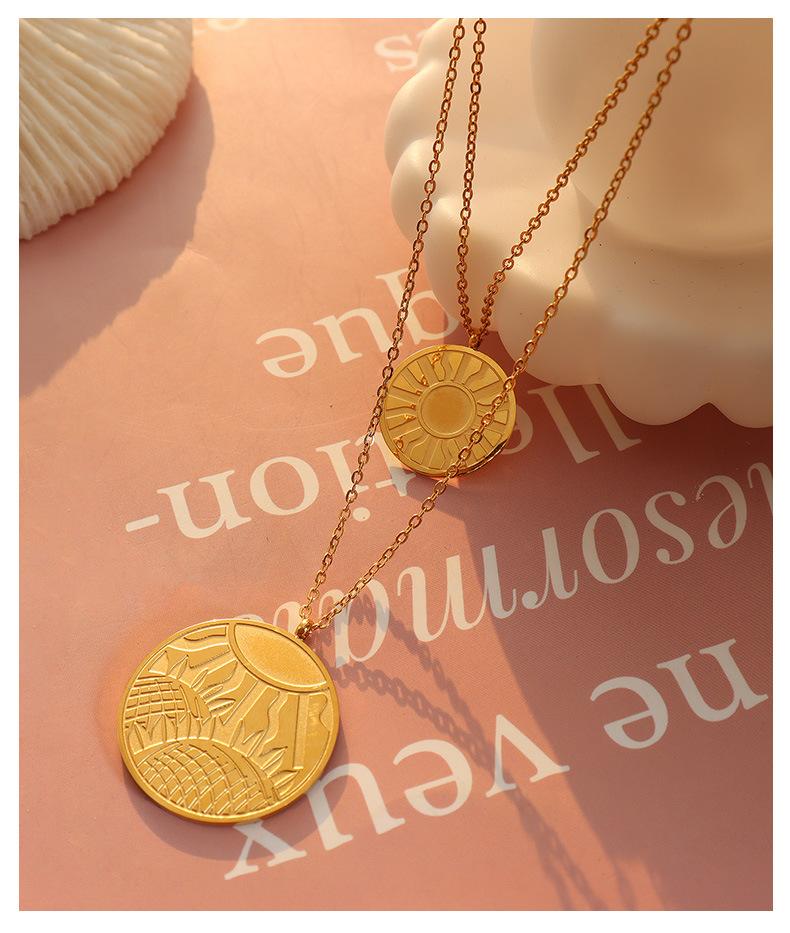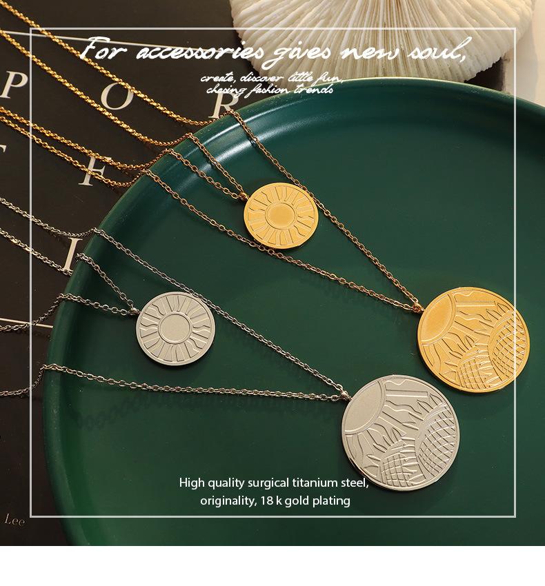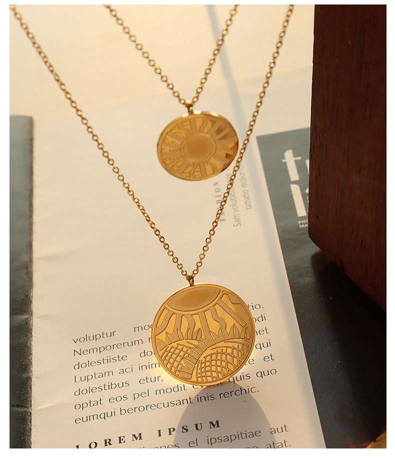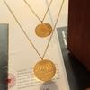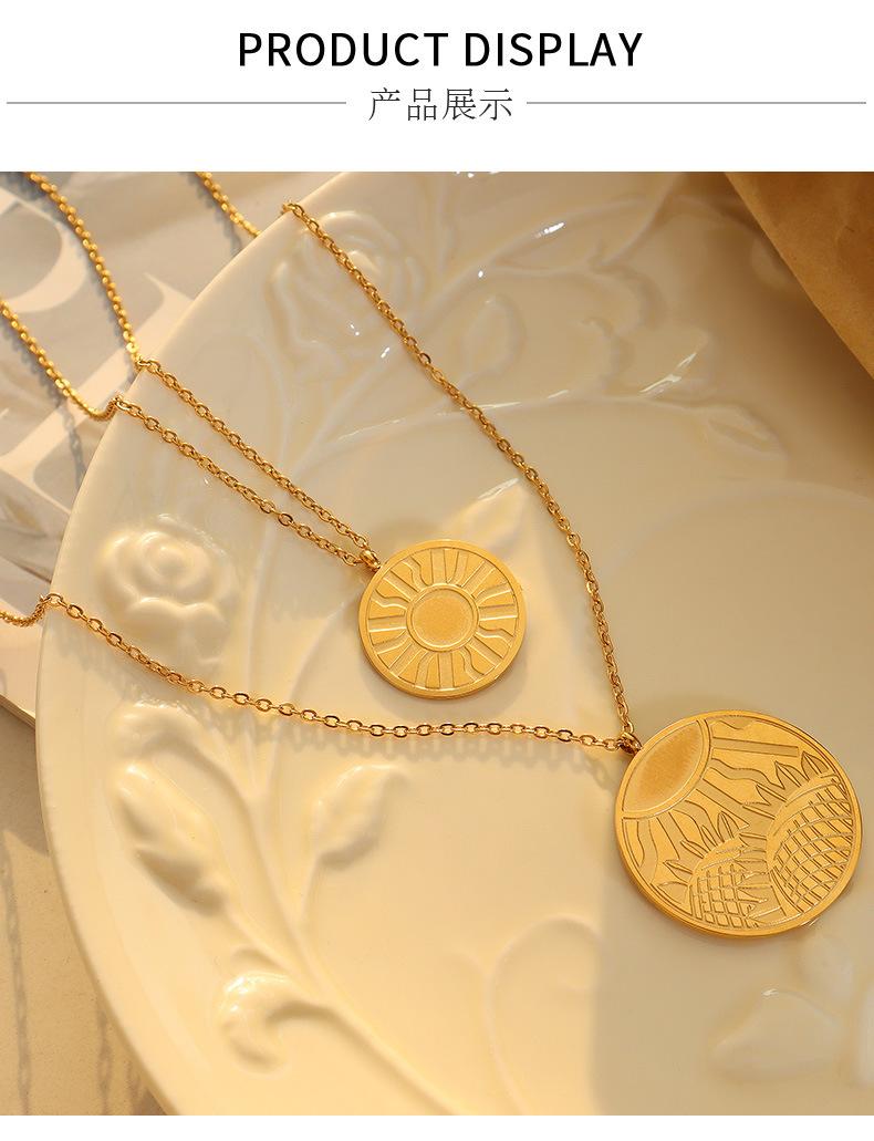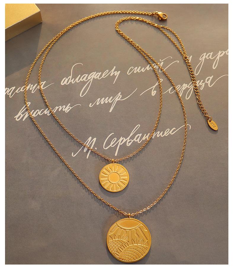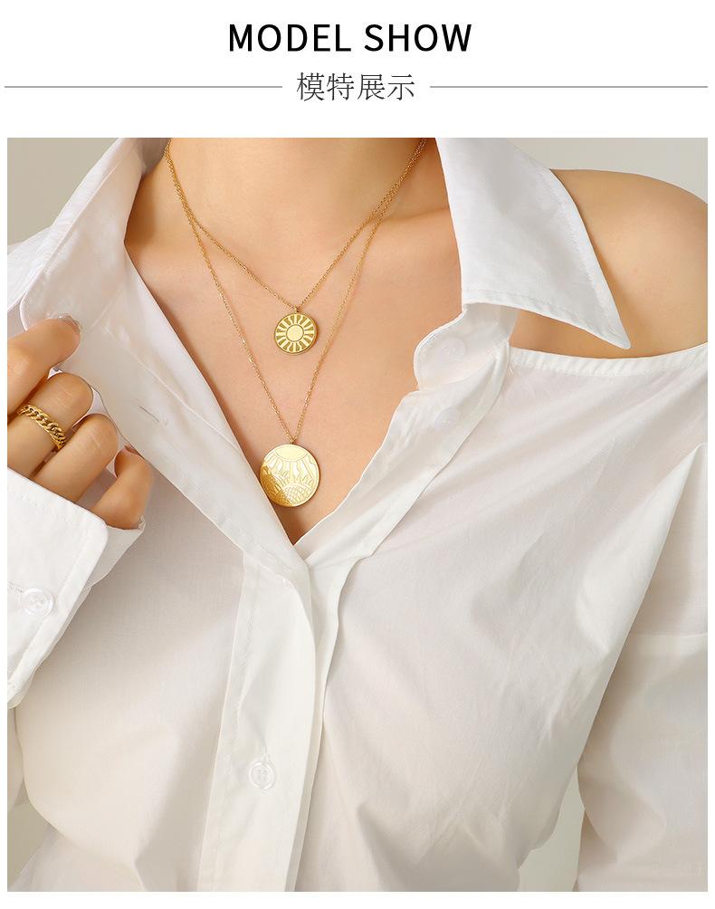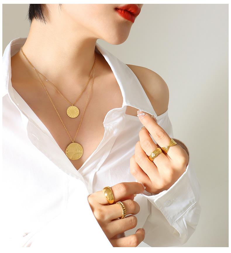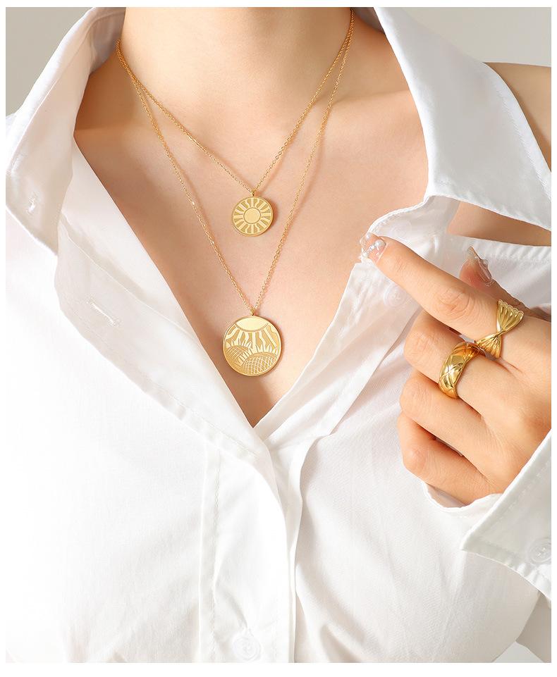 Collar con colgante de doble línea geométrica, joyería europea y americana, con diseño de viento redondo, cadena de clavícula femenina, acero de titanio y oro de 18 quilates, P684