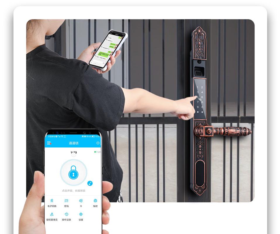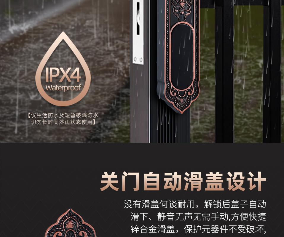 Cerradura de huella dactilar impermeable de doble cara para patio, cerradura de huella dactilar con tarjeta magnética, cerradura de huella dactilar con contraseña, cerradura de huella dactilar con puerta de hierro, cerradura de huella dactilar con control remoto