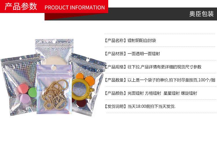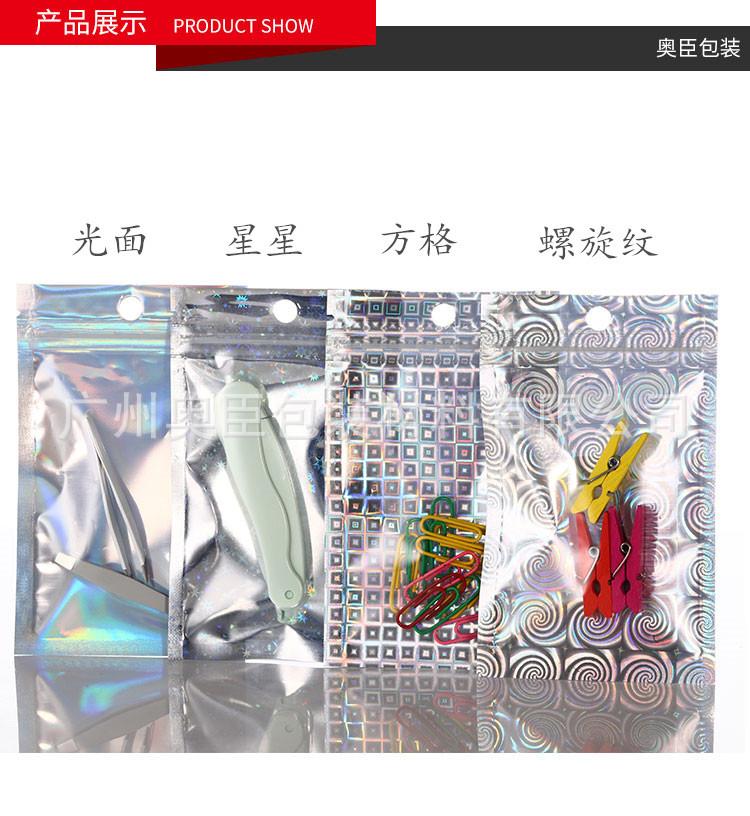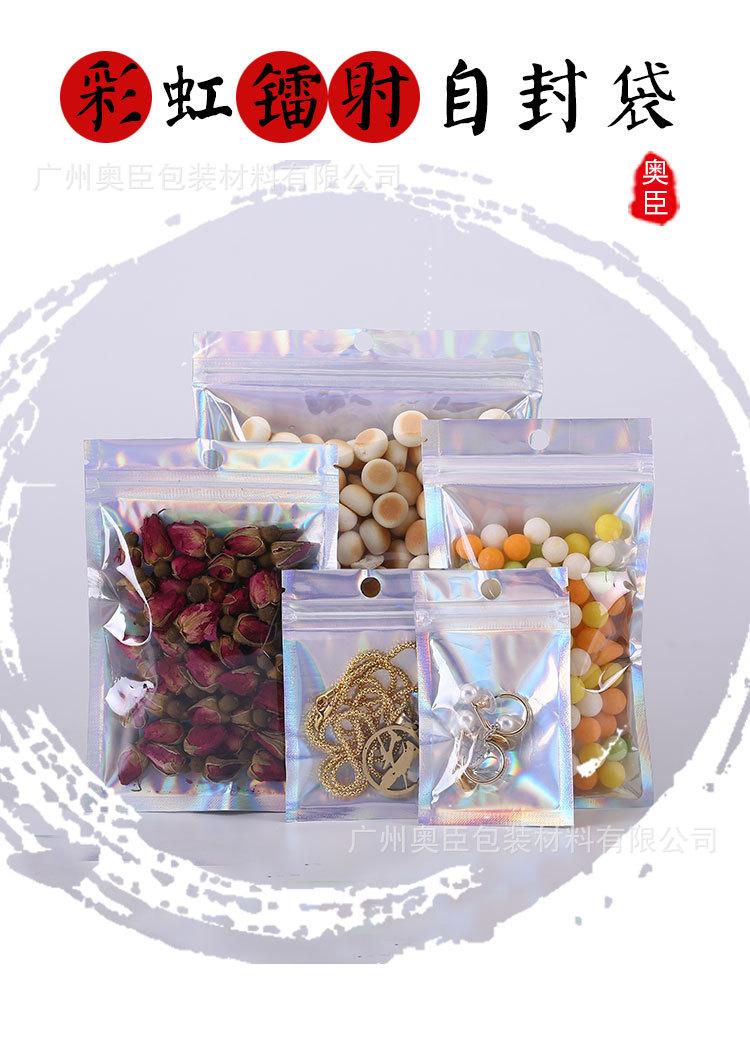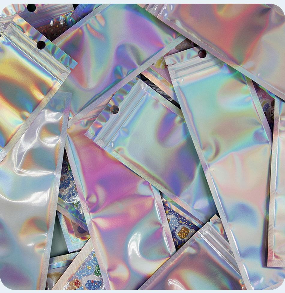 Bolsa de embalaje láser, bolsa autosellante, bolsa de plástico Yum Yin y Yang, bolsa de plástico de aluminio holográfico, bolsa de plástico, bolsa de joyería de color mágico arcoíris