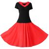 Black and red V-neck short sleeve shirt + red skirt without pants