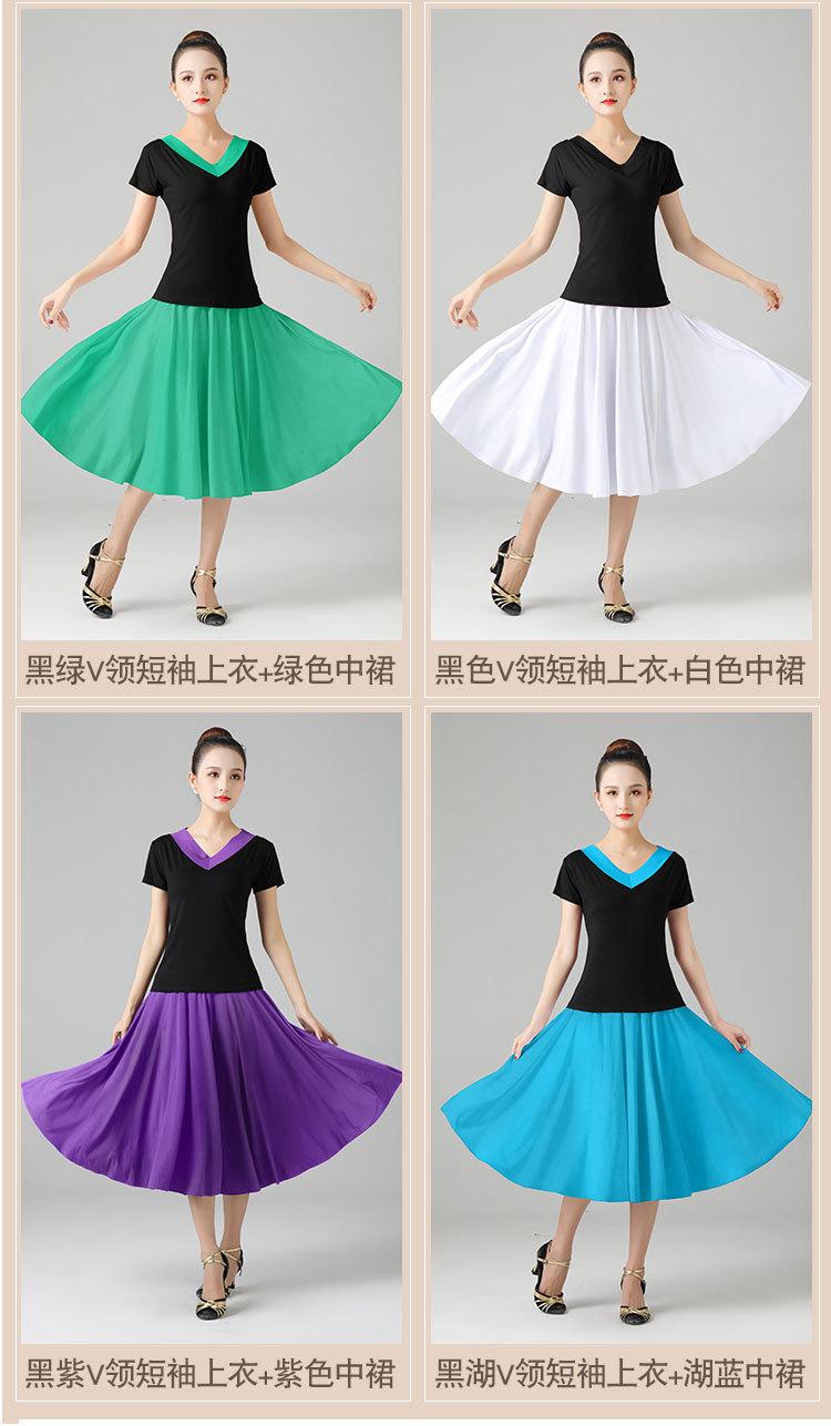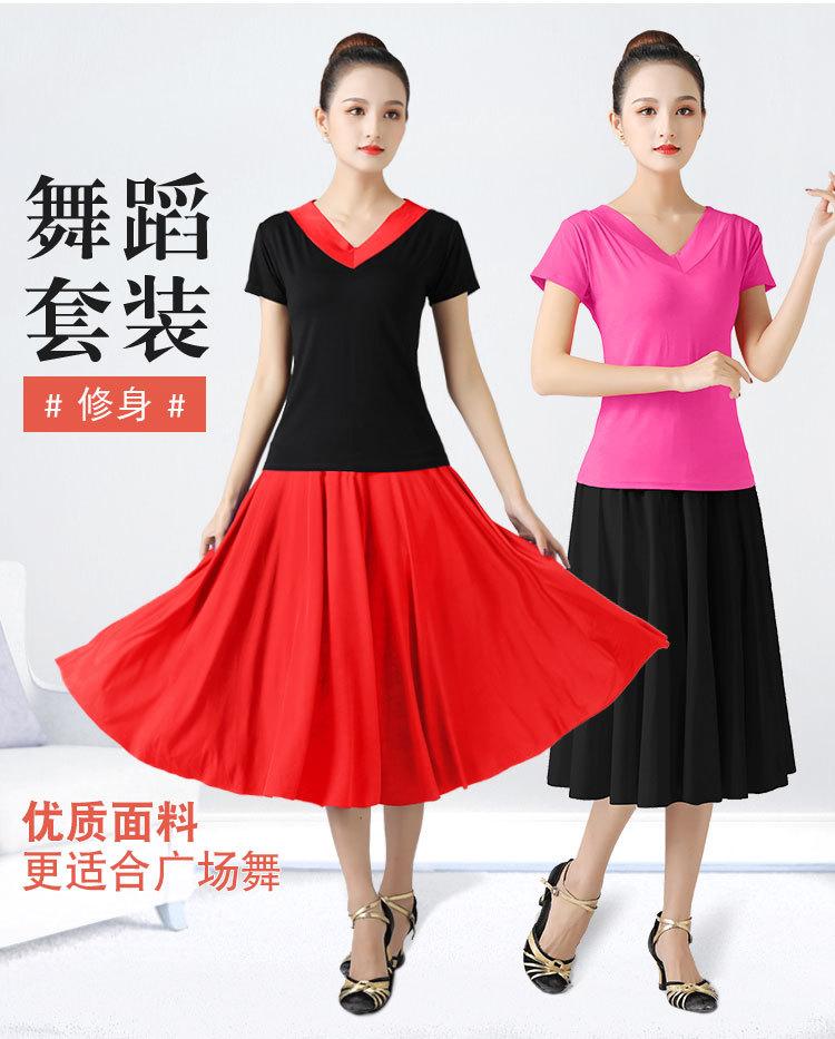 Nuevo traje de baile cuadrado, ropa de práctica de baile, ropa de baile, falda, top de manga corta, traje de verano para mujer