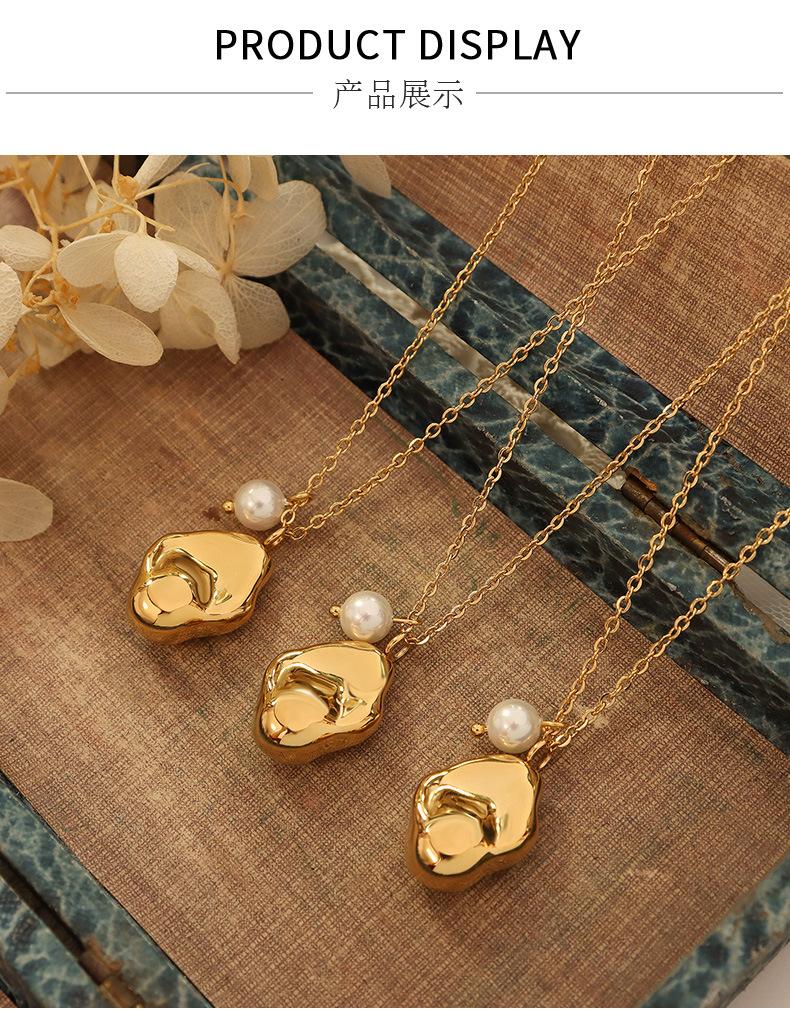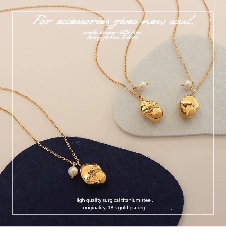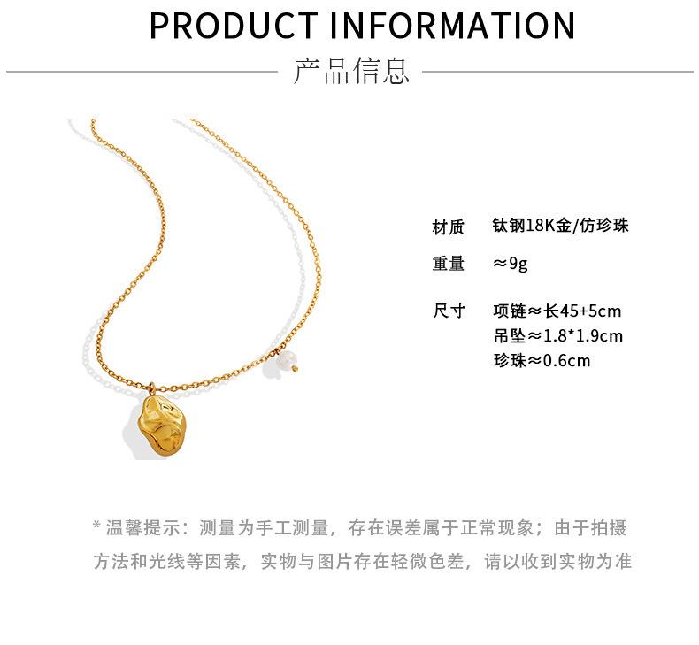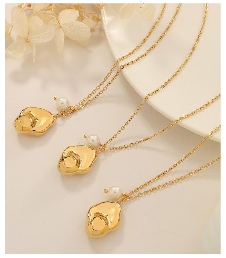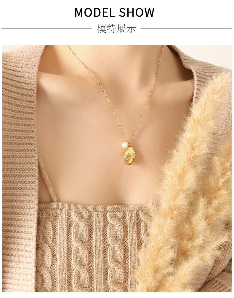 Collar con colgante de perla de imitación geométrica de forma especial, estilo nicho, para mujer, estilo japonés y coreano, chapado en acero de titanio y oro de 18 quilates, P683