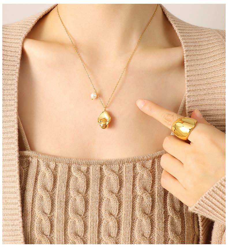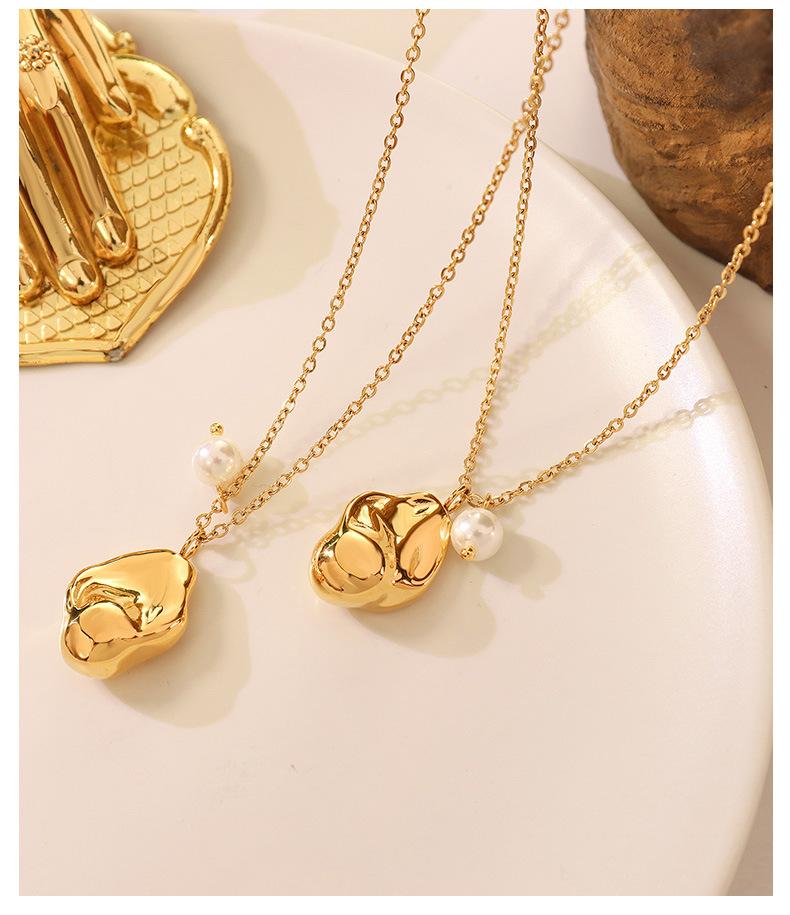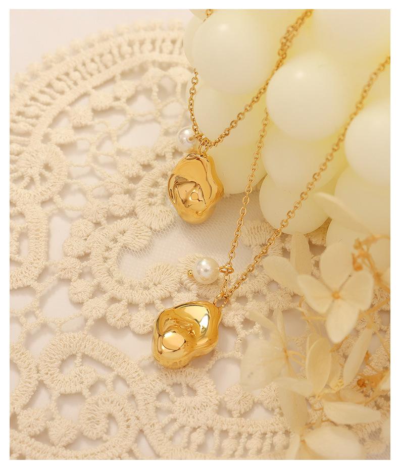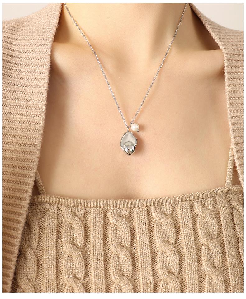 Collar con colgante de perla de imitación geométrica de forma especial, estilo nicho, para mujer, estilo japonés y coreano, chapado en acero de titanio y oro de 18 quilates, P683