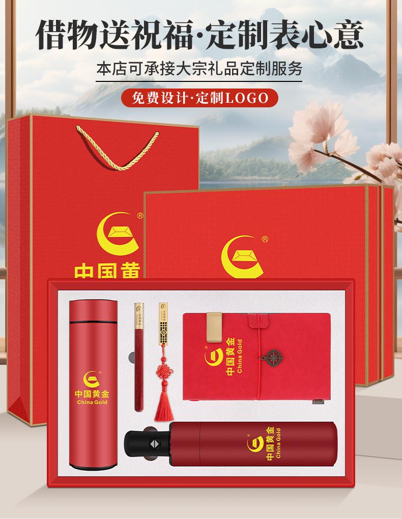 Golden five-piece set - cup + umbrella + ledger + usb plate + wooden pen
