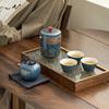 Blue four-piece set - cup + ledger + usb plate + wooden pen