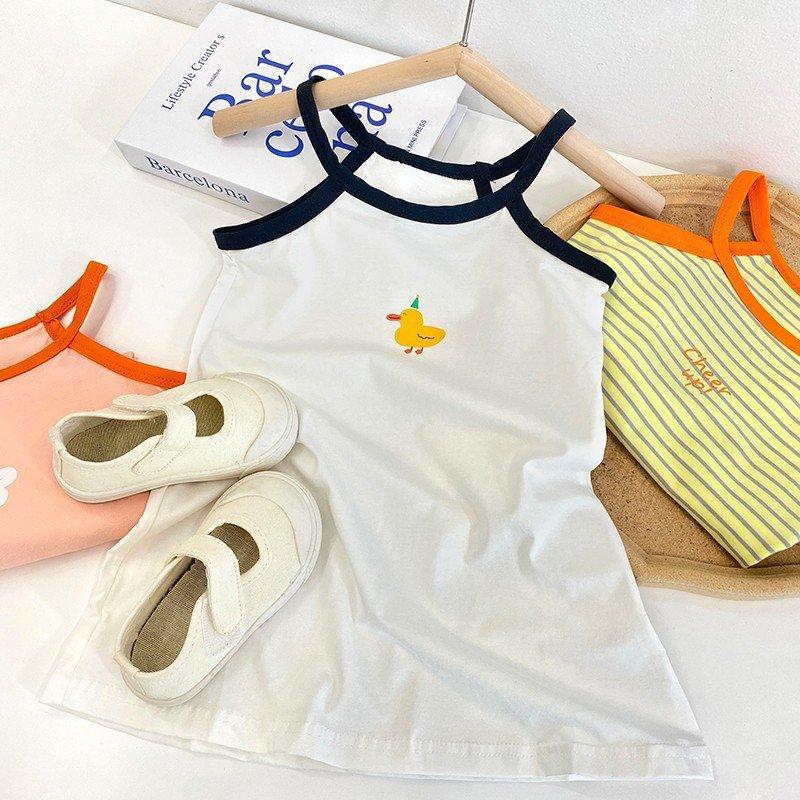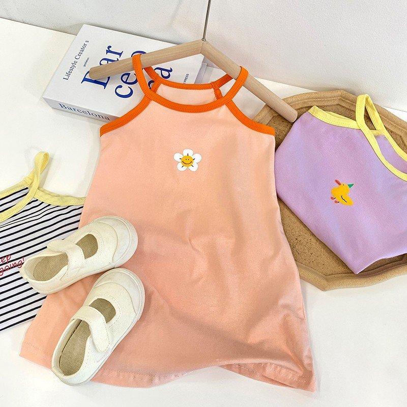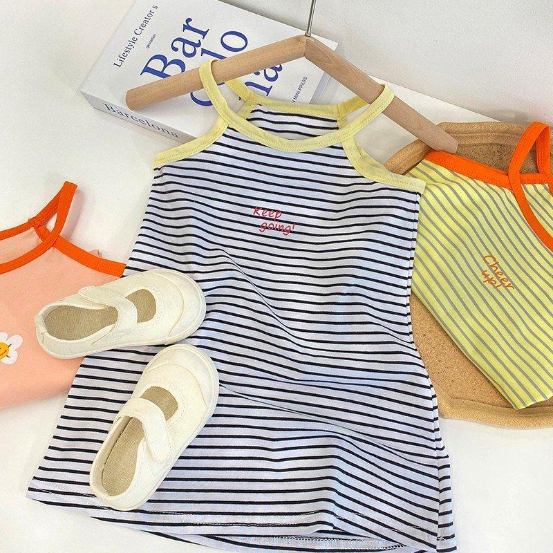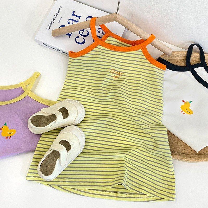 Vestido de verano para niñas, elegante, personalizado, de marca de moda, coreano, con rayas de colores a juego, falda de princesa de dibujos animados