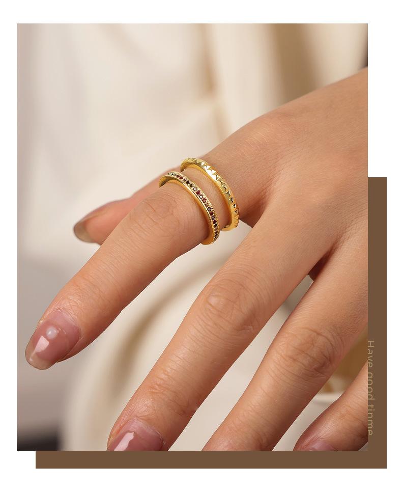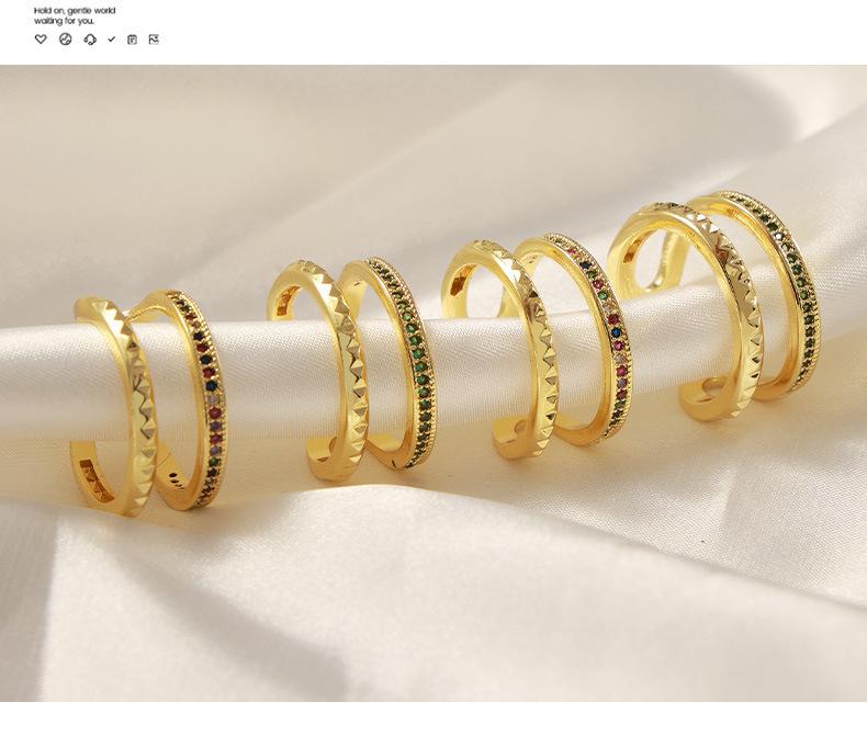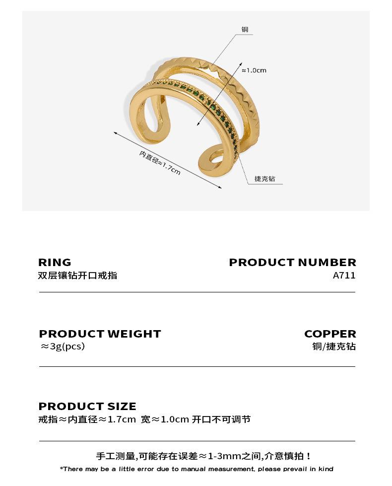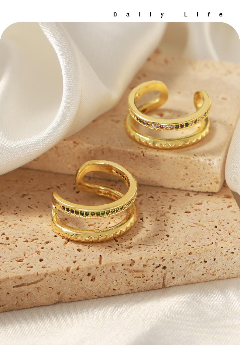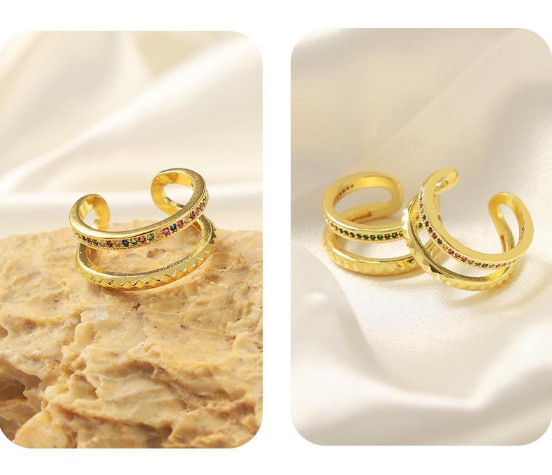 Anillo hueco de doble capa con abertura, material de cobre con incrustaciones de diamantes de imitación, nicho exquisito, temperamento, anillo de personalidad para mujer