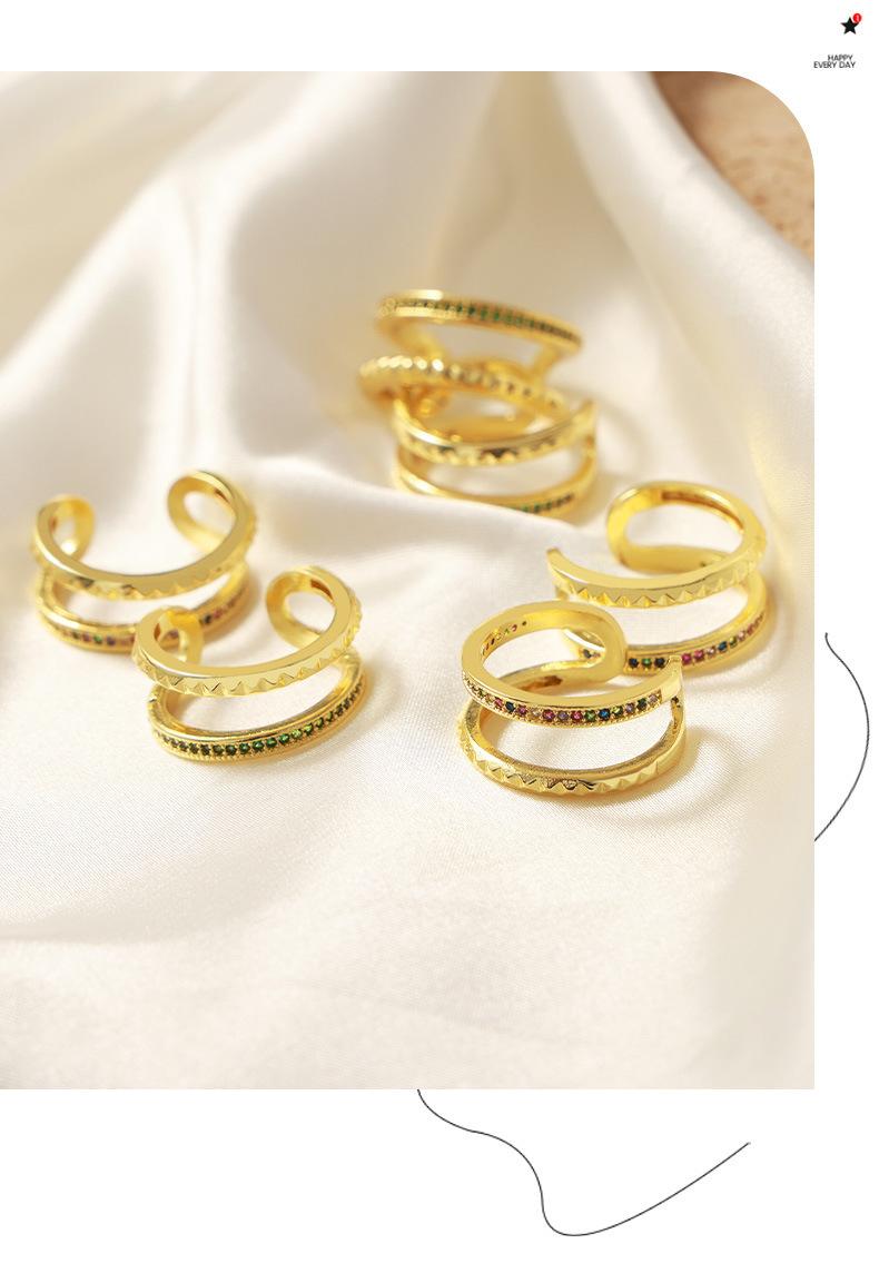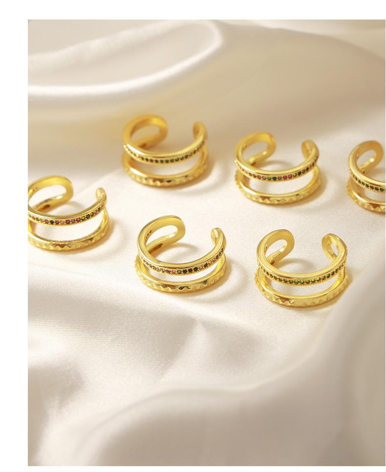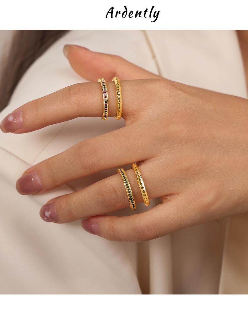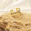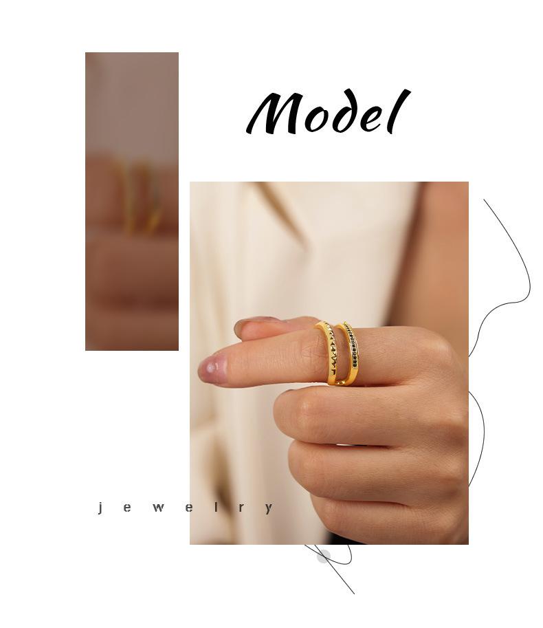 Anillo hueco de doble capa con abertura, material de cobre con incrustaciones de diamantes de imitación, nicho exquisito, temperamento, anillo de personalidad para mujer