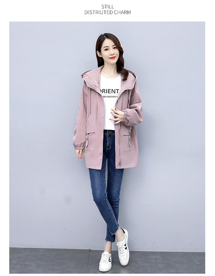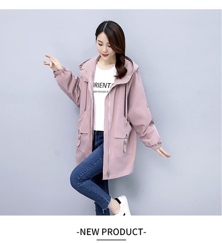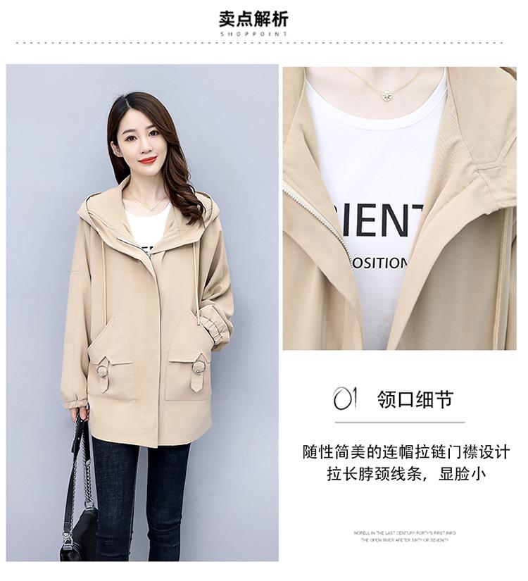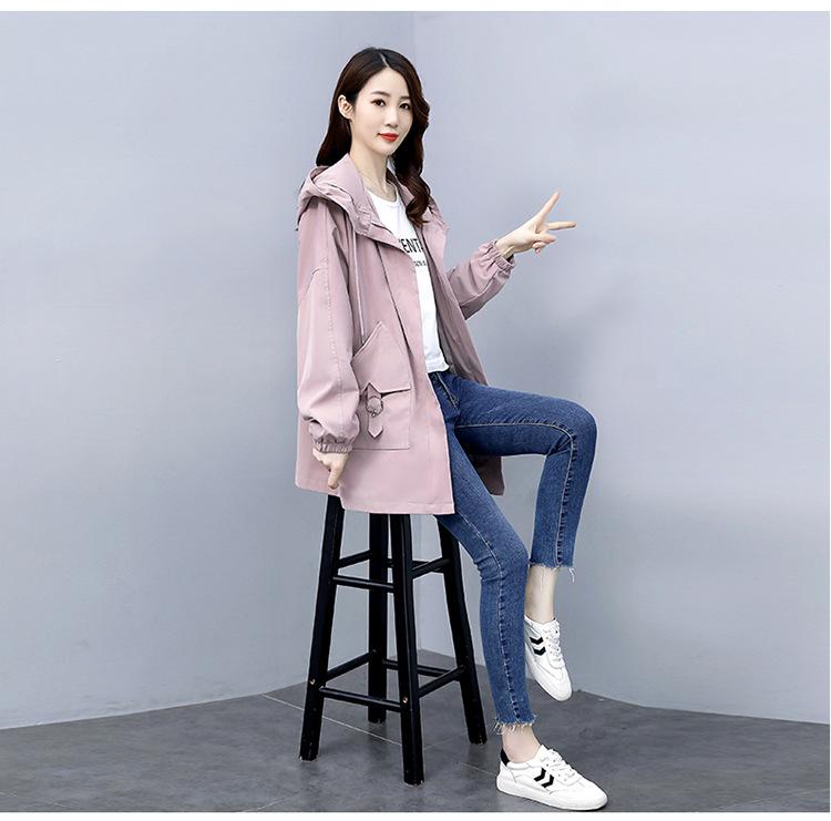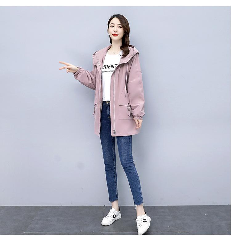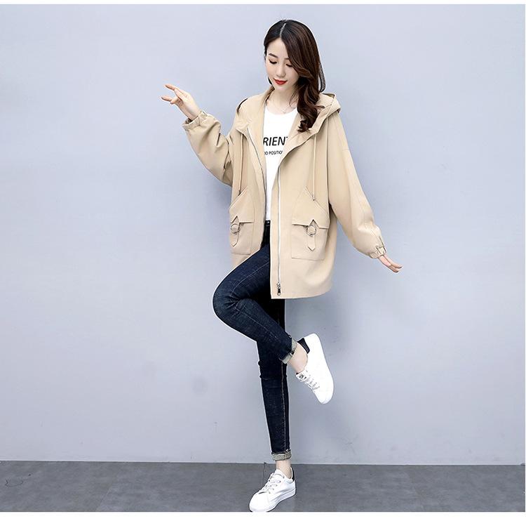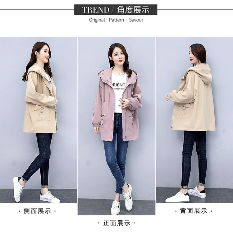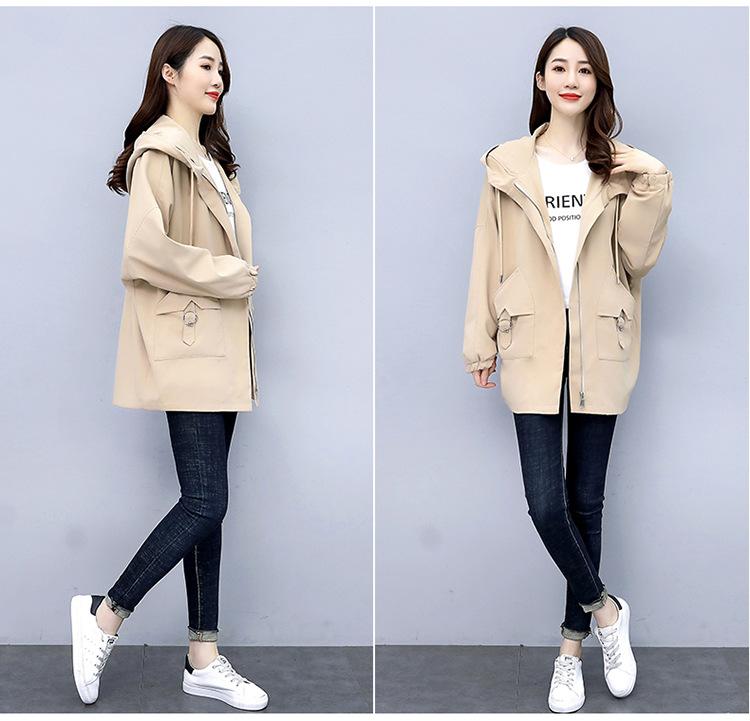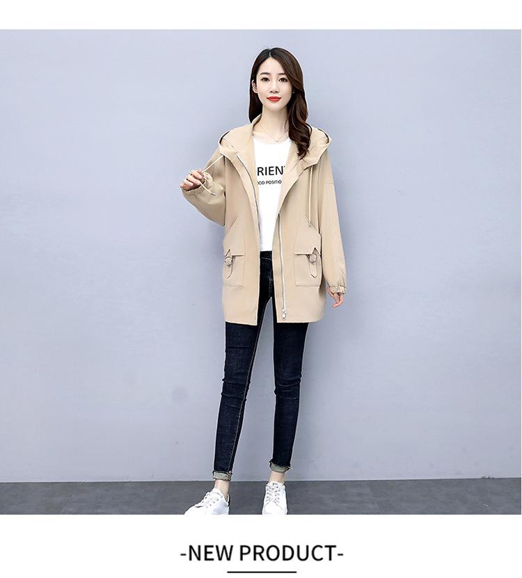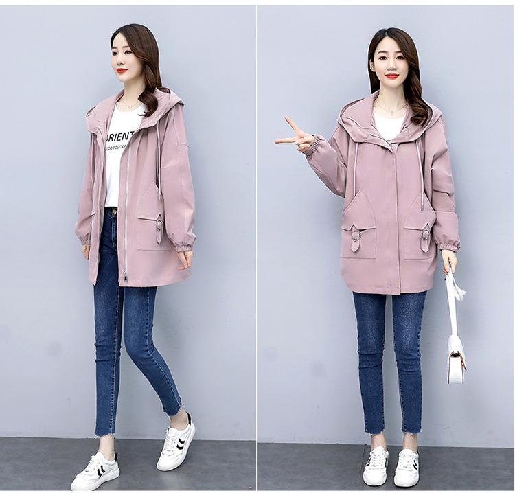 Chaqueta cortavientos de longitud media para mujer, nueva primavera y otoño de 2024, abrigo informal holgado con capucha para madres de mediana edad y temperamento pequeño