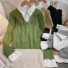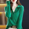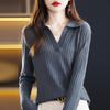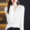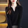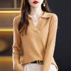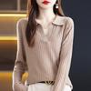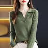 Otoño e Invierno Nuevo Estilo Tejido de Punto con Cuello Polo Francés Suéter de Manga Larga para Mujer Camisa de Fondo Solapa Corta Manga Larga