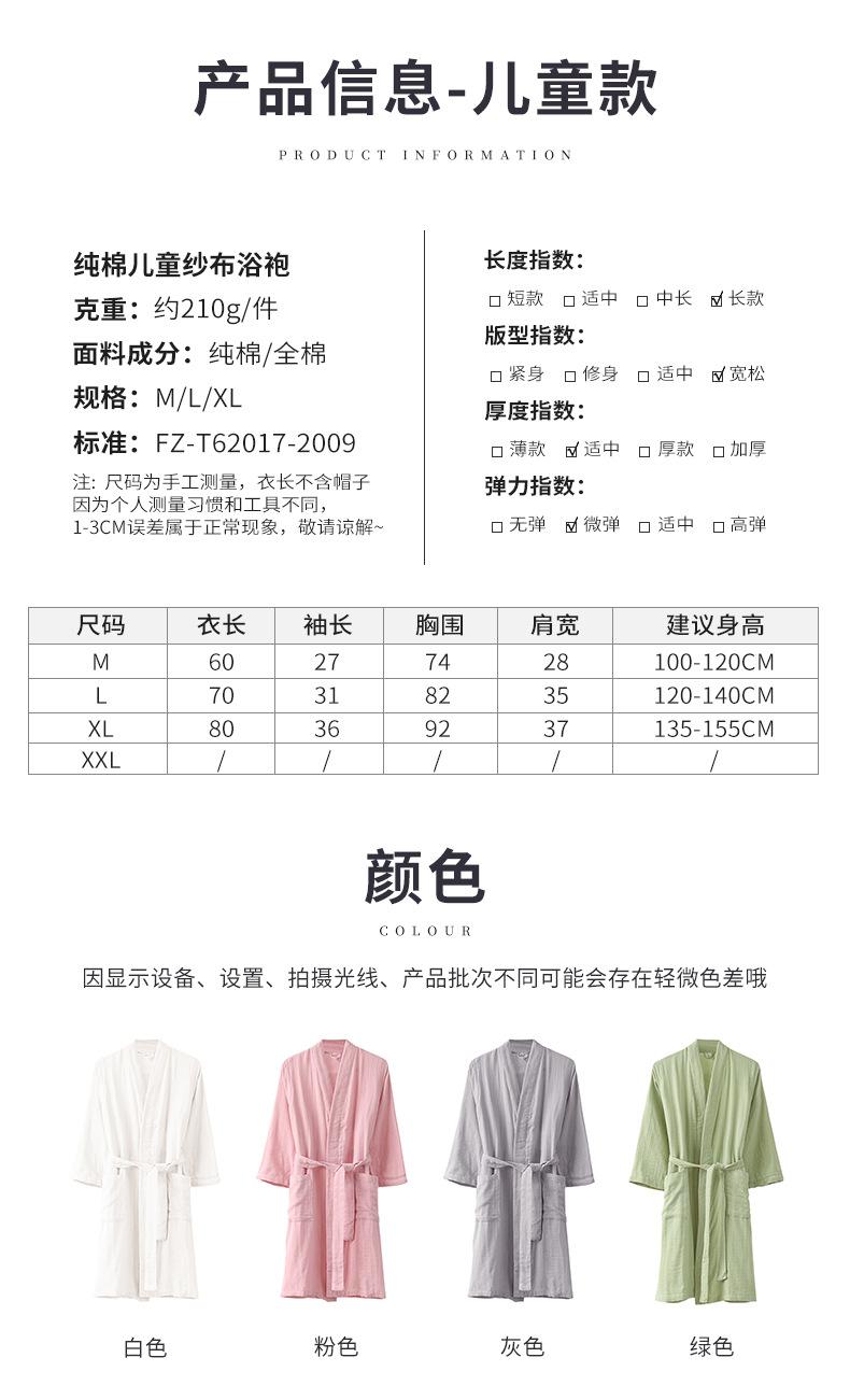 Lusu Bata para niños Clase A Gasa de tres capas Bata Bata Ropa para el hogar Camisón Camisón Camisón Absorbente Agradable para la piel Niños Cuatro estaciones