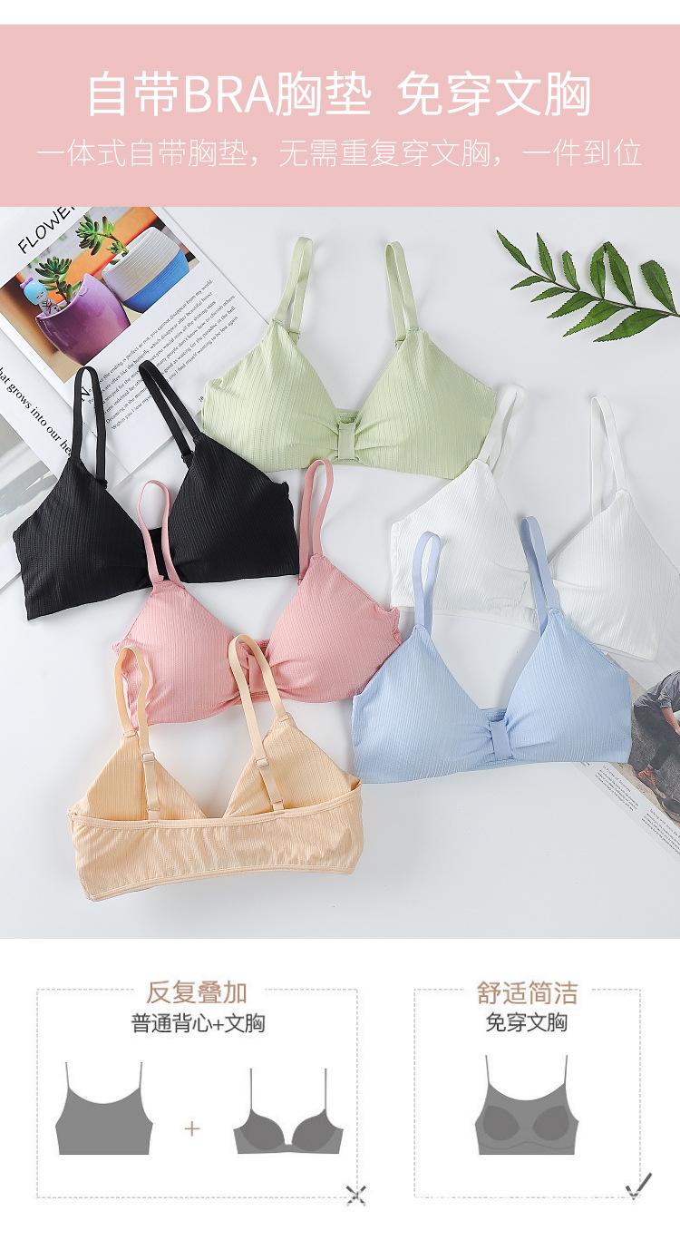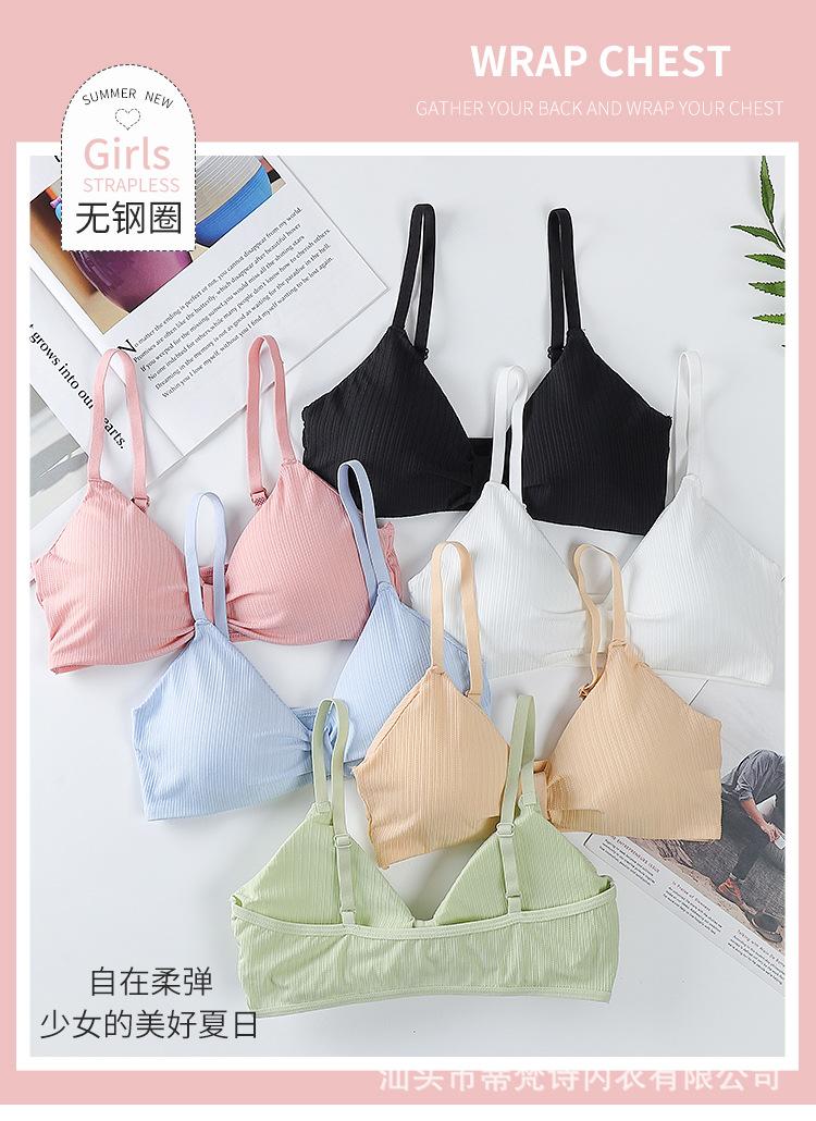Seda de Hielo Ropa Interior sin Costuras para Niña Japonesa de Espalda Hermosa sin Tirantes con Pecho Pequeño Recogido Delgada Linda Sujetador Envolvente Dulce para Estudiantes