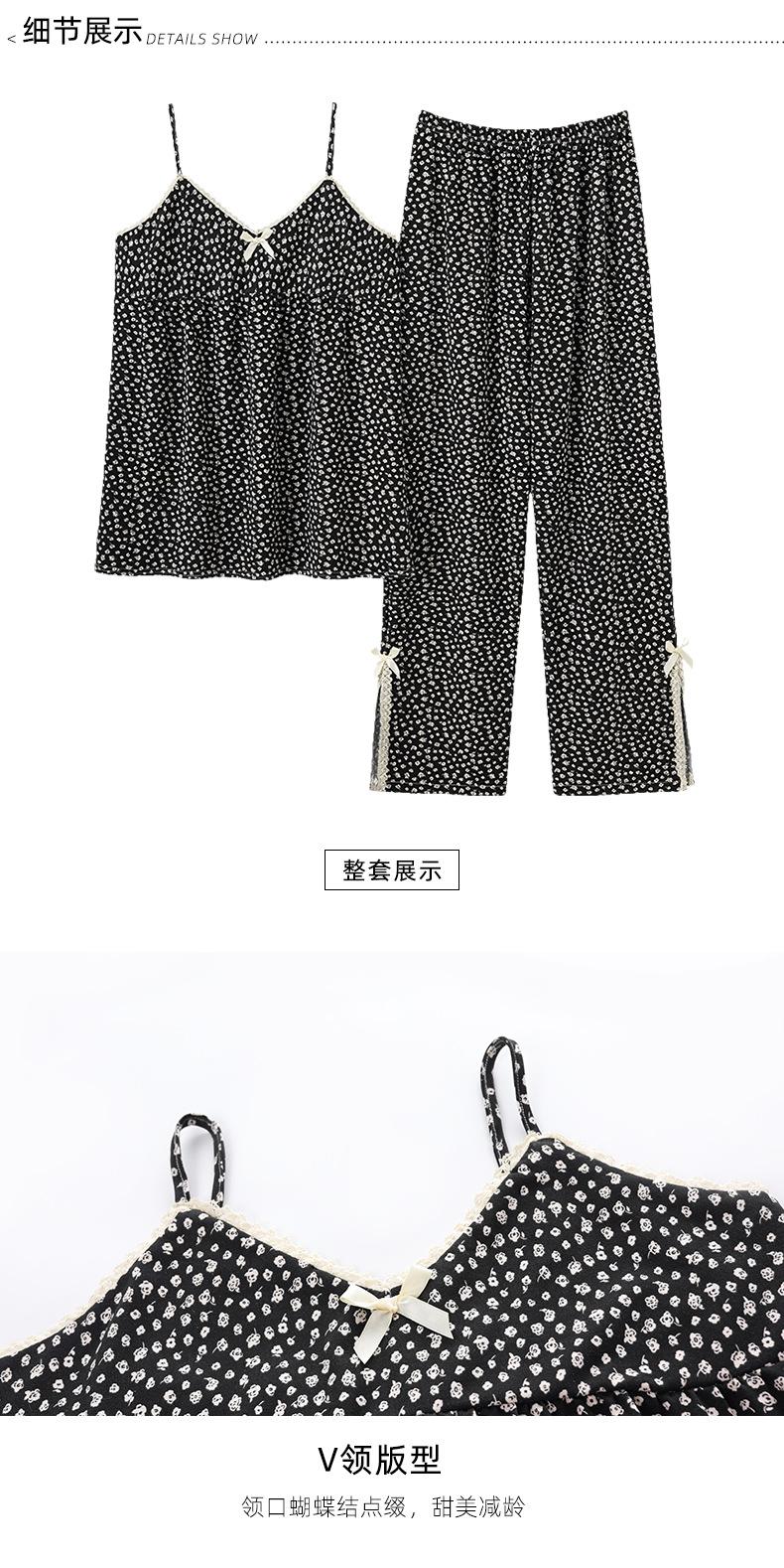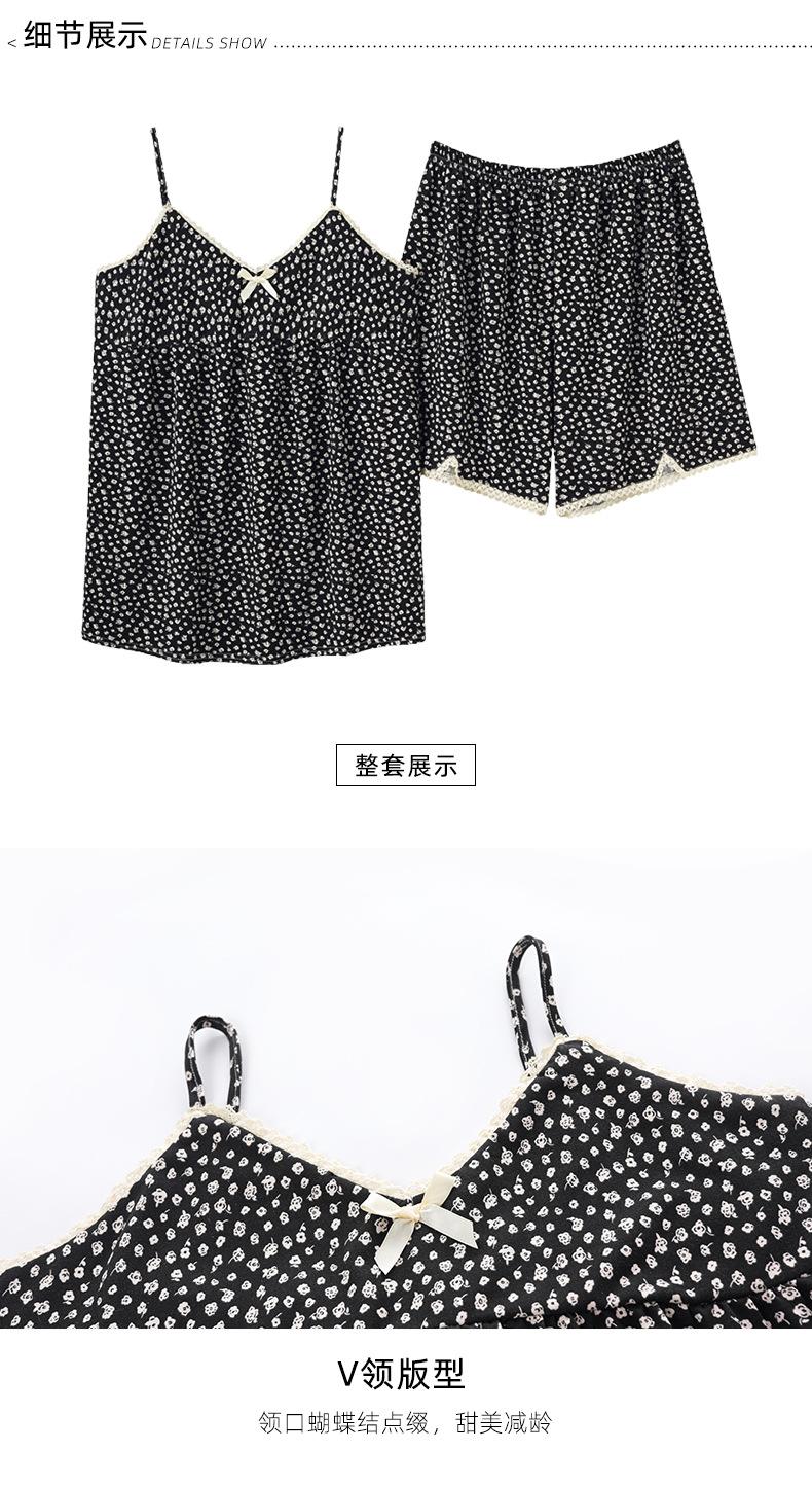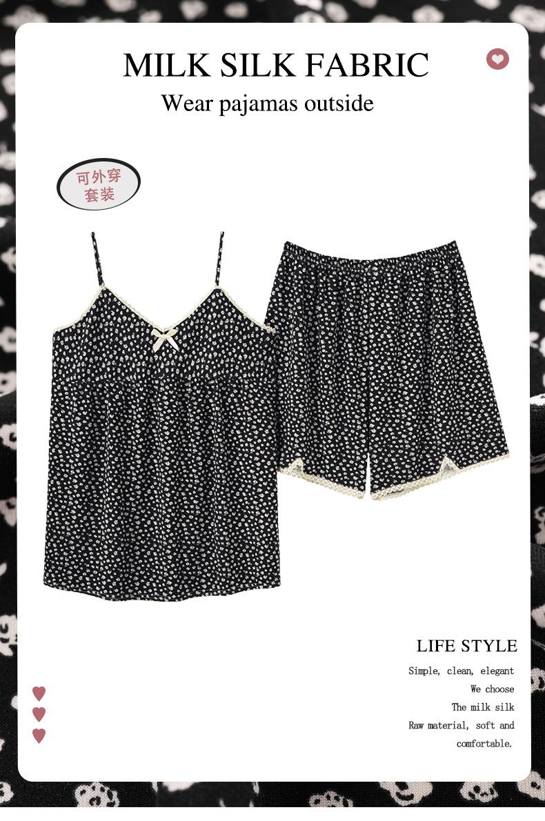 Deseo Puro Pijama Sexy con Tirantes Set de Shorts Delgados de Verano para Mujer Niñas Pequeño Floral Seda de Hielo Sensación Fresca Ropa para el Hogar