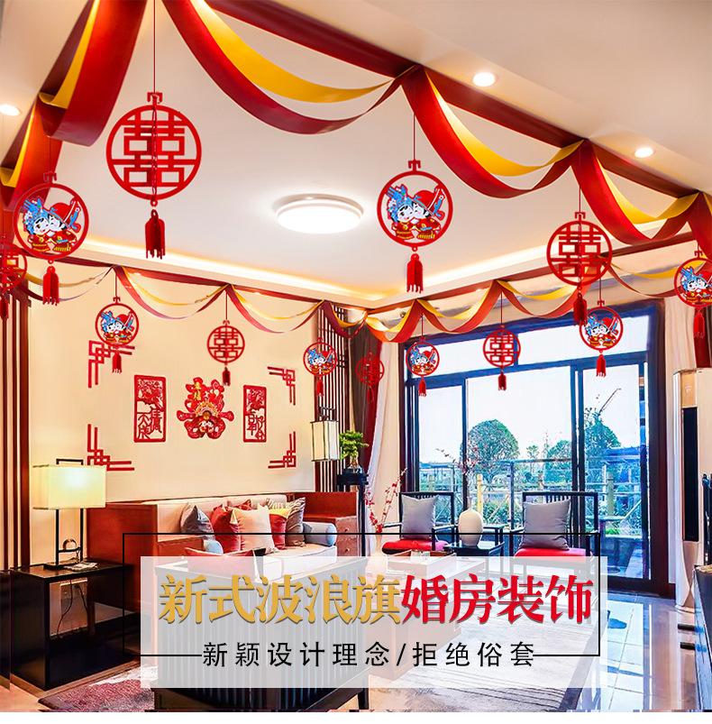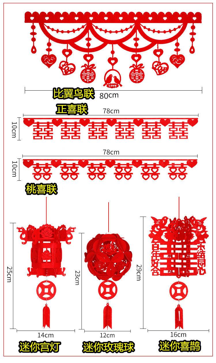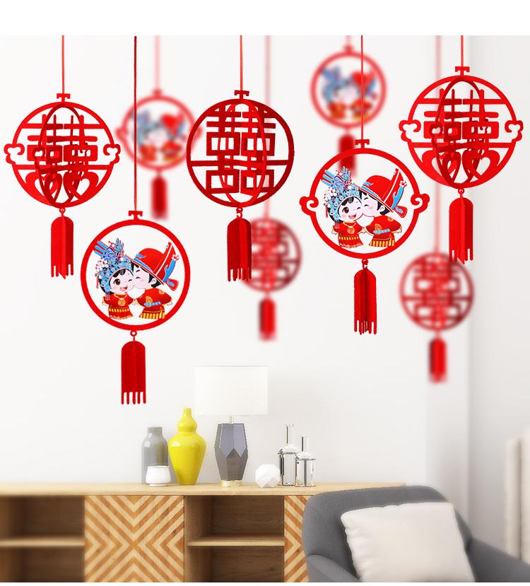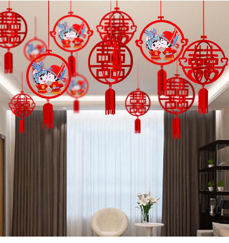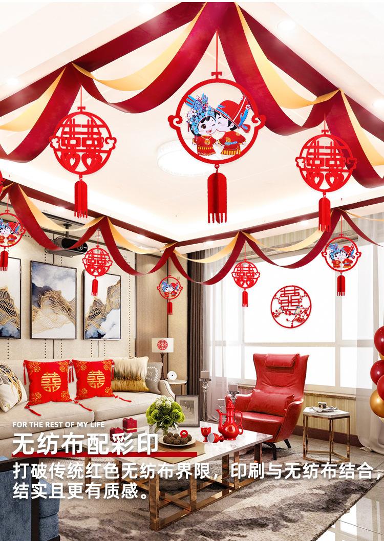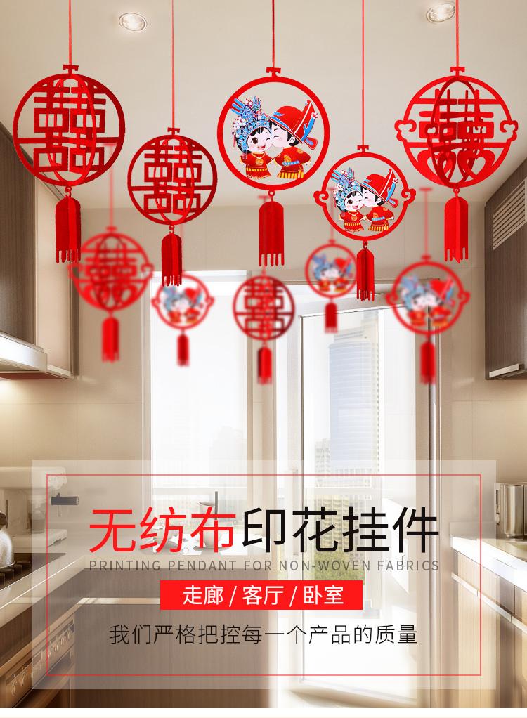 Decoración de sala de bodas, diseño de casa nueva, suministros para bodas, adornos colgantes no tejidos, conjunto de escena de sala de bodas