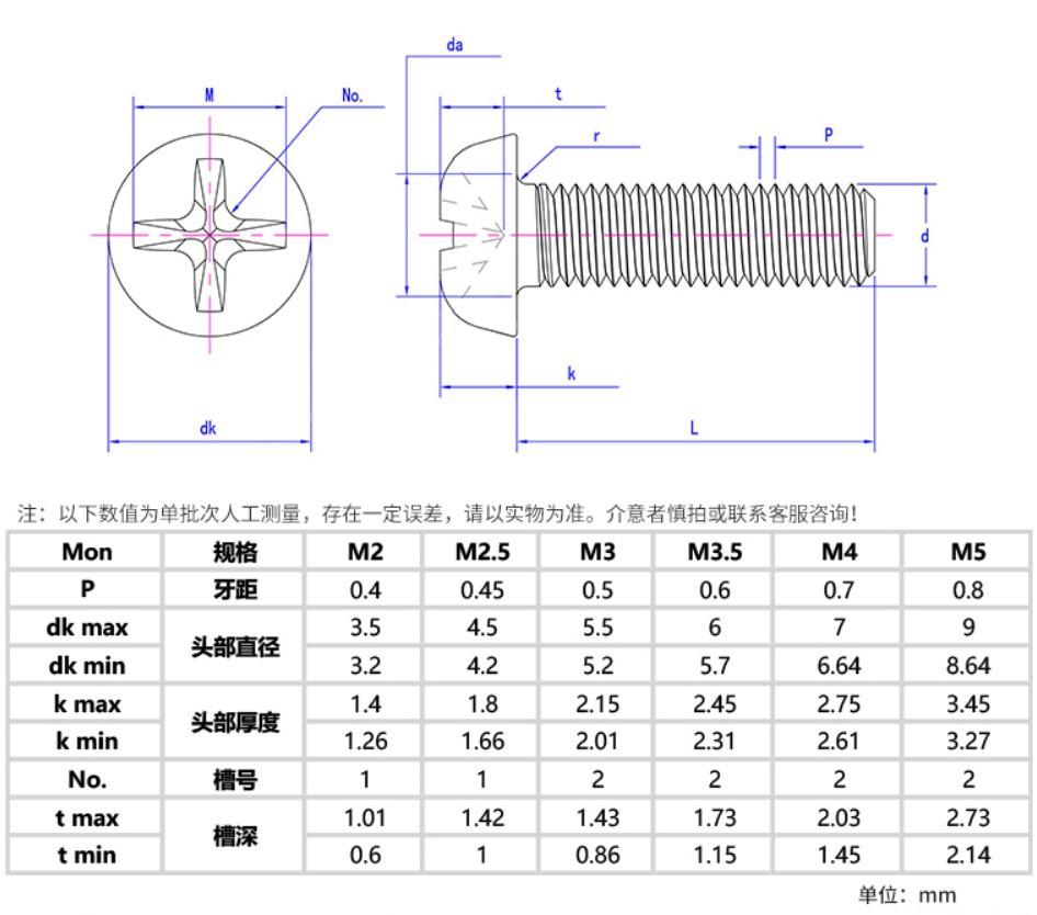 M1.6*2, M1.6*2.5, M1.6*3, M1.6*4, M1.6*5, M1.6*6, M1.6*7, M1.6*8, M1.6*10, M1.6*12, M2*2, M2*2.5, M2*3, M2*4, ...