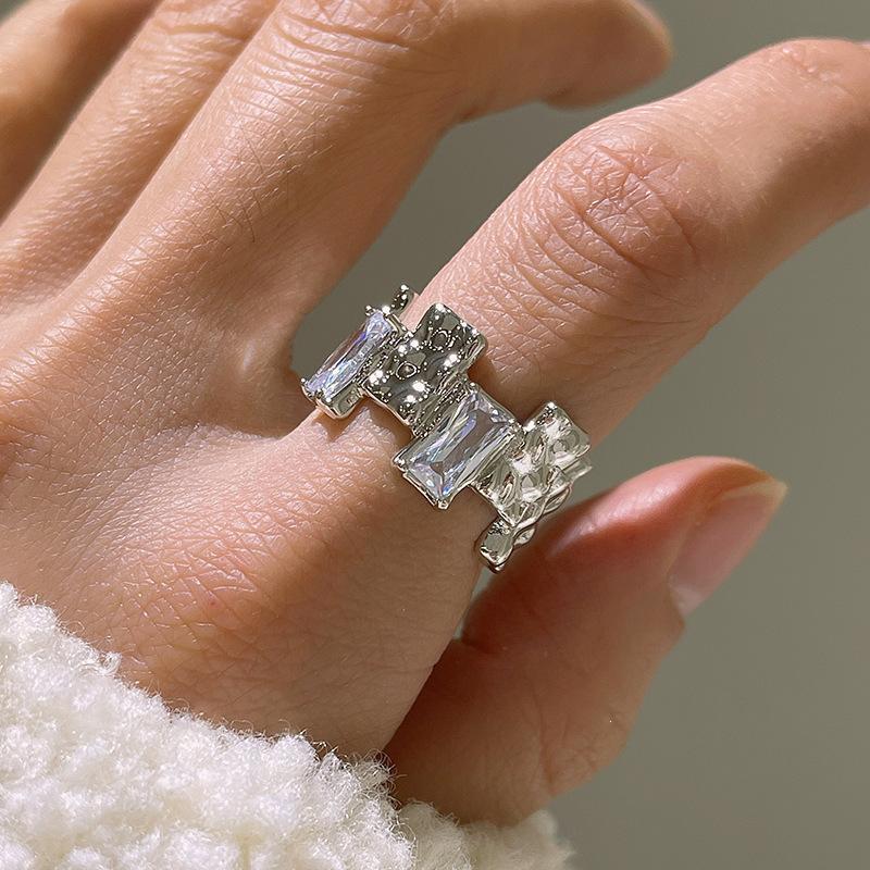 Anillo Geométrico Escalado Moda Femenina Temperamento Personalidad Diseño Sentido Plata Tailandesa Anillo Abierto Nicho Hip-Hop Anillo de Dedo Trendy