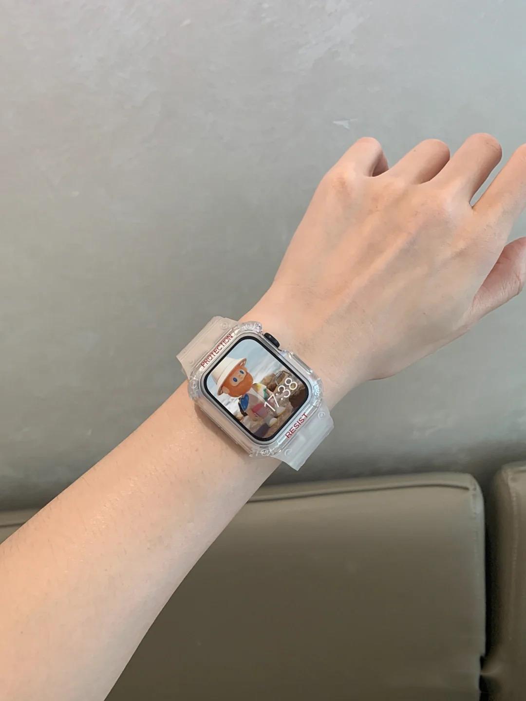 Applewatch7 Correa Integrada Transparente Glaciar Funda Protectora para Apple Watch iwatch8 Generación 65 SE