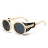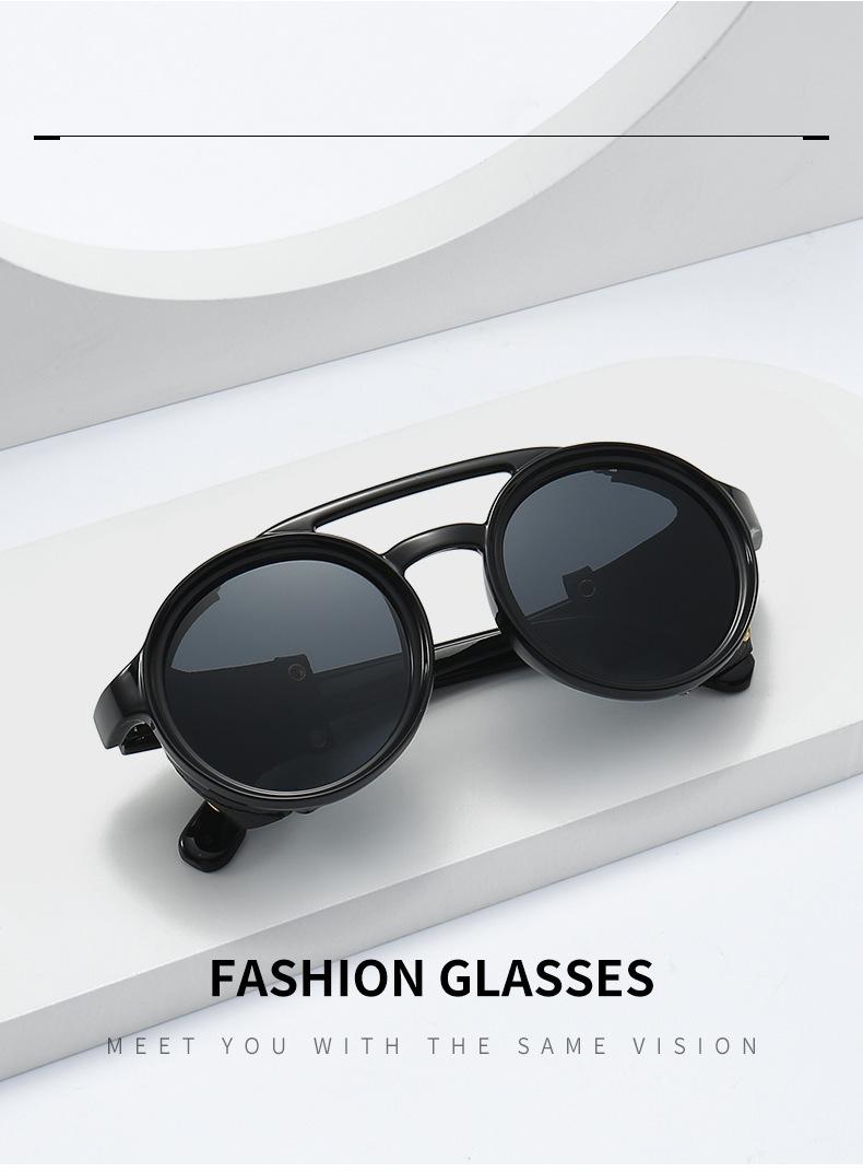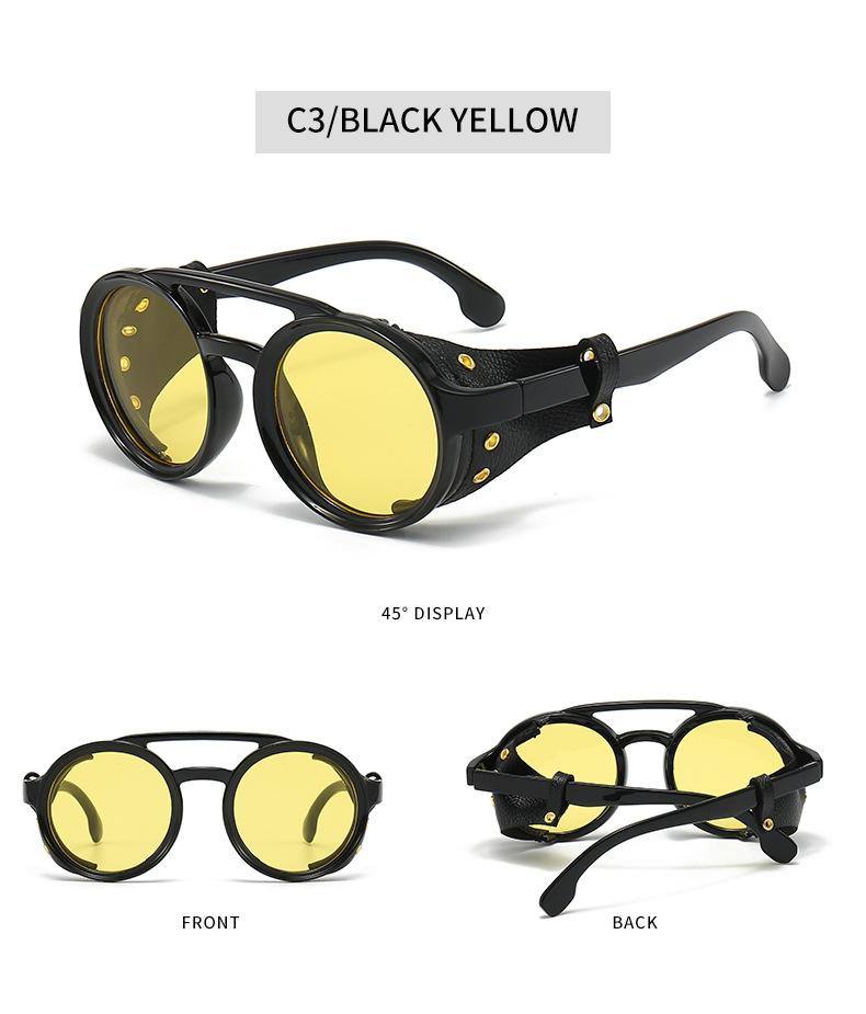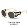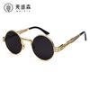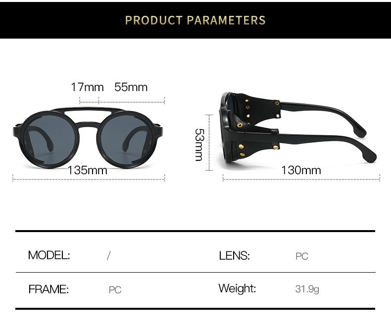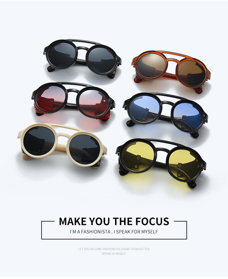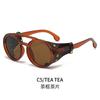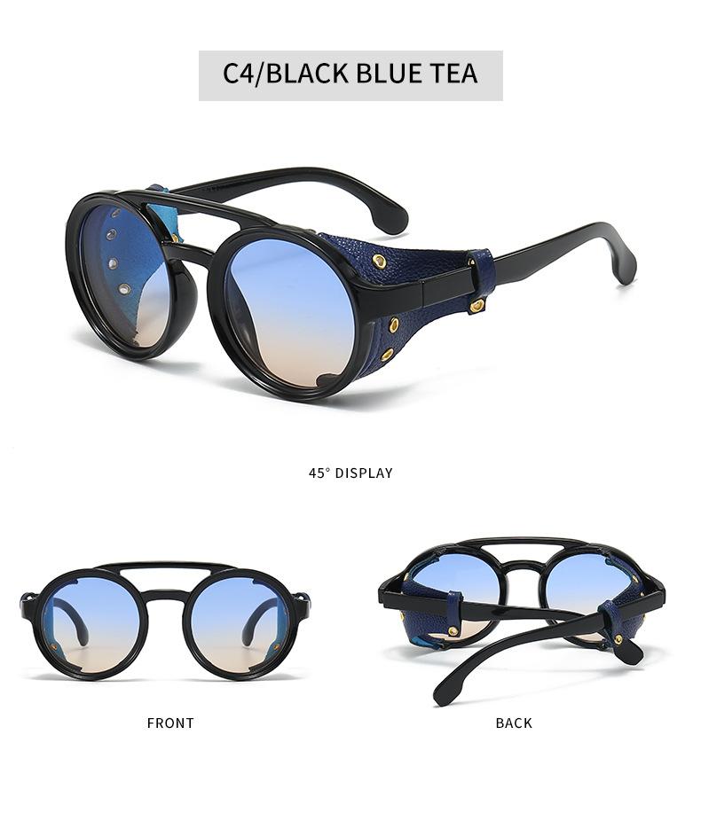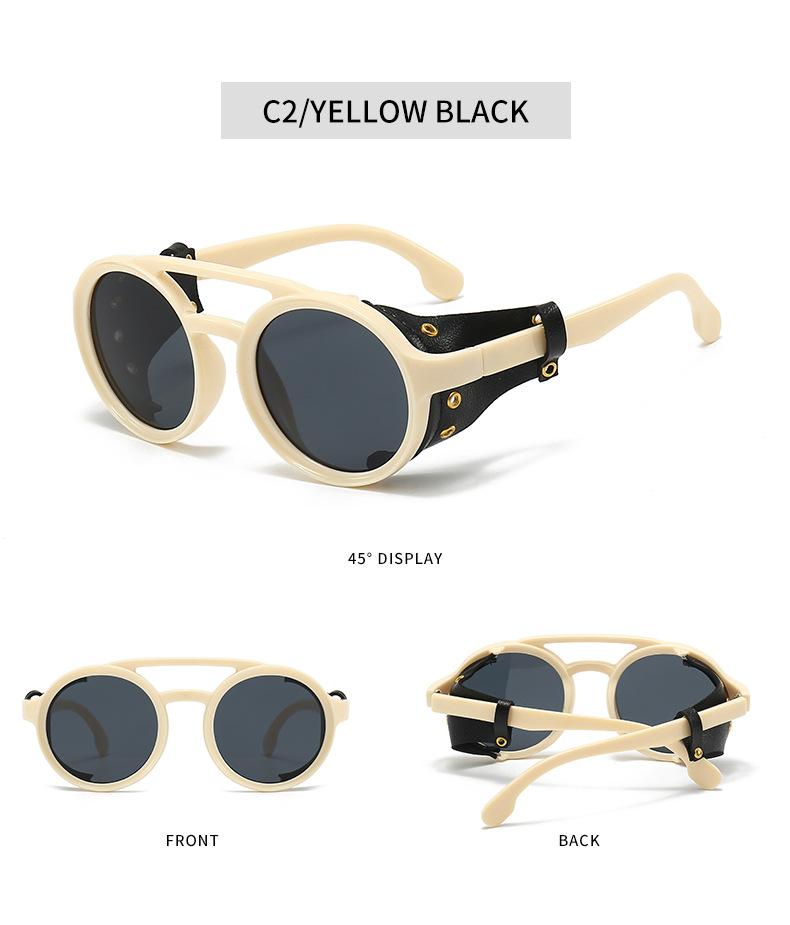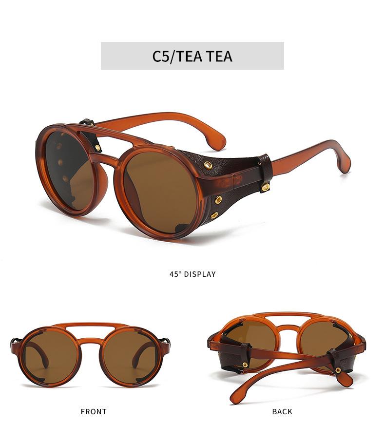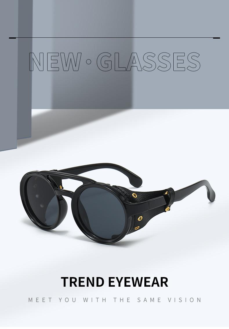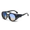 Nuevas gafas de sol Steampunk Kufang para hombre, de estilo europeo y americano, con decoración de borde de cuero y montura redonda a la moda para mujer.