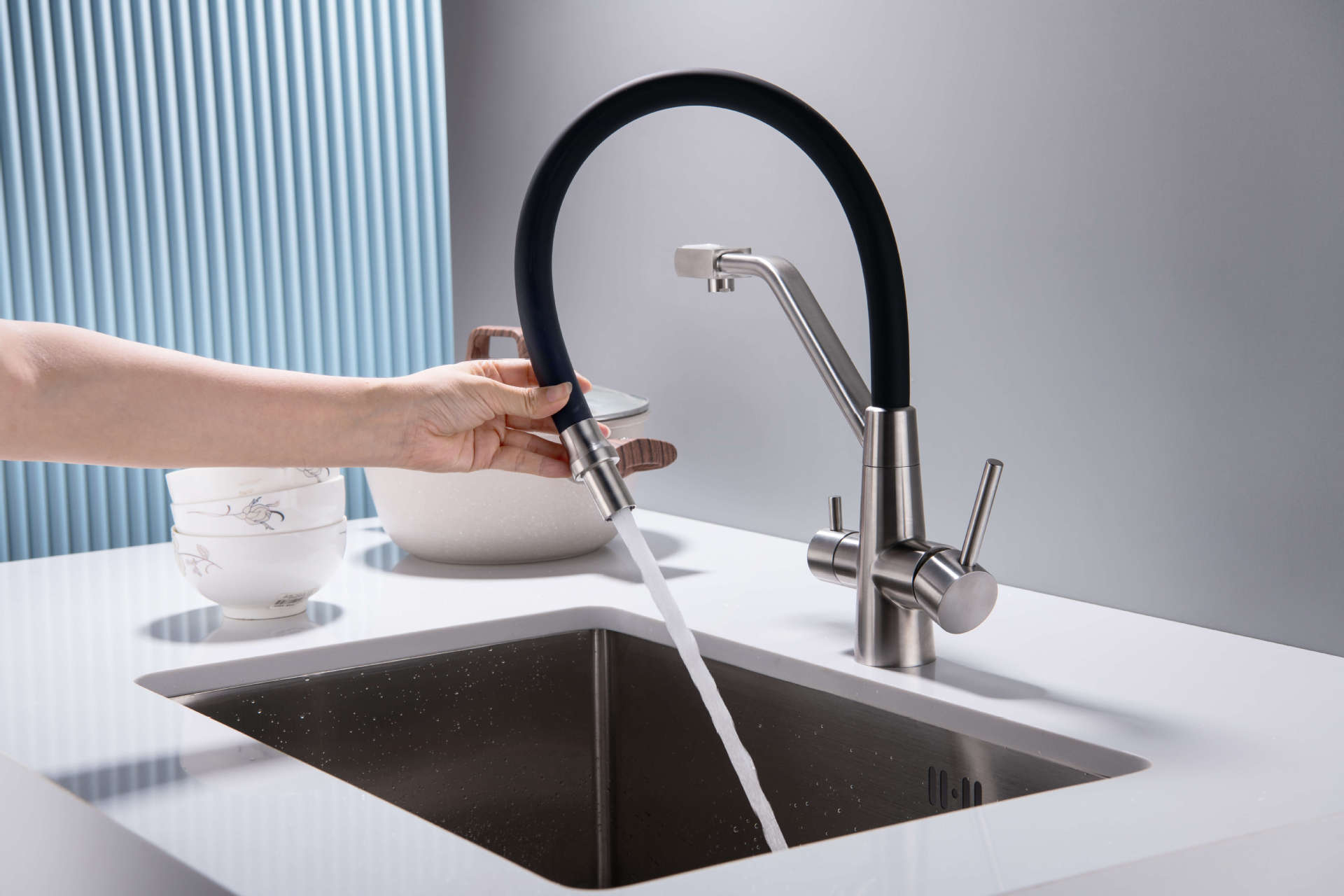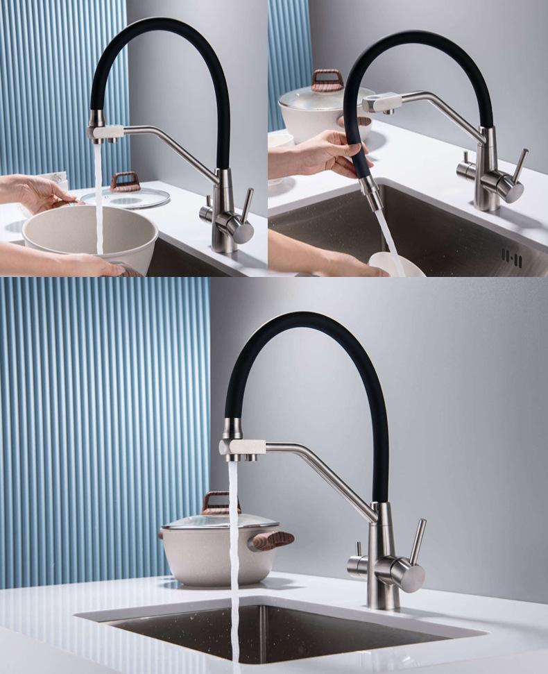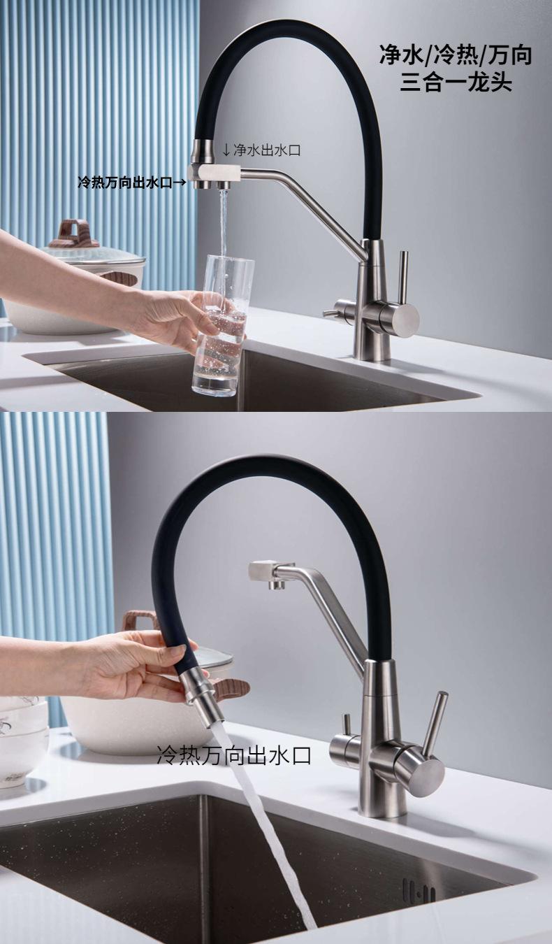 Grifo transfronterizo de acero inoxidable 304 para cocina, lavabo, grifo tres en uno para agua fría, tropical, purificada, de doble uso