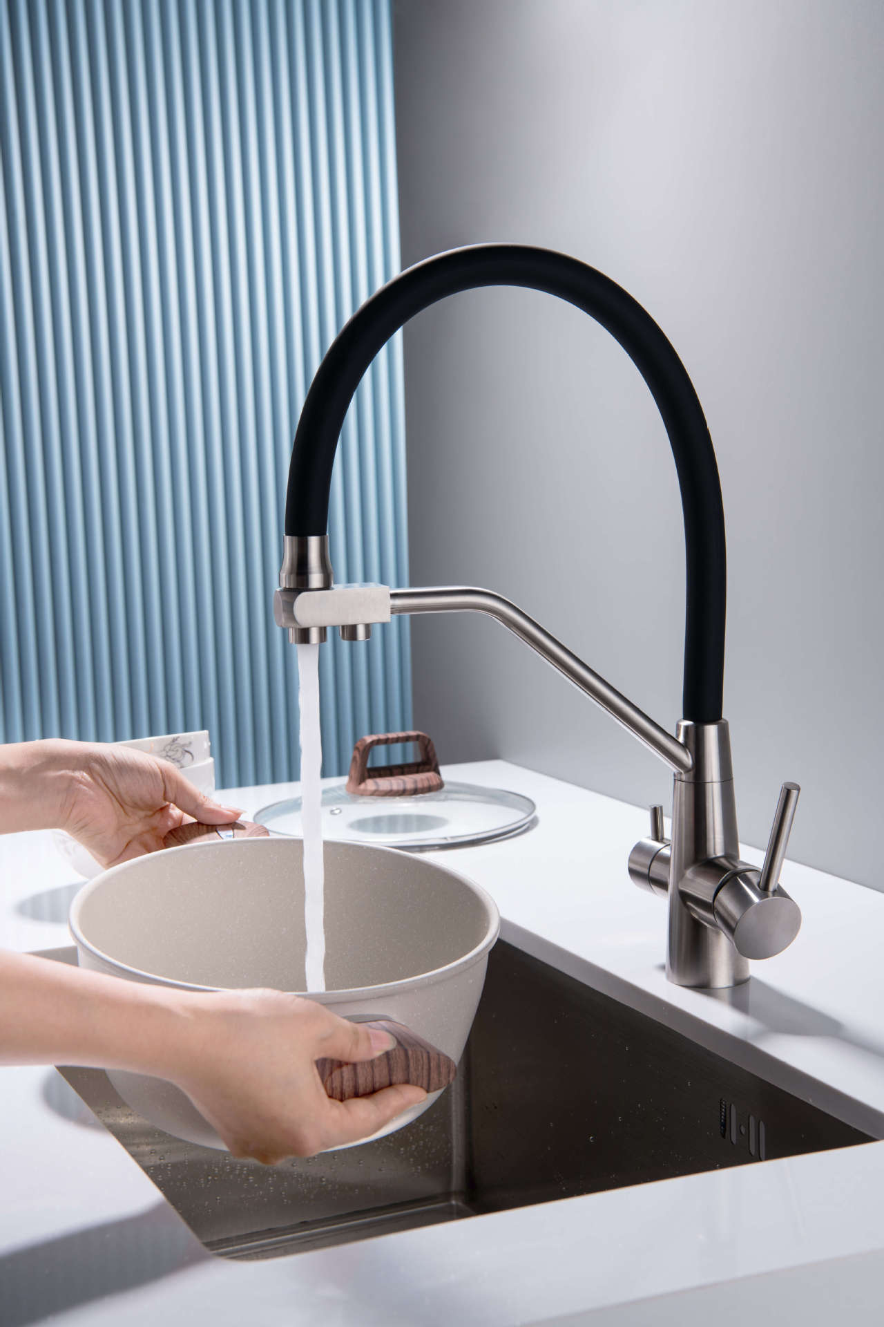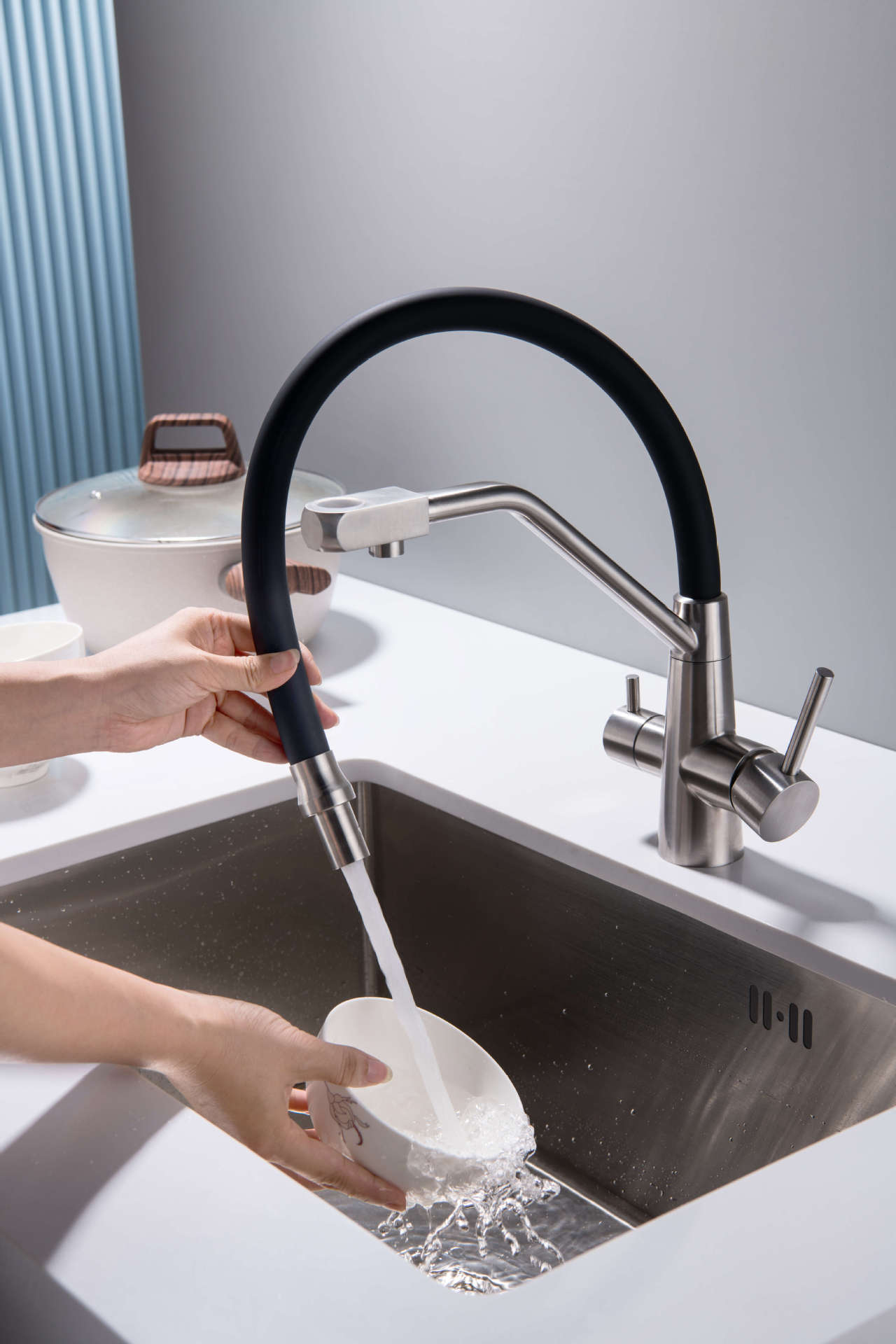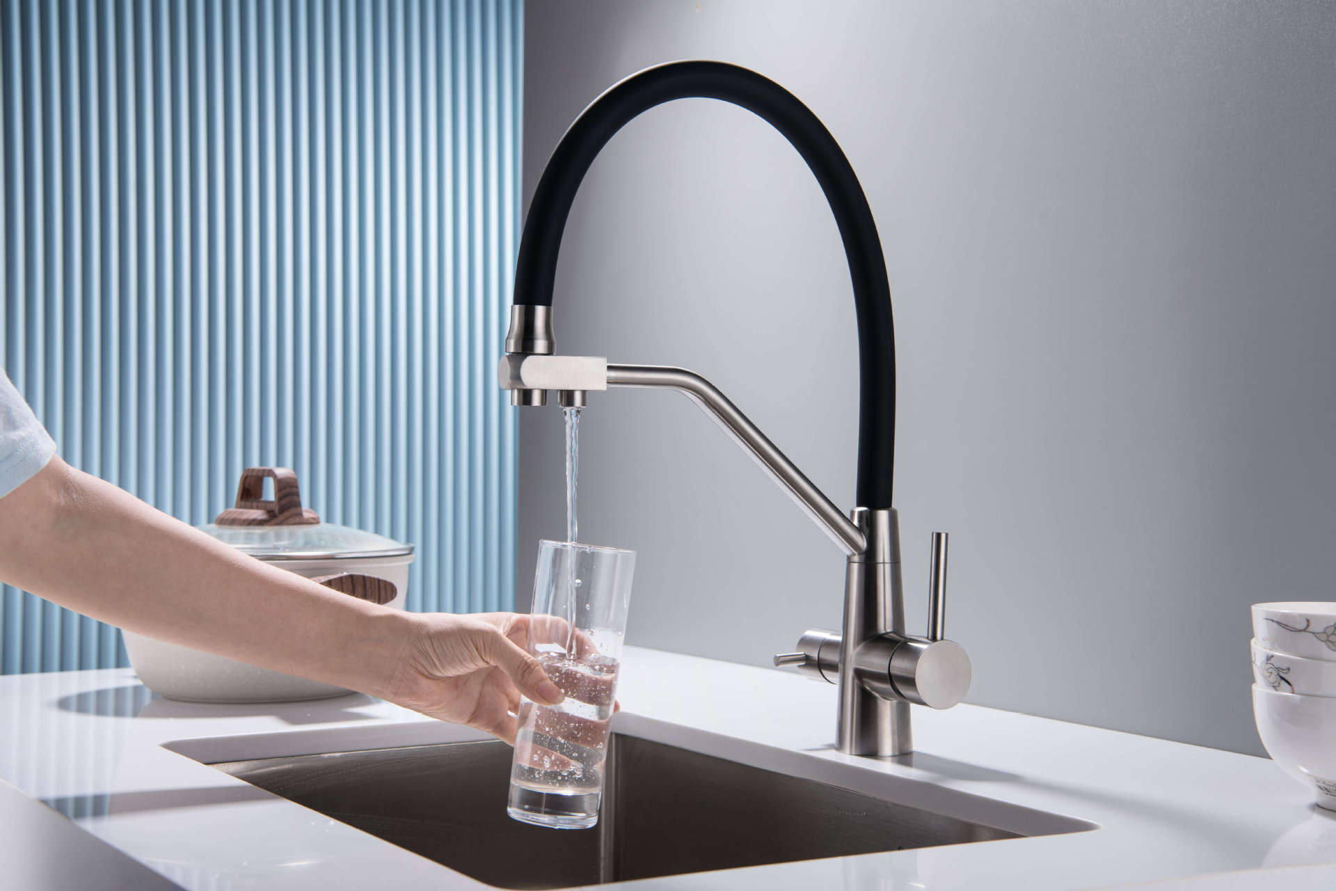 Grifo transfronterizo de acero inoxidable 304 para cocina, lavabo, grifo tres en uno para agua fría, tropical, purificada, de doble uso
