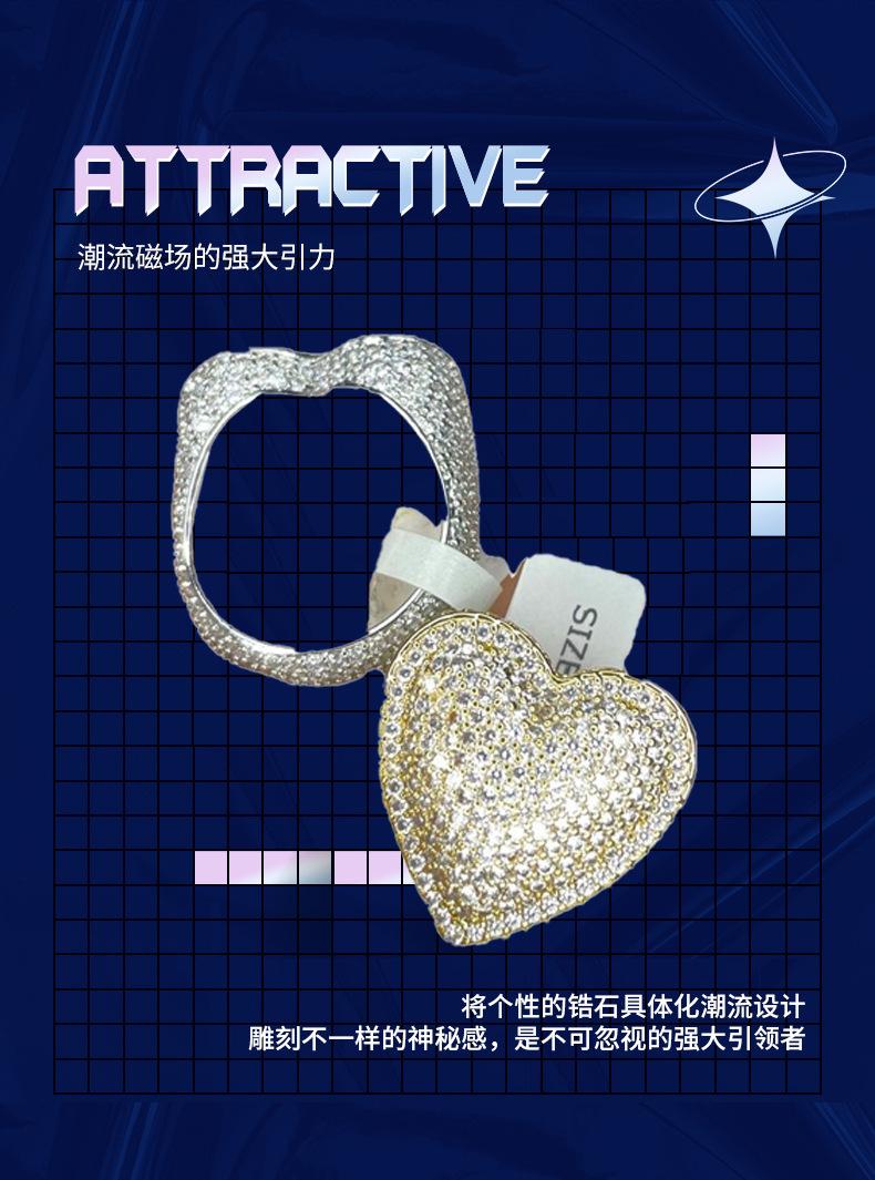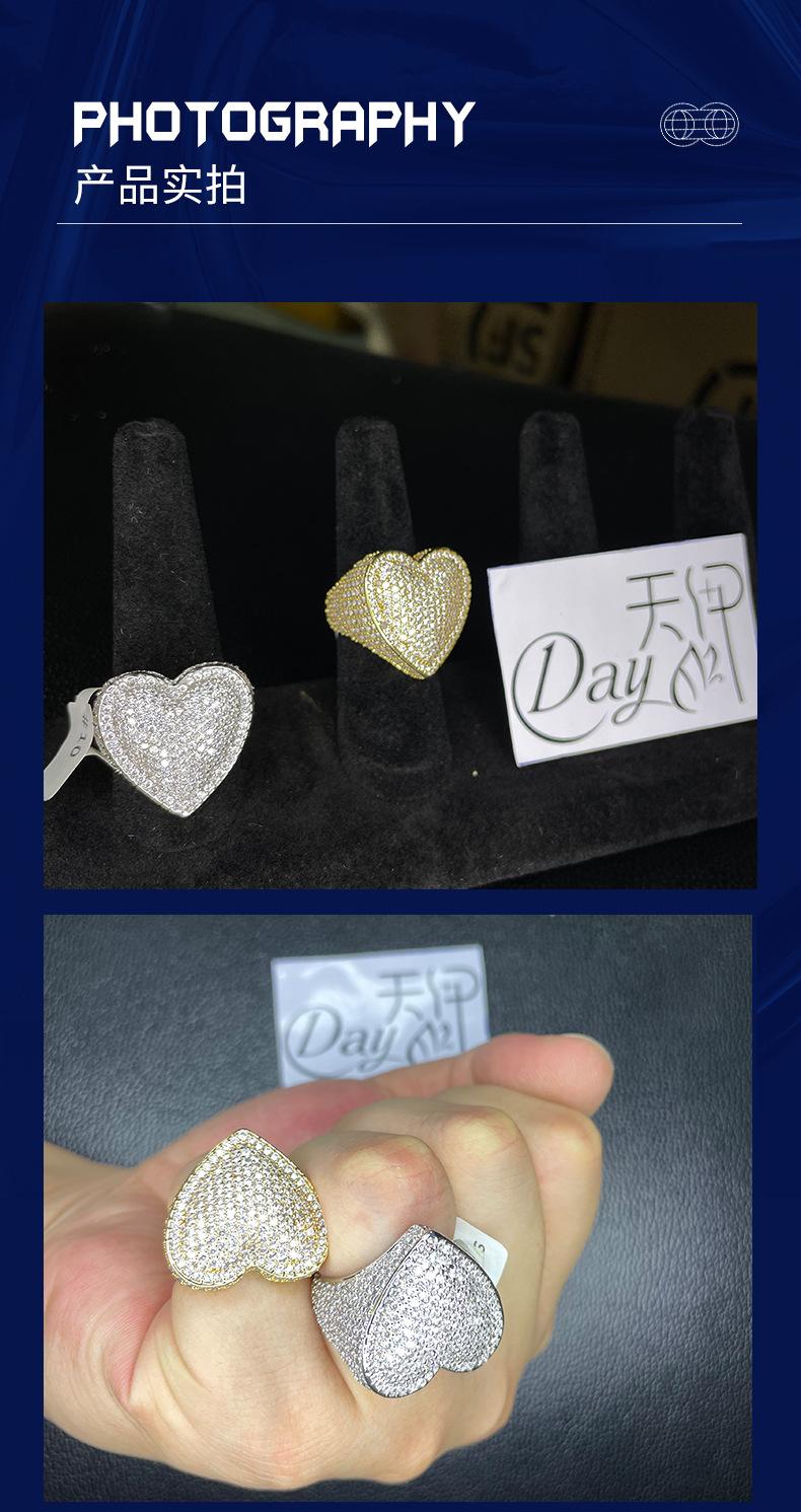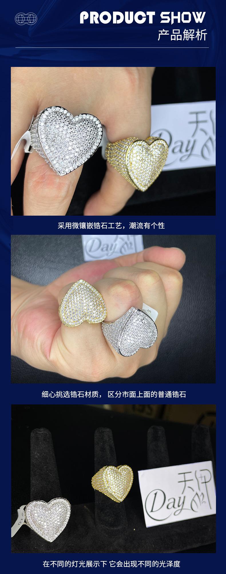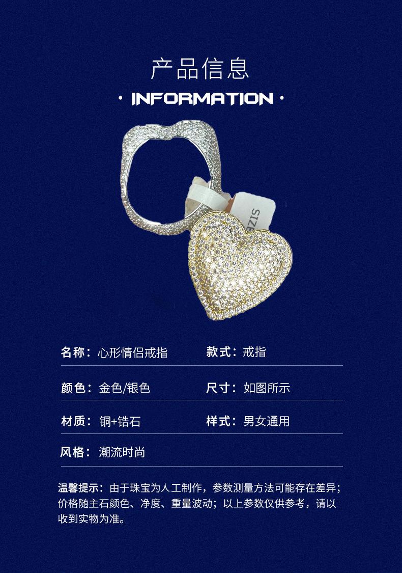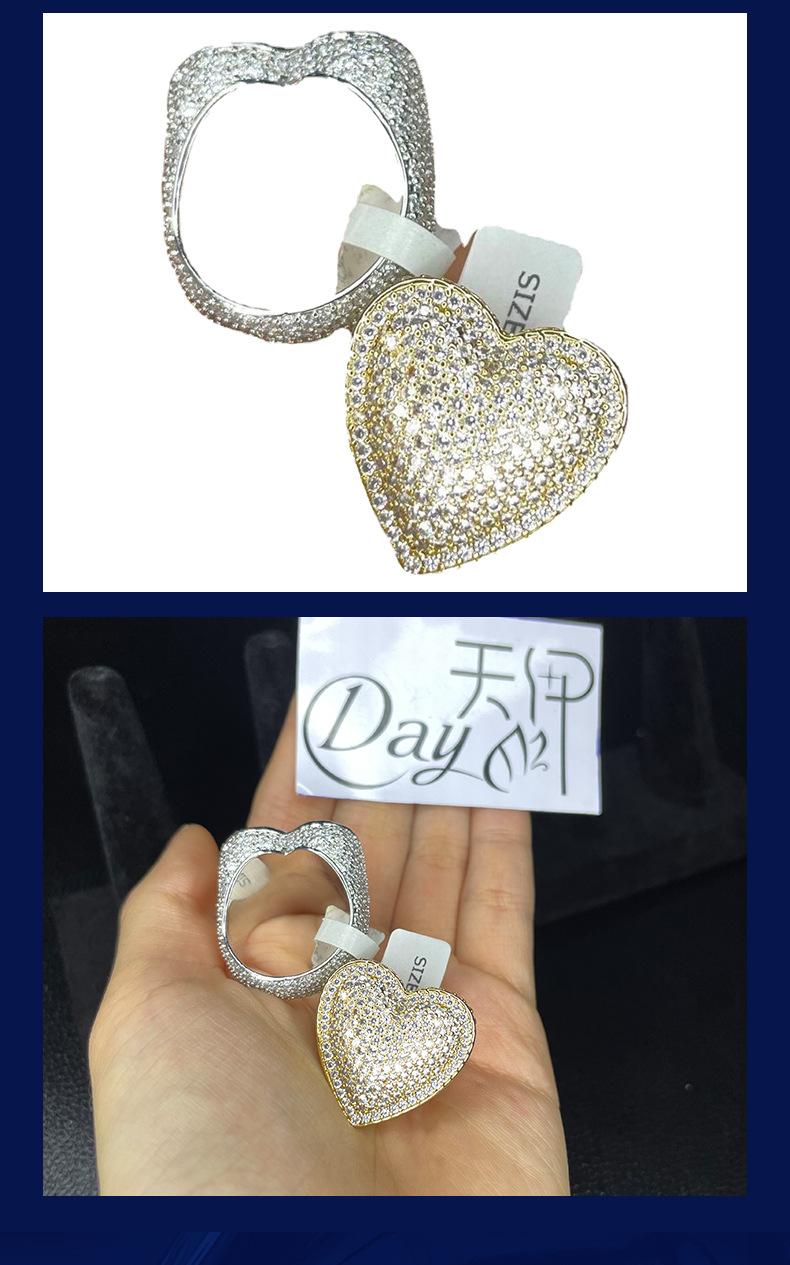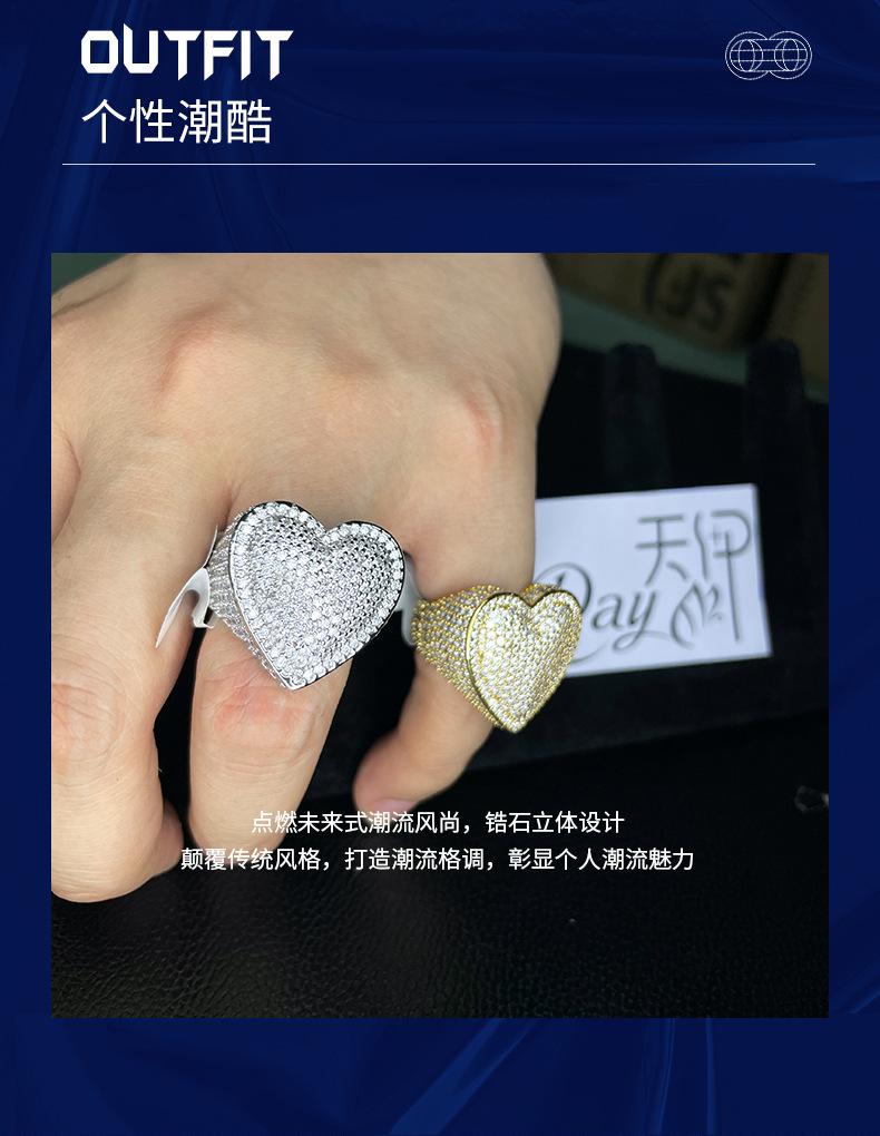 Anillo Hip-hop Transfronterizo Circonita Forma de Corazón Anillo de Pareja Europeo y Americano Forma de Amor Anillo de Personalidad hiphop Marca de Moda