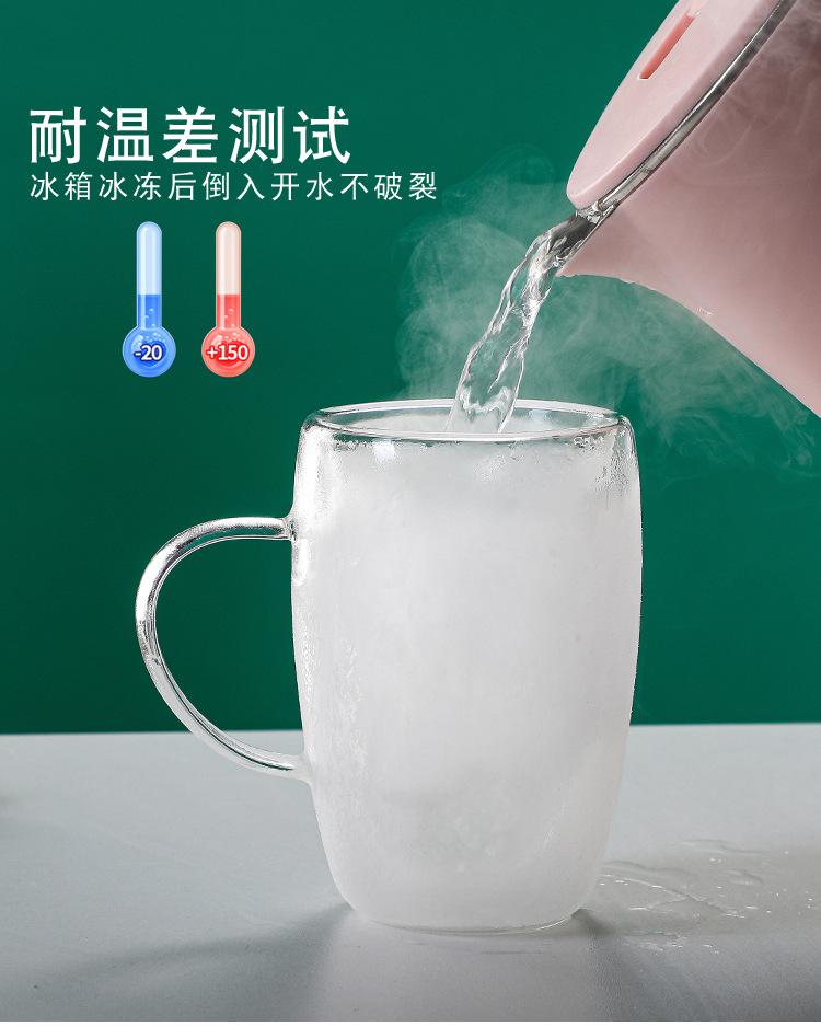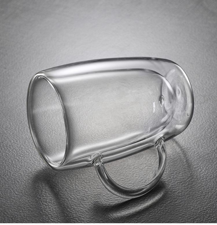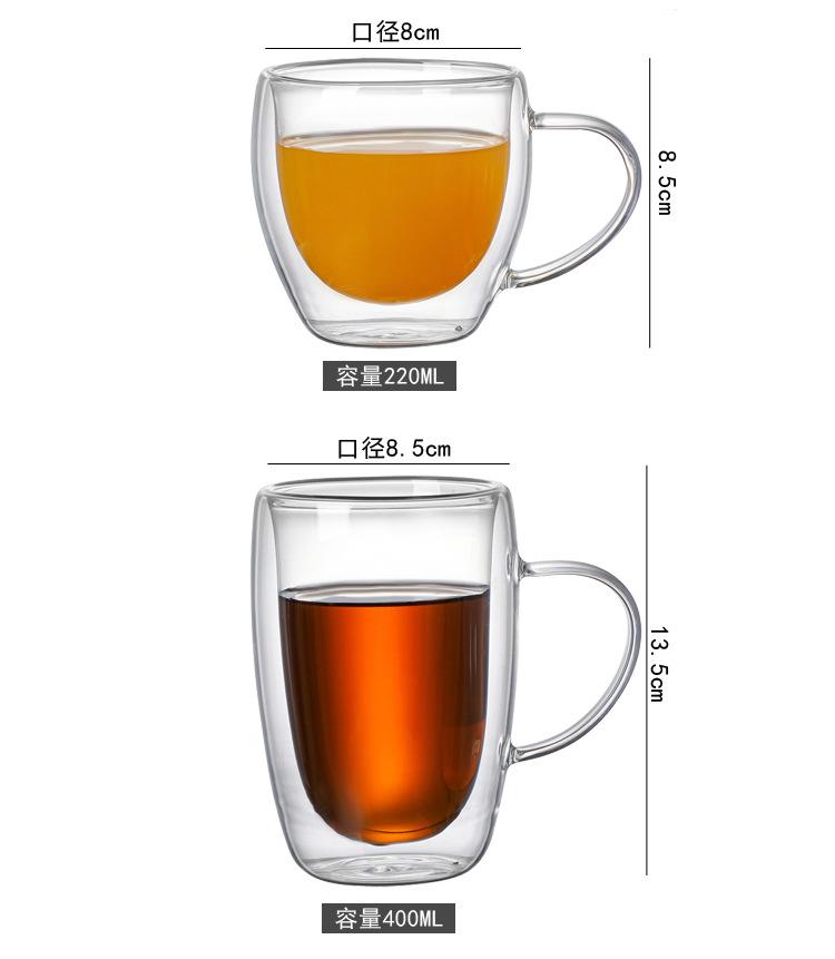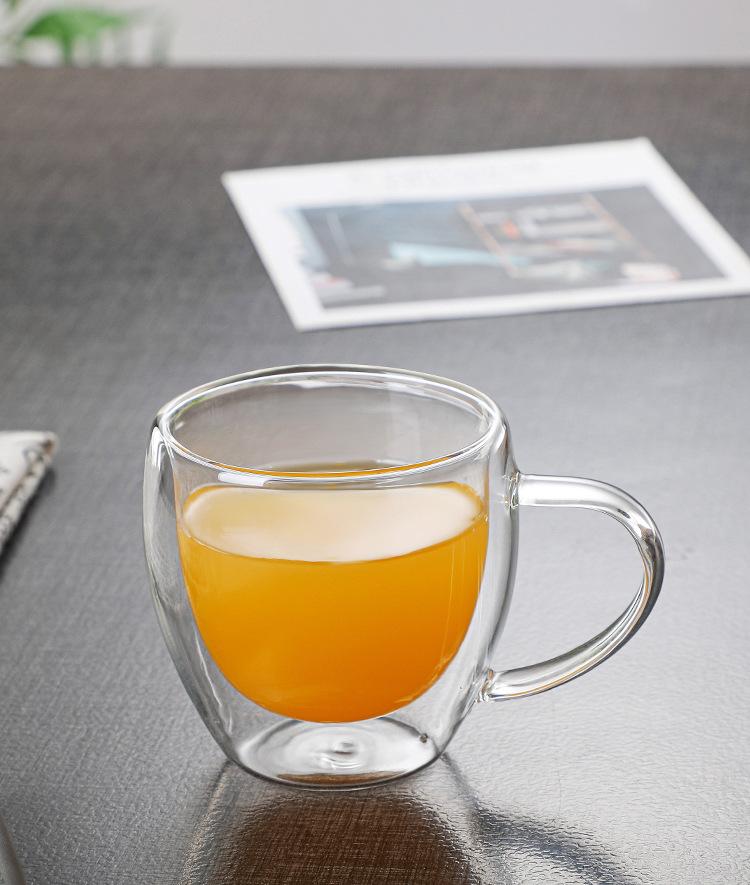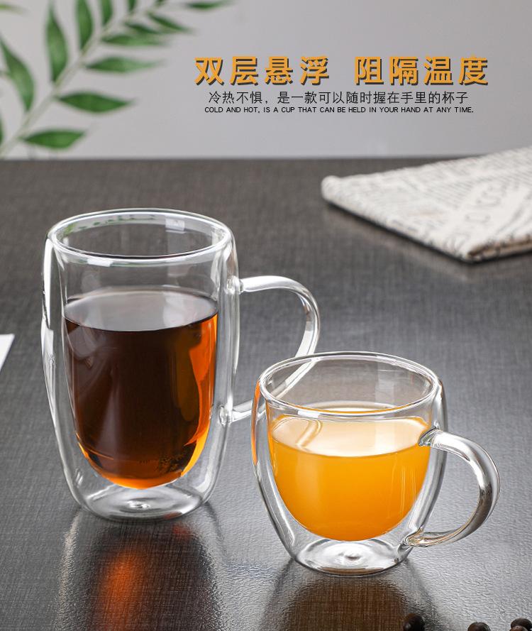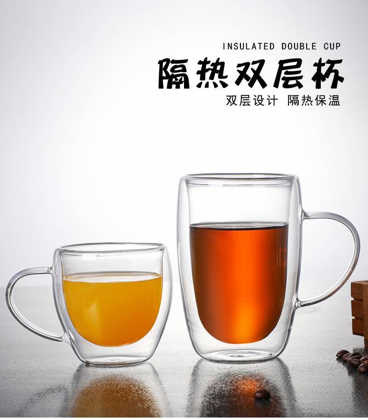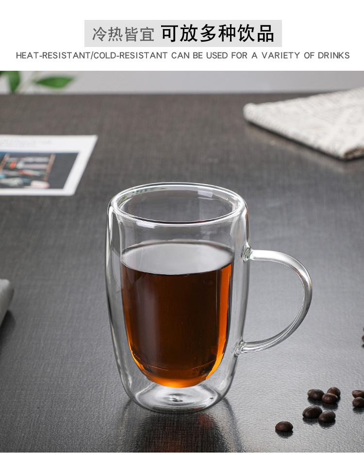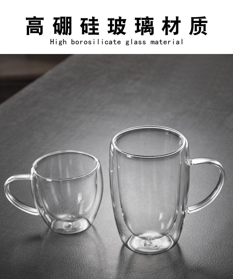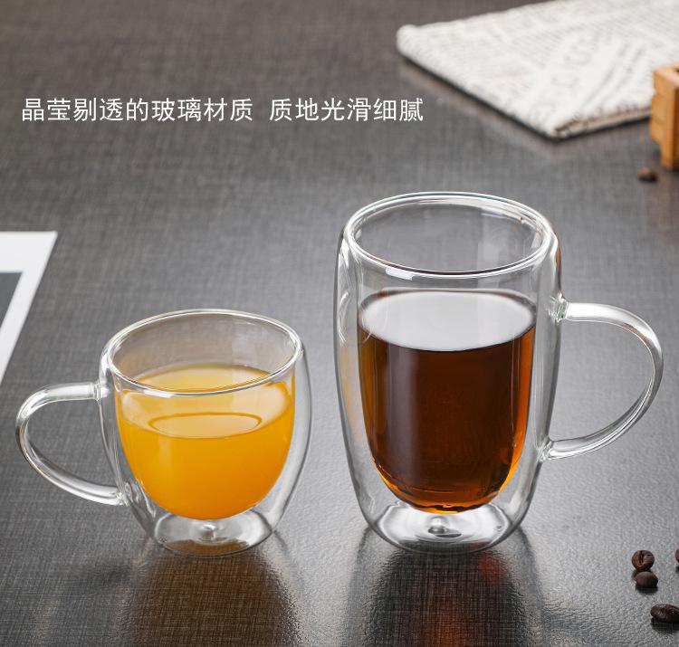 Taza de café transparente de vidrio engrosado con aislamiento de doble capa transparente con asa, taza de agua de vidrio para oficina, taza con forma de huevo para el hogar