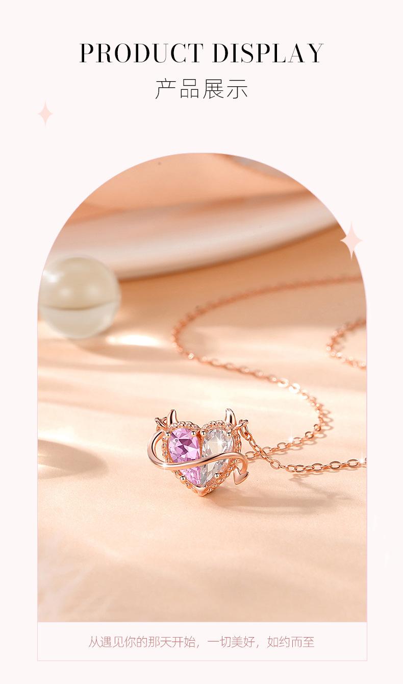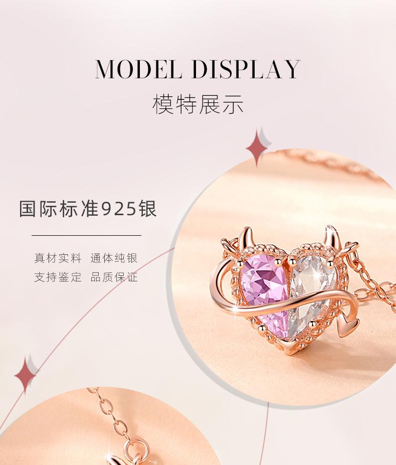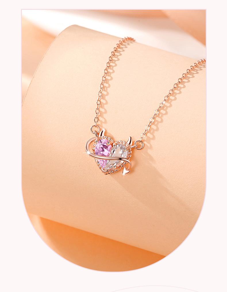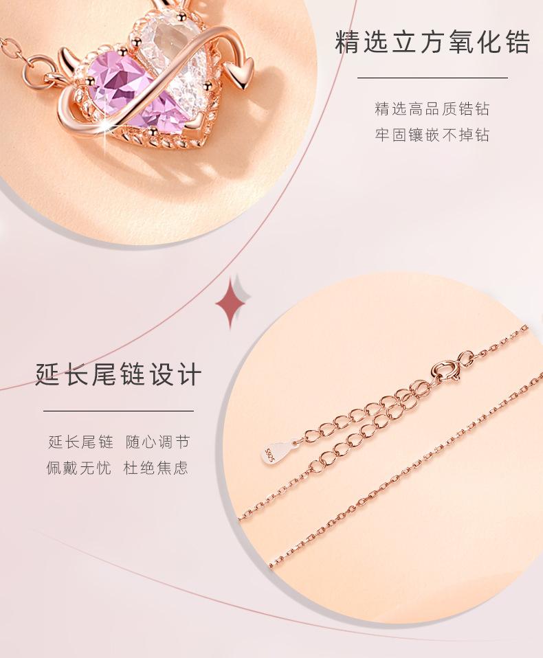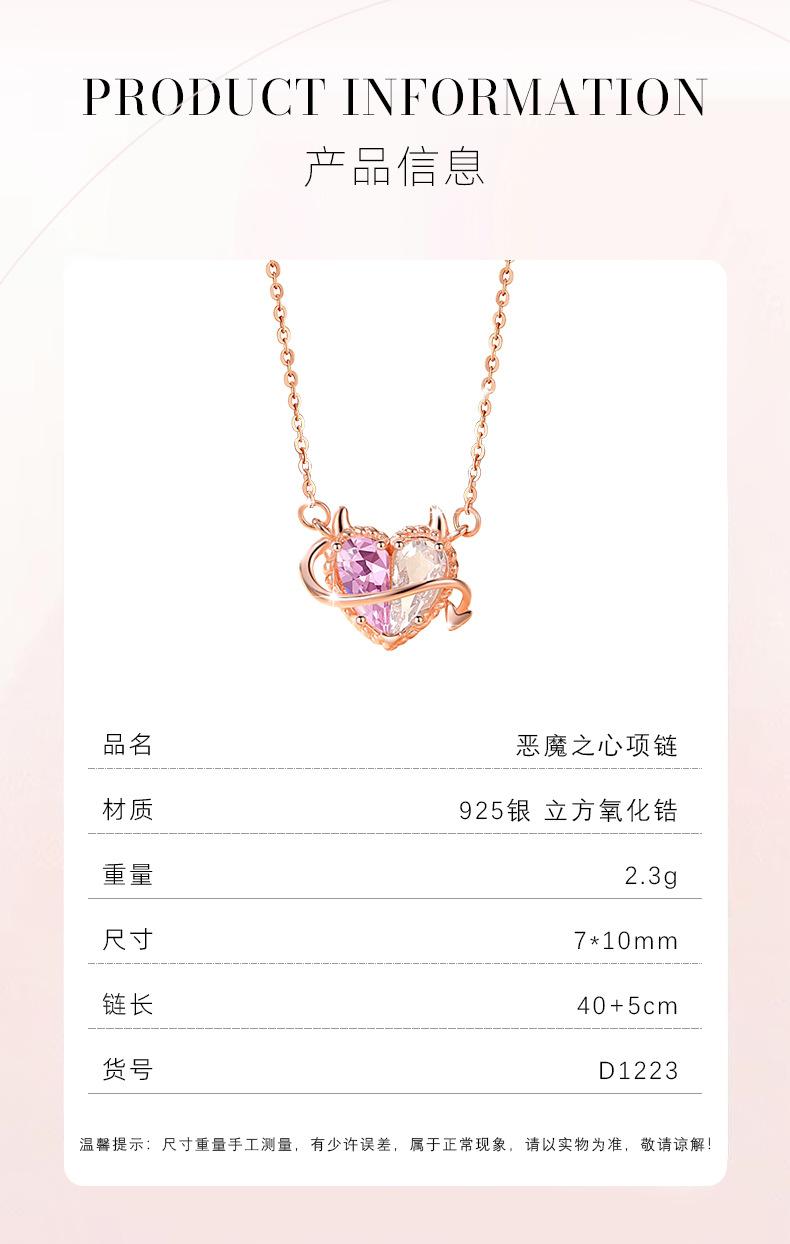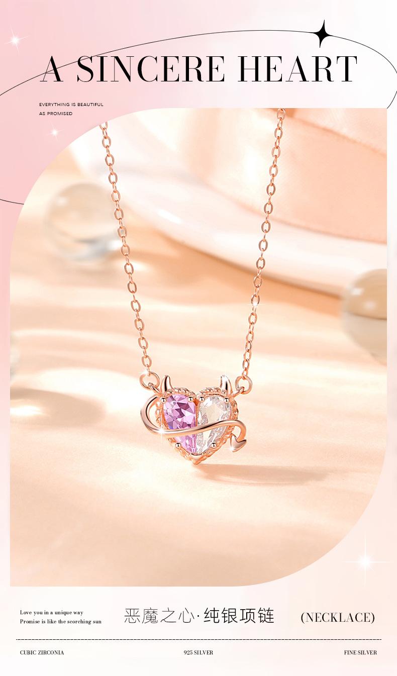 Compra Collar Love de plata de ley 925 para mujer, diseño de nicho, entrada de lujo, cadena de clavícula con diamante rosa diablo y colgante de corazón de una flecha. al por mayor en Joom.pro
