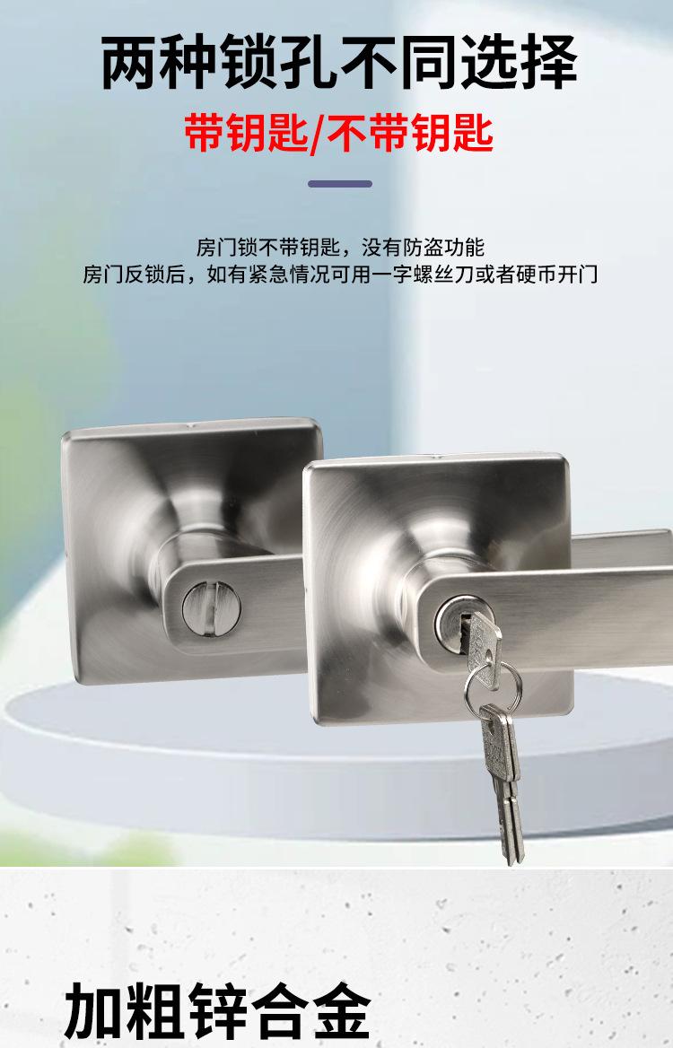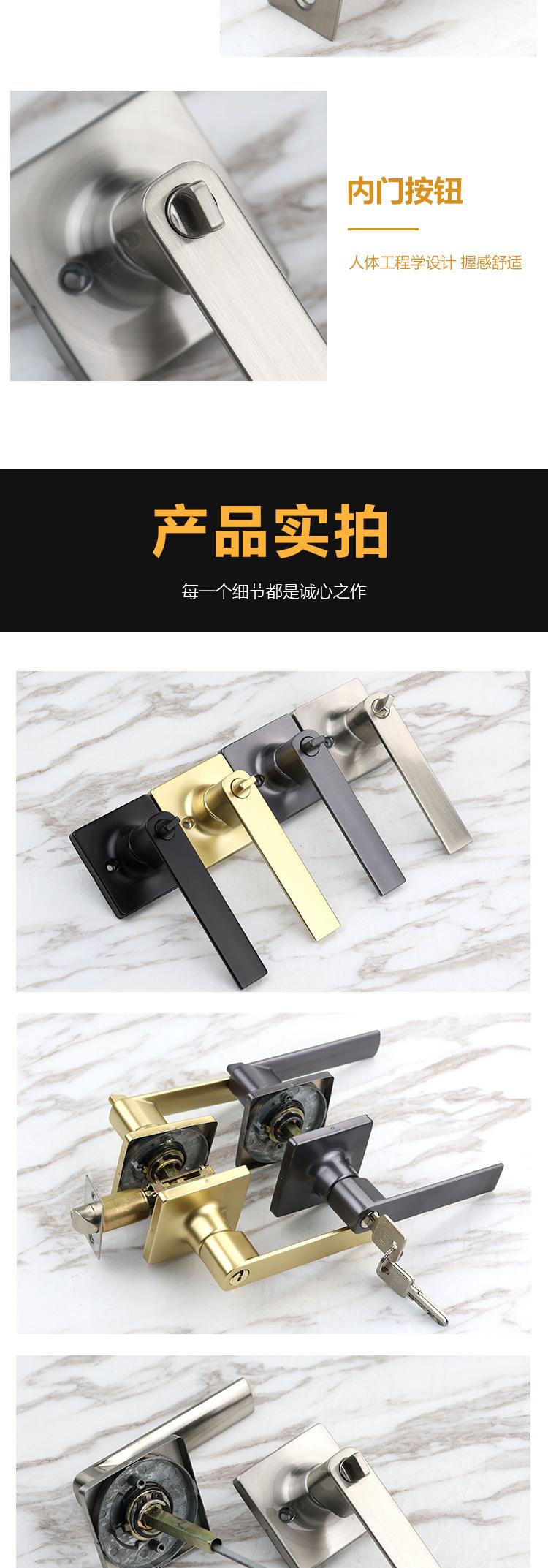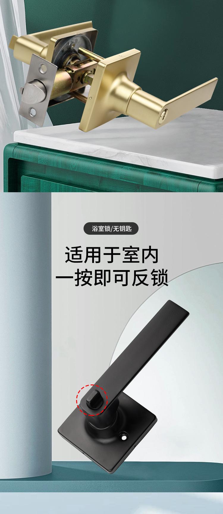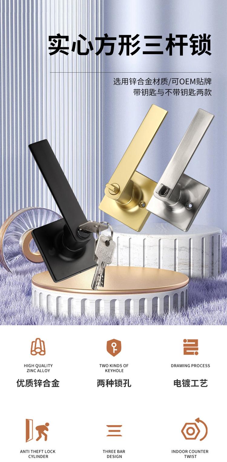 Le Lang cerradura de manija cuadrada de tres polos al por mayor, cerradura para puerta de baño, manija de puerta de aleación de zinc sólido, cerradura para puerta de canal