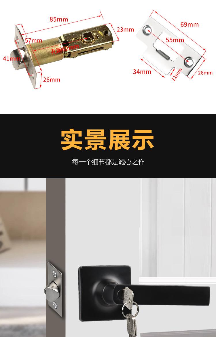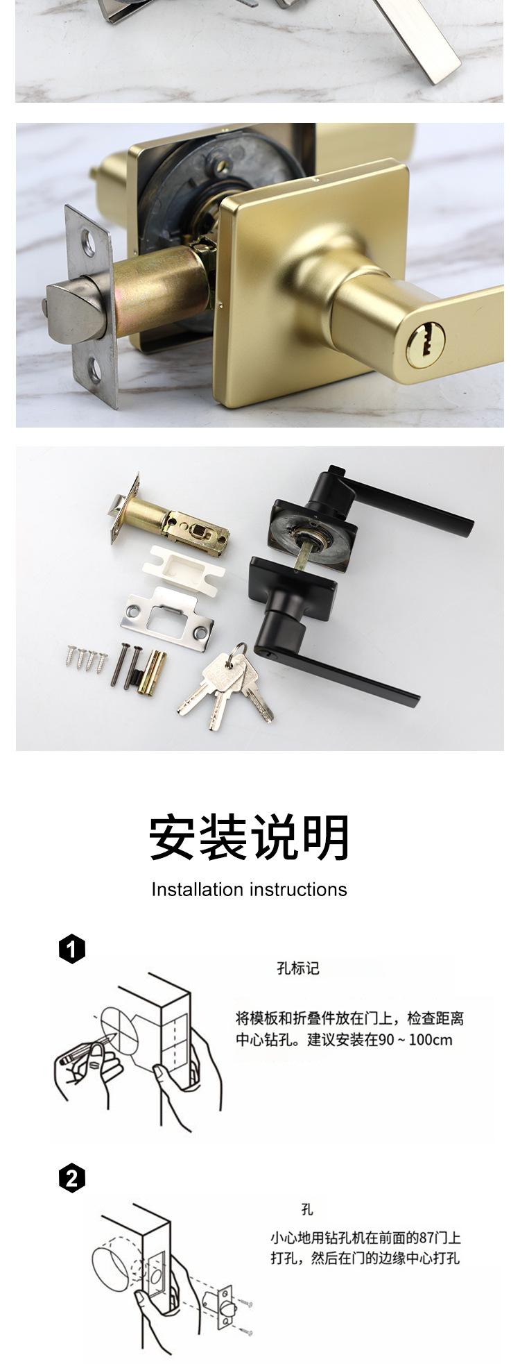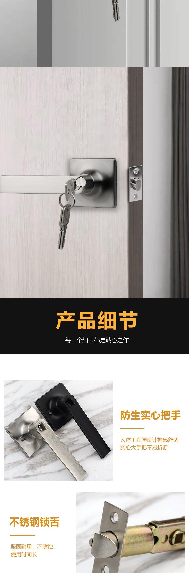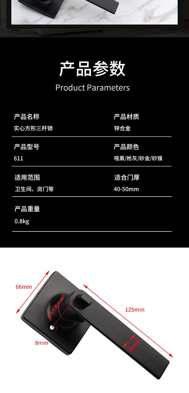 Le Lang cerradura de manija cuadrada de tres polos al por mayor, cerradura para puerta de baño, manija de puerta de aleación de zinc sólido, cerradura para puerta de canal
