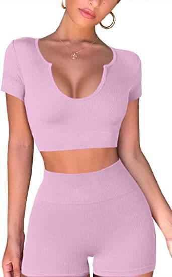 Nuevo Europeo y Americano Sin Costuras Tejido Sexy Chaleco Deportivo Manga Corta Shorts Pantalones Largos Ropa de Yoga Traje de Fitness Ajustado
