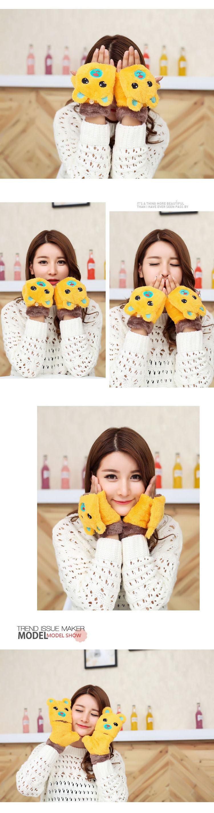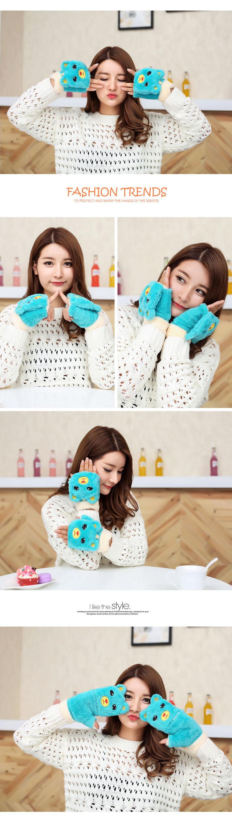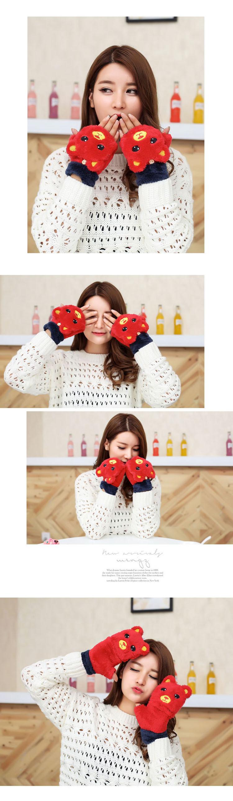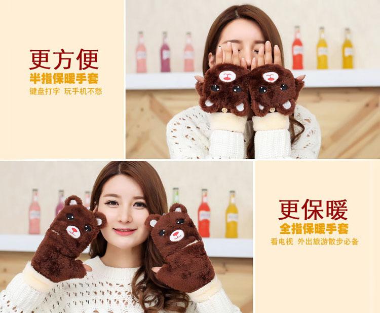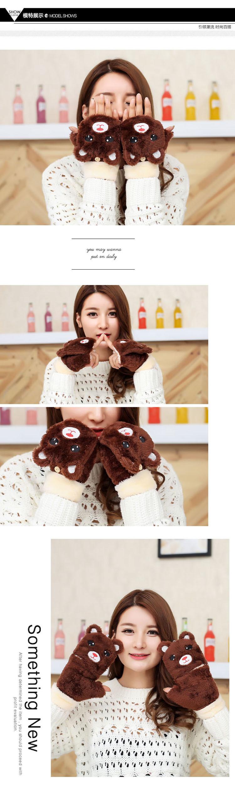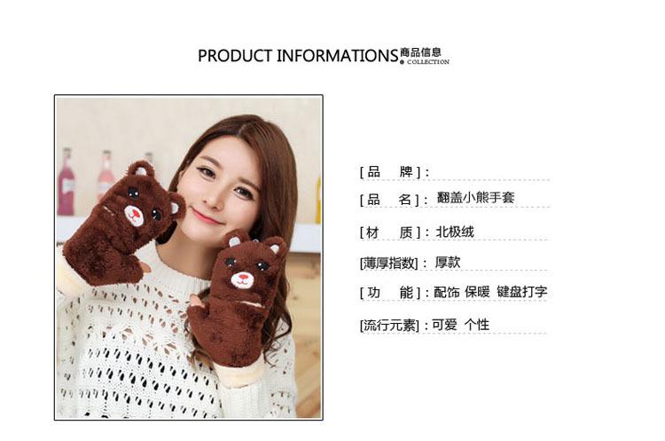 Guantes Gruesos Cálidos de Invierno para Mujer con Forro Polar, Felpa de Oso Lindo, Una Pieza Dropshipping Transfronterizo