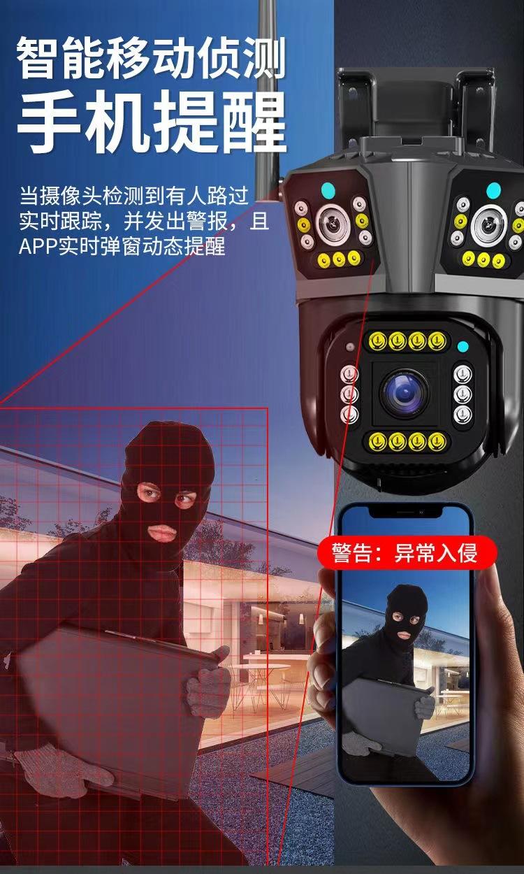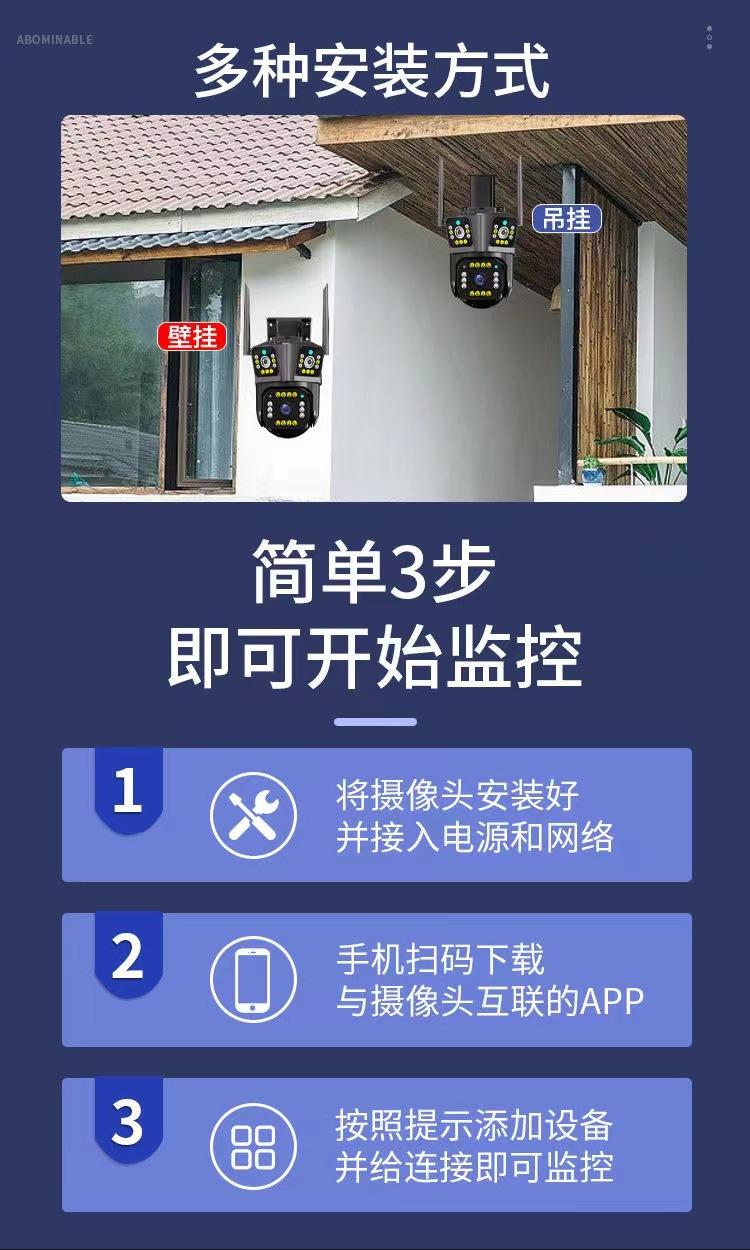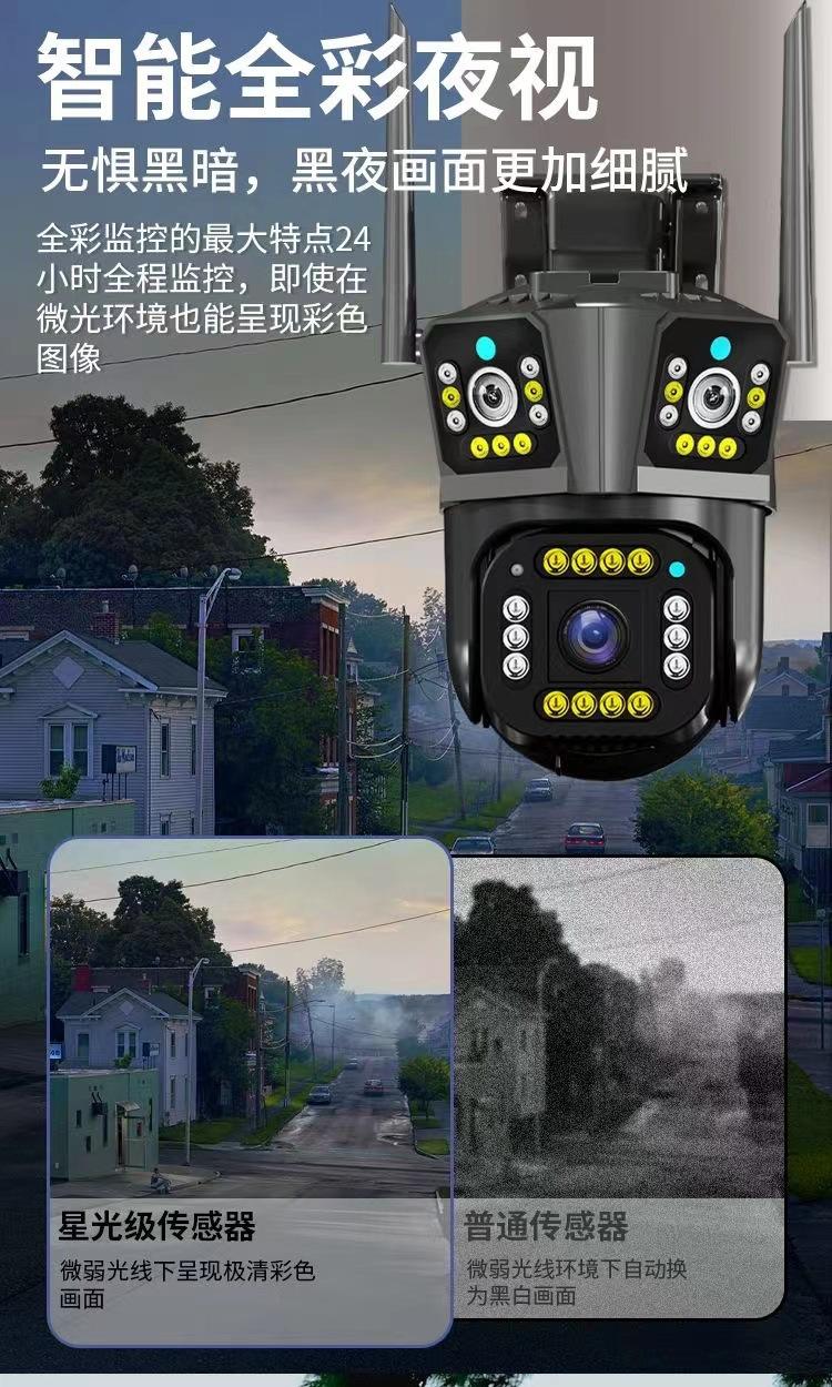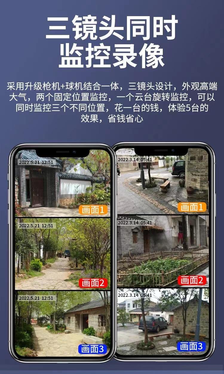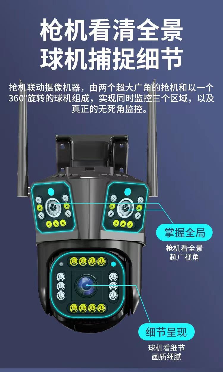 Nueva cámara de tres lentes con conexión de bola de pistola, monitor de red wifi HD, cámara inalámbrica para exteriores y hogar.