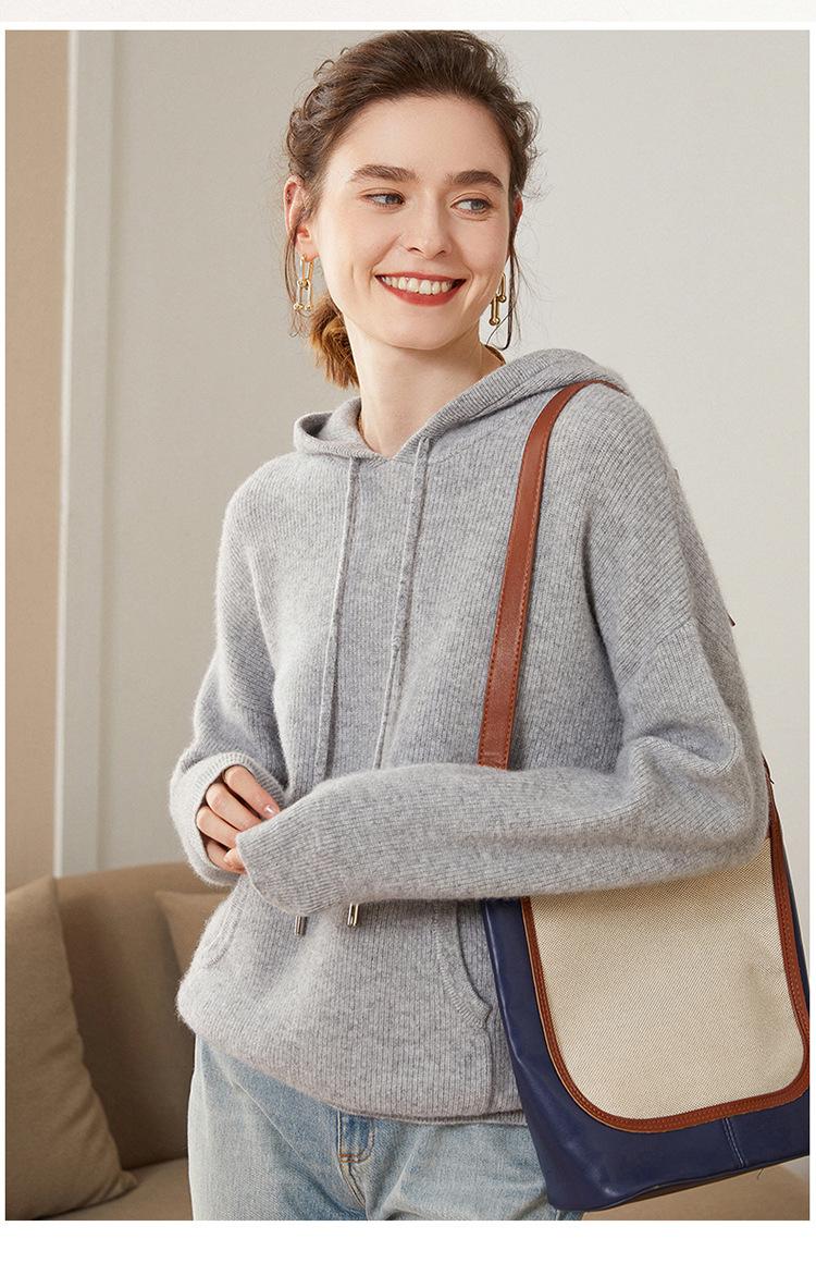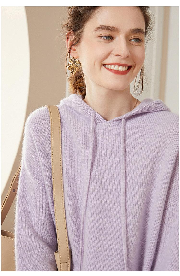 Suéter con capucha de cachemira gruesa para mujer, suéter holgado de color sólido a la moda, suéter de talla grande, otoño e invierno