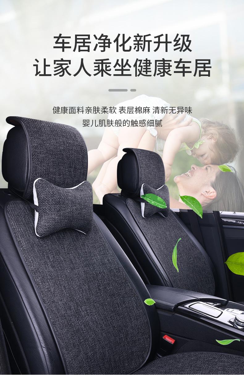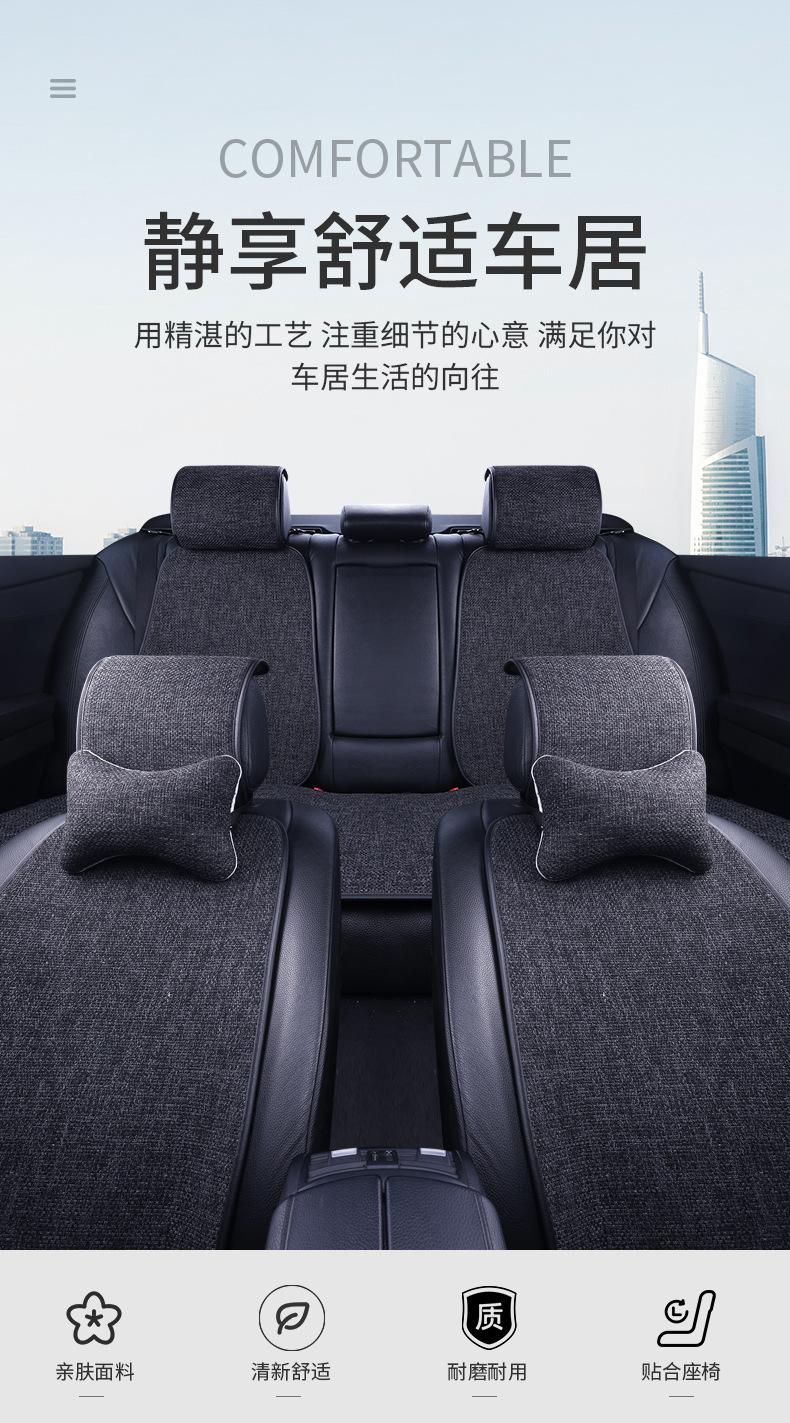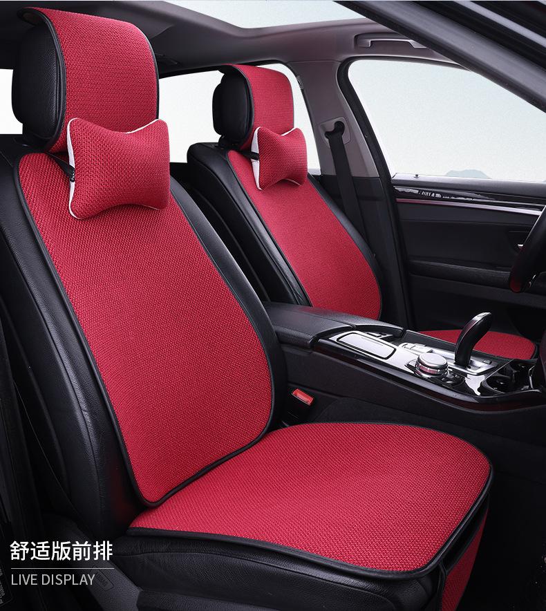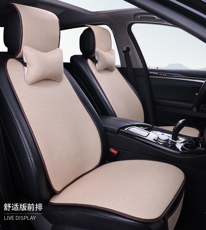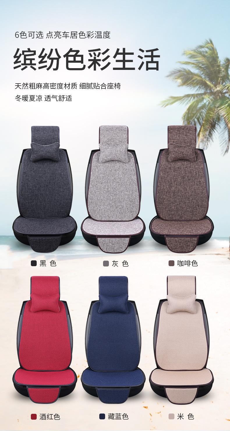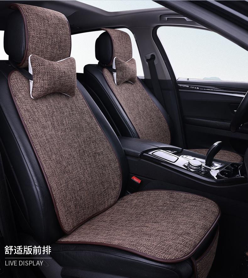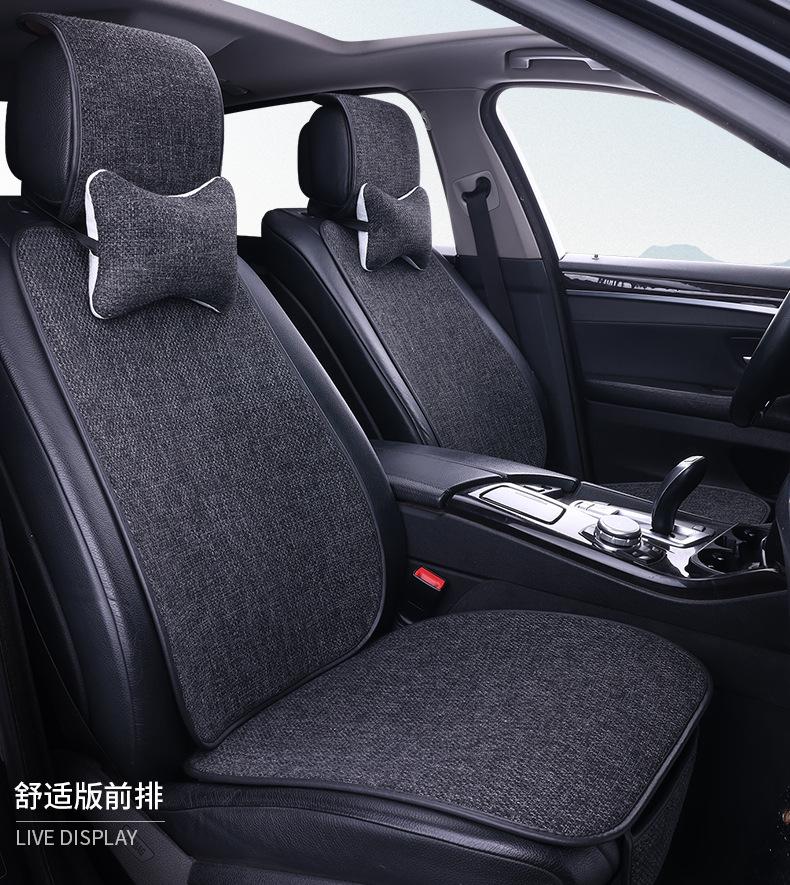 Nuevo Cojín para Asiento de Coche para Todas las Estaciones, Cojín de Asiento de Lino Transpirable Antideslizante, Cintura Pequeña Cinco Plazas Tela Juego Completo de Cojines de Asiento