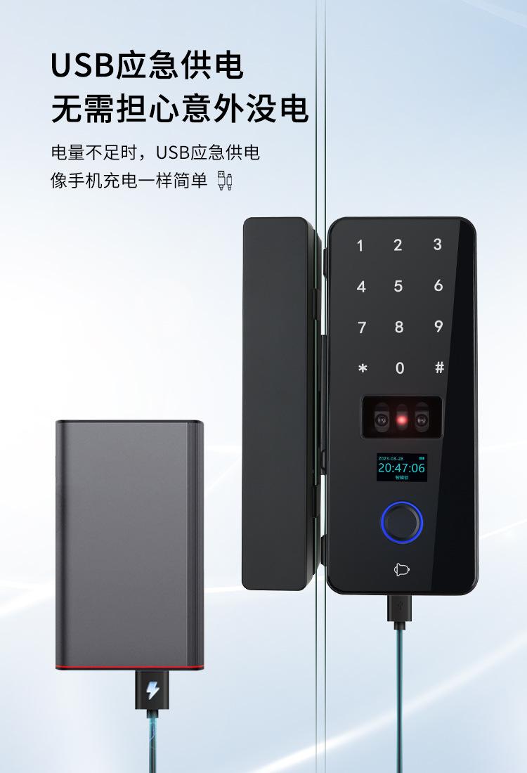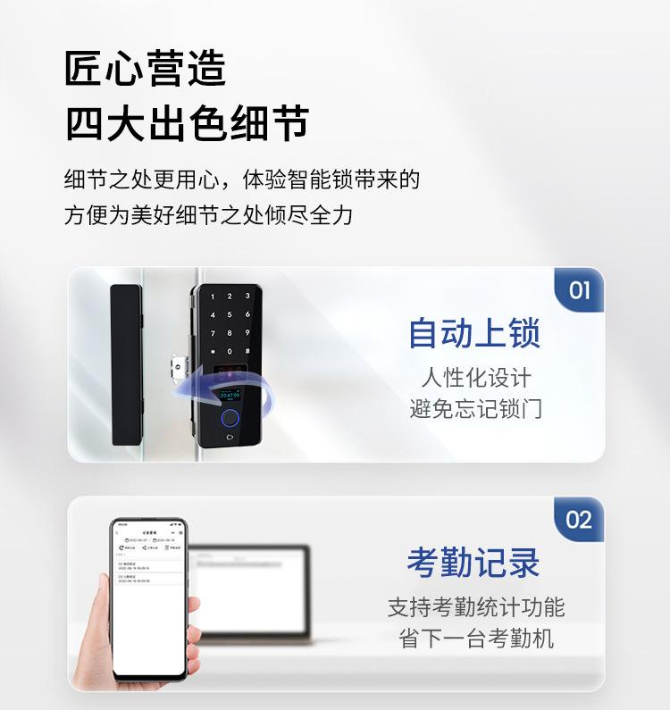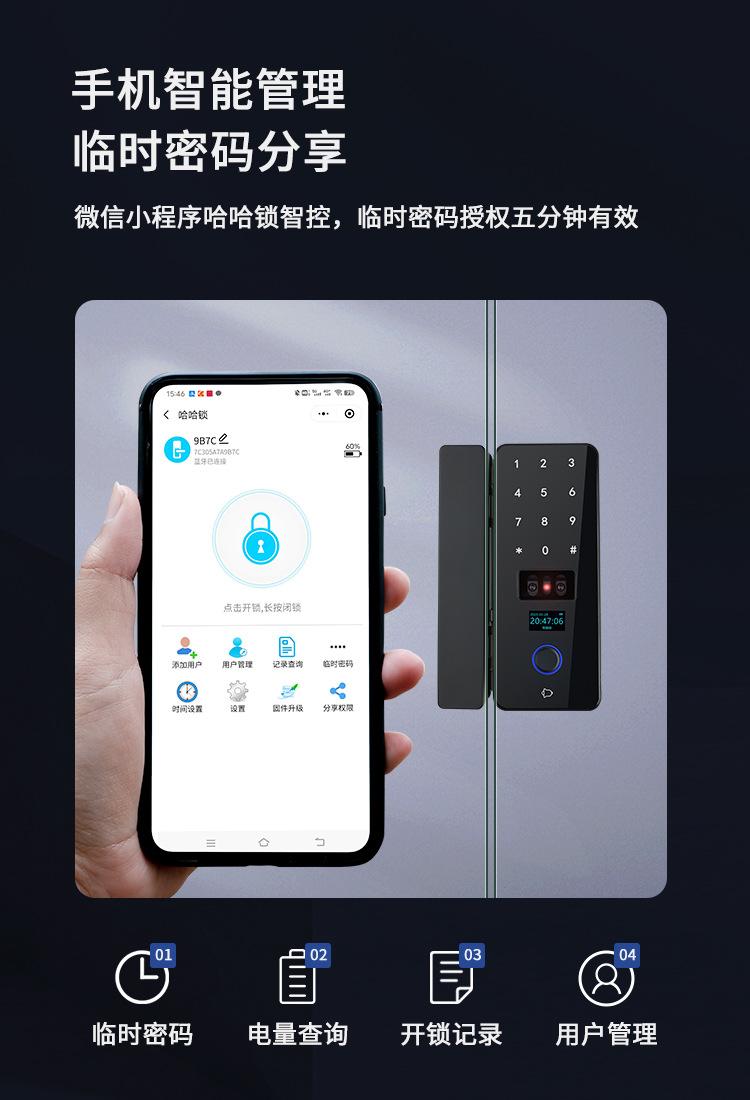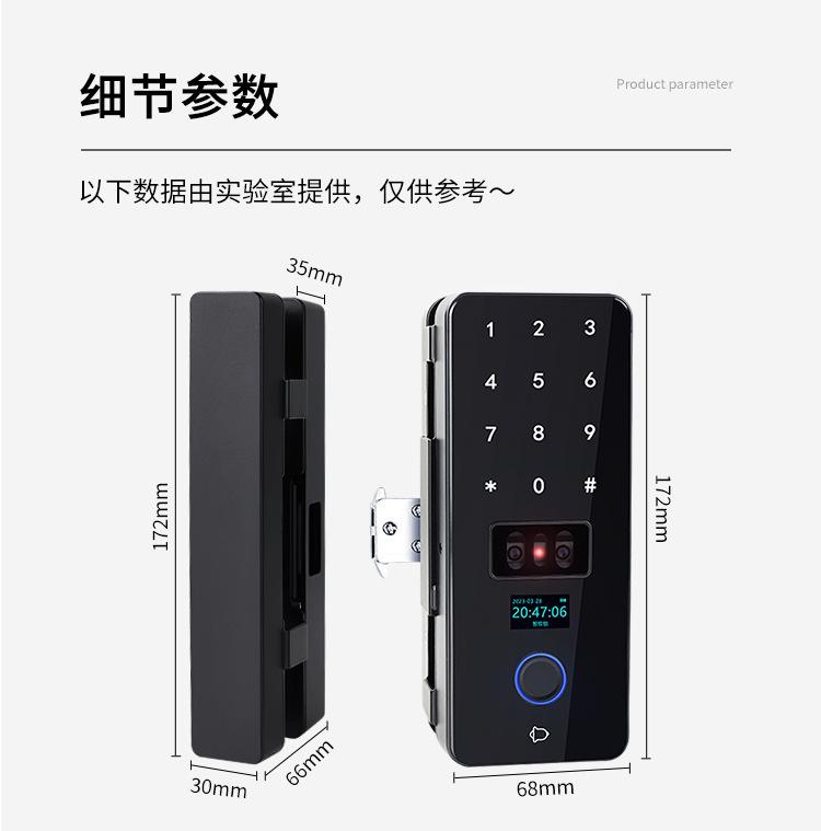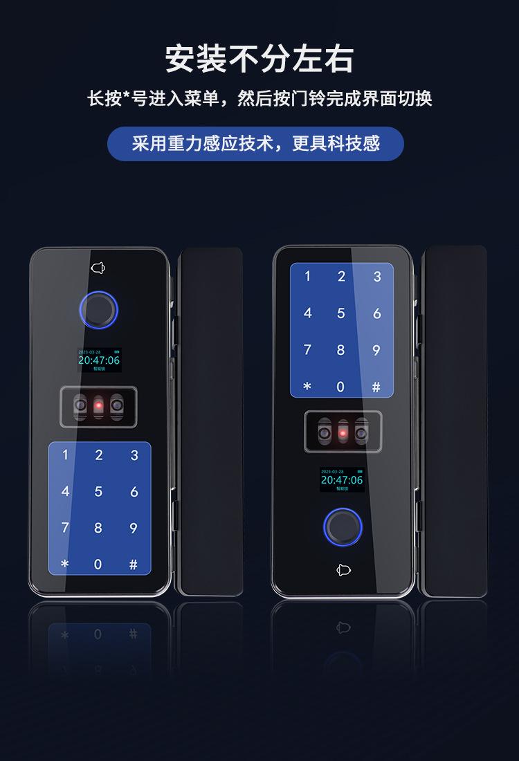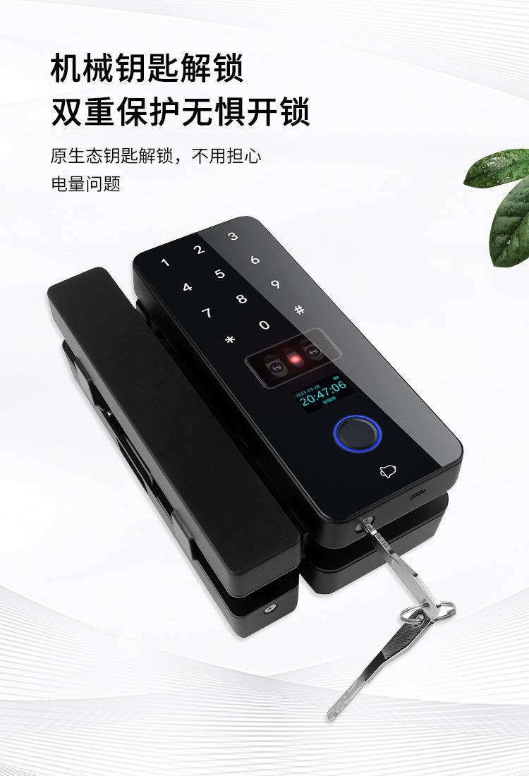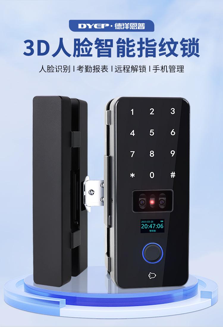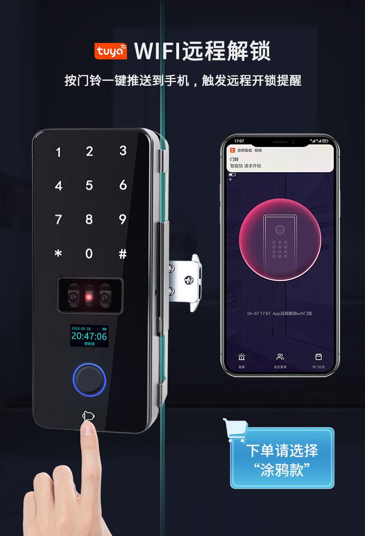 Cerradura inteligente para puerta de vidrio con reconocimiento facial 3D, cerradura con huella dactilar, desbloqueo remoto con grafiti y contraseña.
