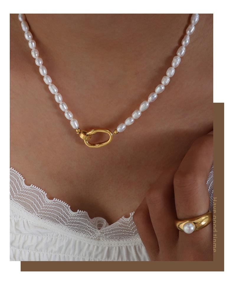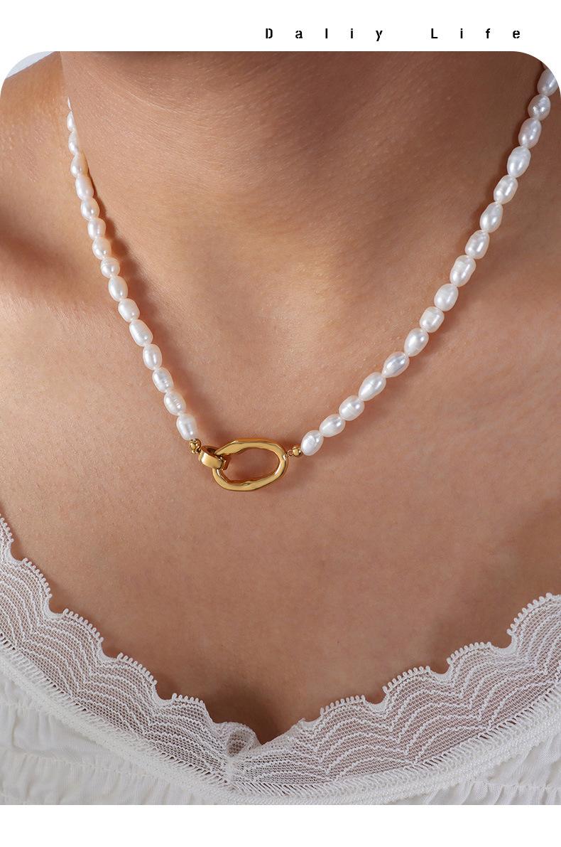 Collar de clavícula con perlas de agua dulce, diseño de personalidad de temperamento europeo y americano, joyería de acero de titanio, moda popular para chicas