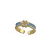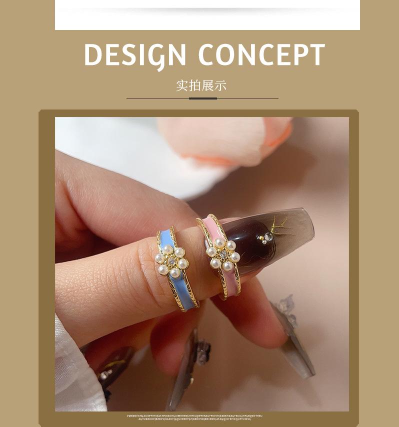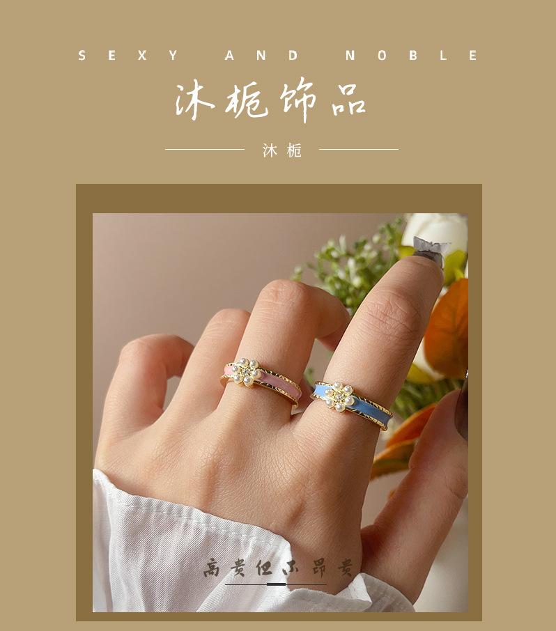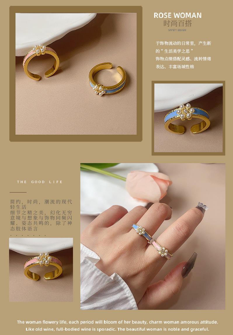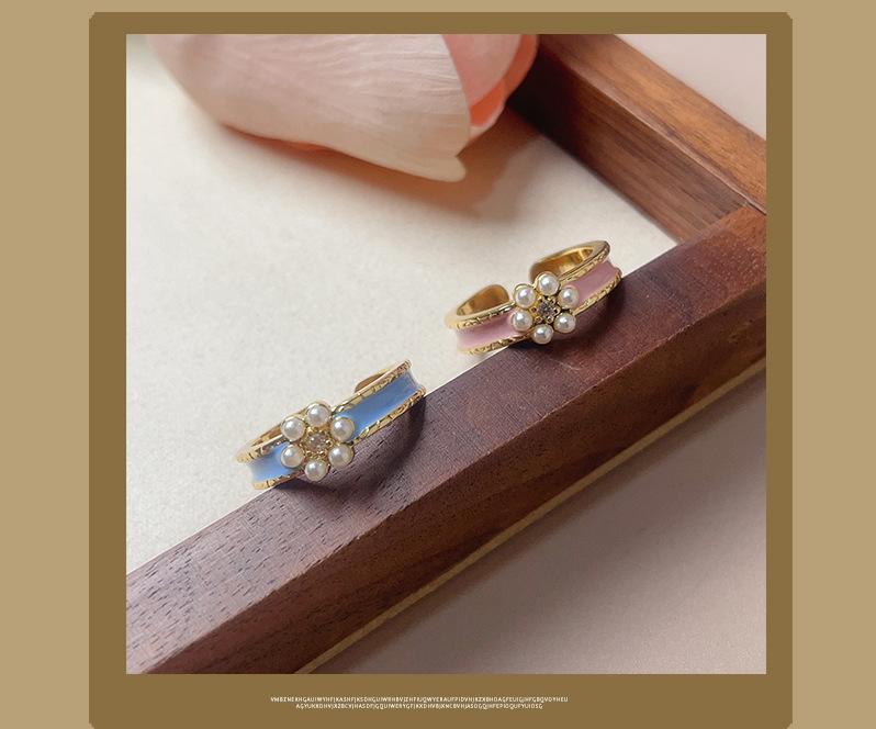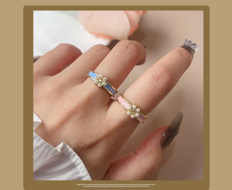 Anillo diario versátil abierto ajustable de flor pequeña dulce fresca colorida con incrustaciones de perlas, pintado a mano con aceite goteante colorido