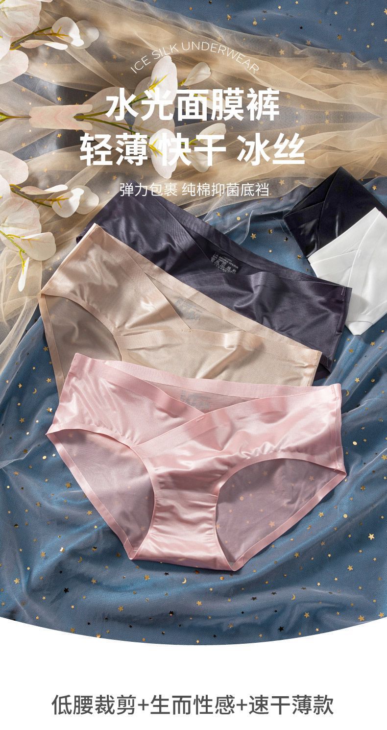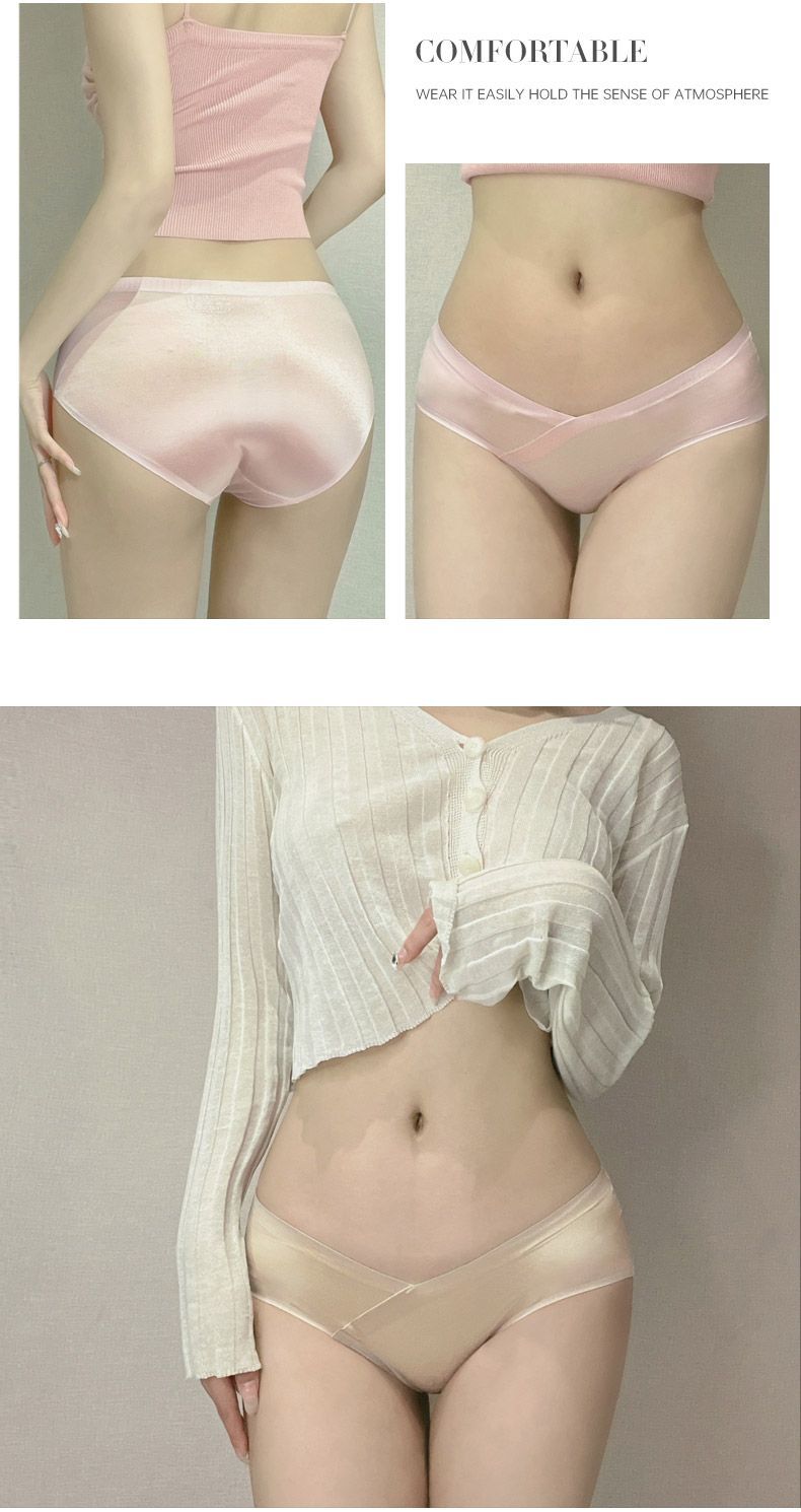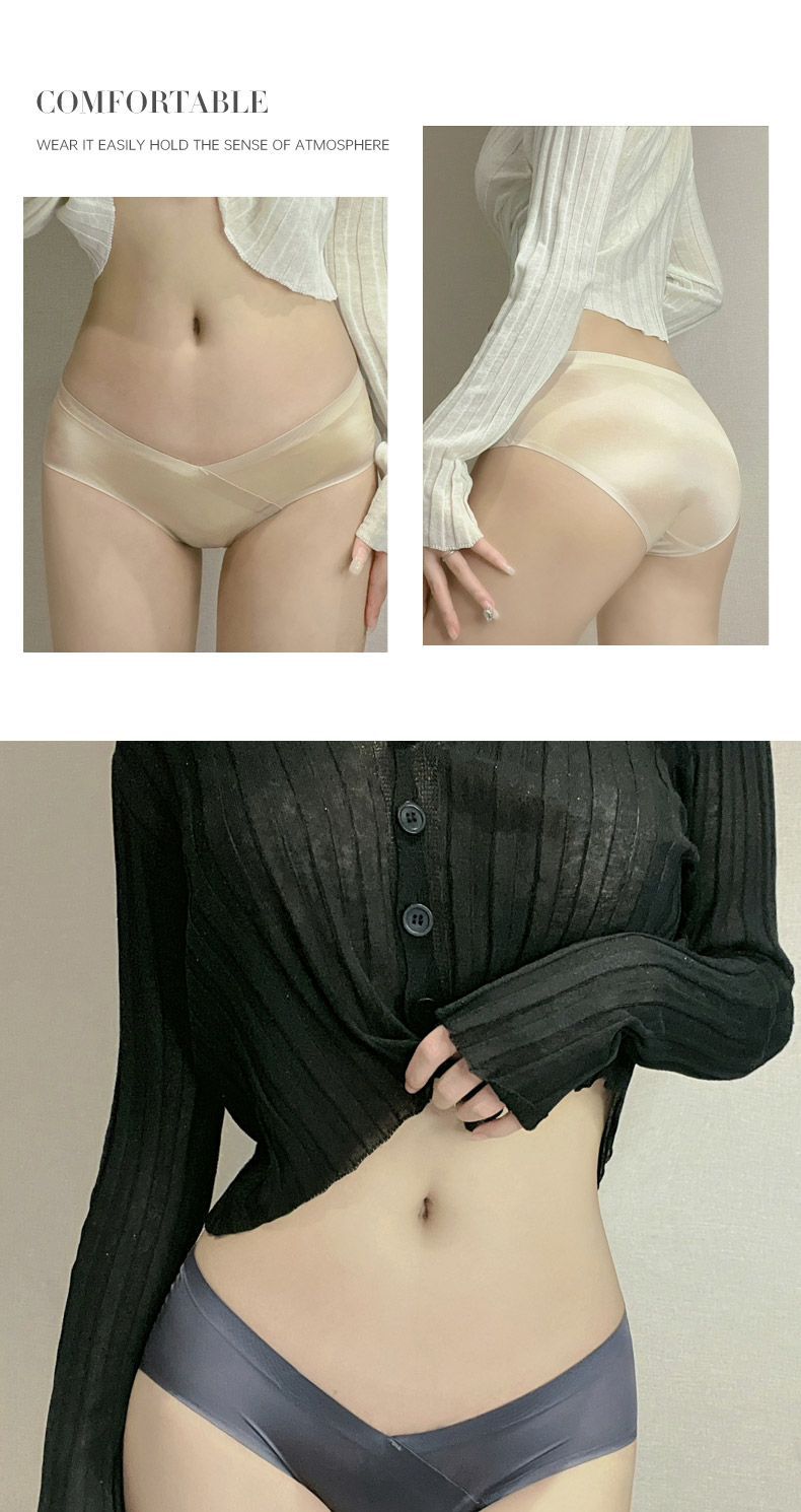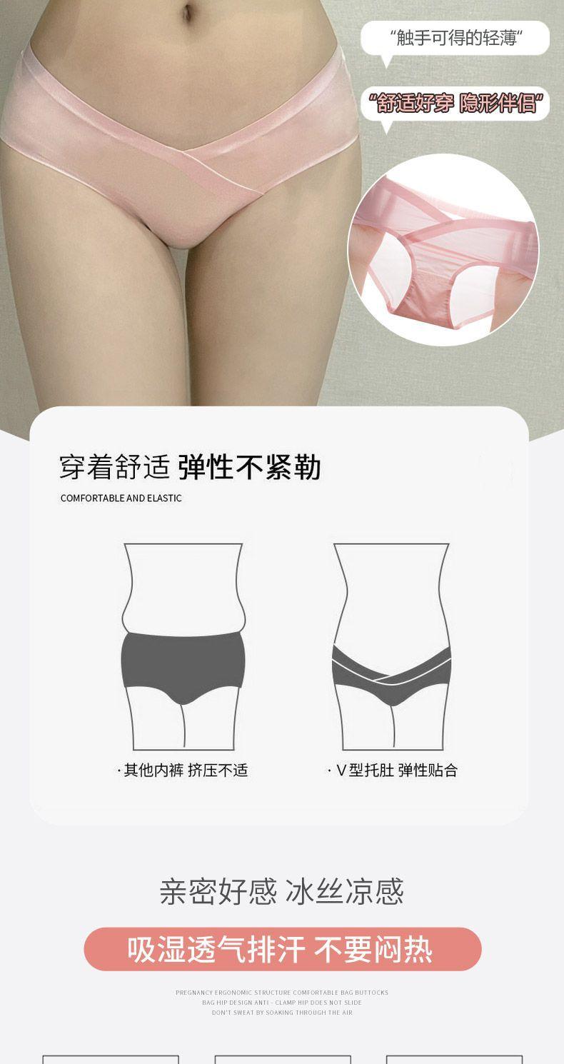 Ropa interior sin costuras de seda de hielo para mujer V-Shou Cintura baja Transpirable Algodón puro Entrepierna antibacteriana Calzones finos para mujer Antes y después del embarazo