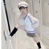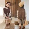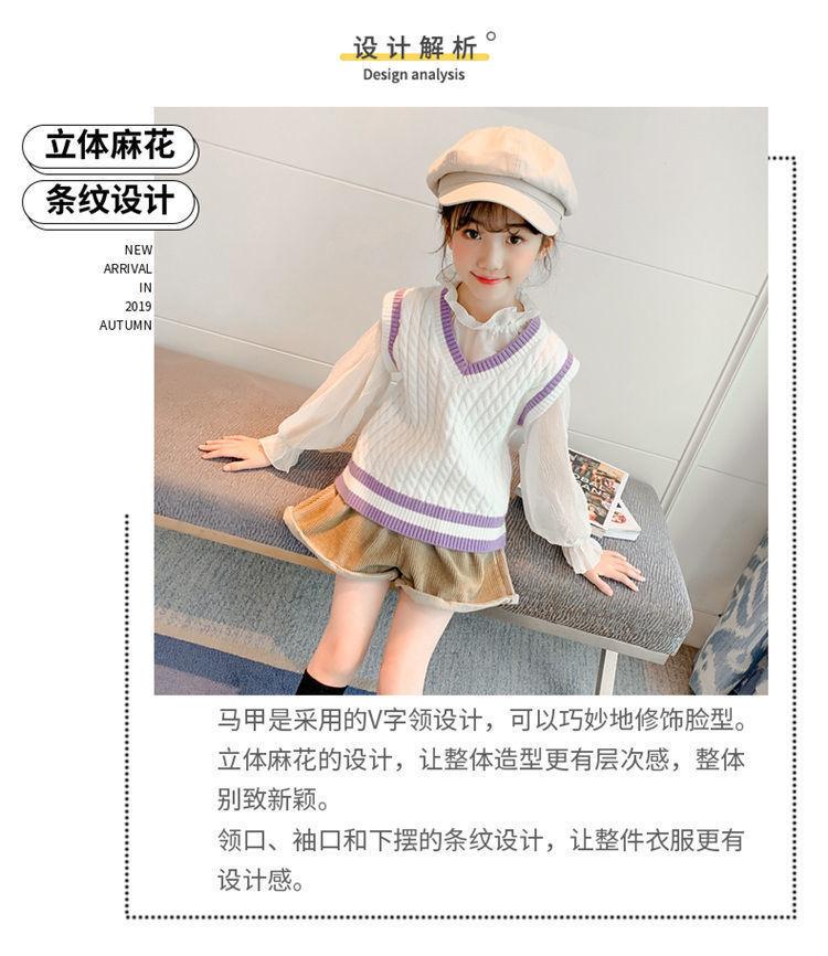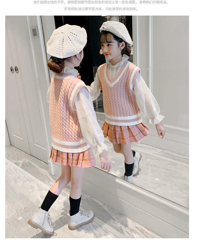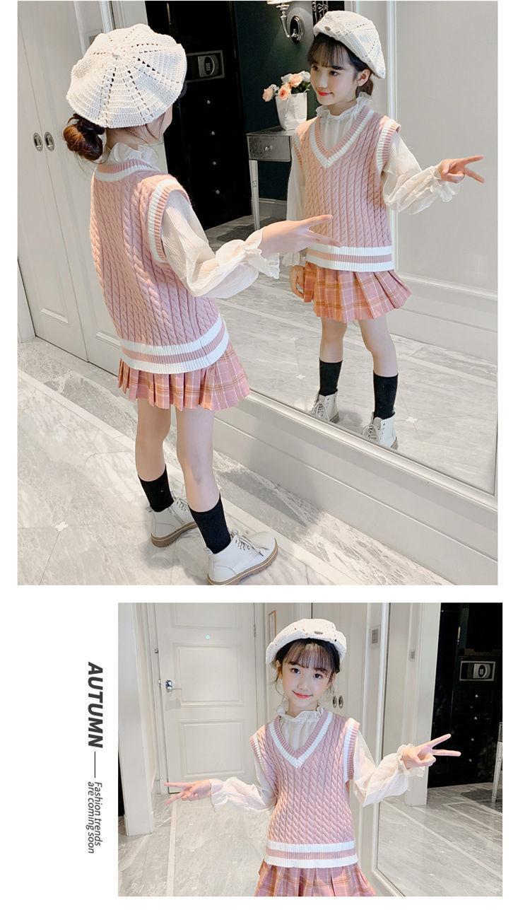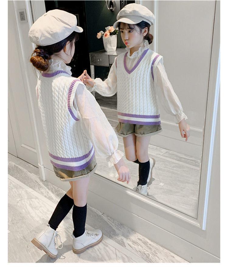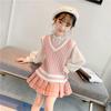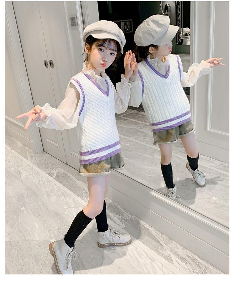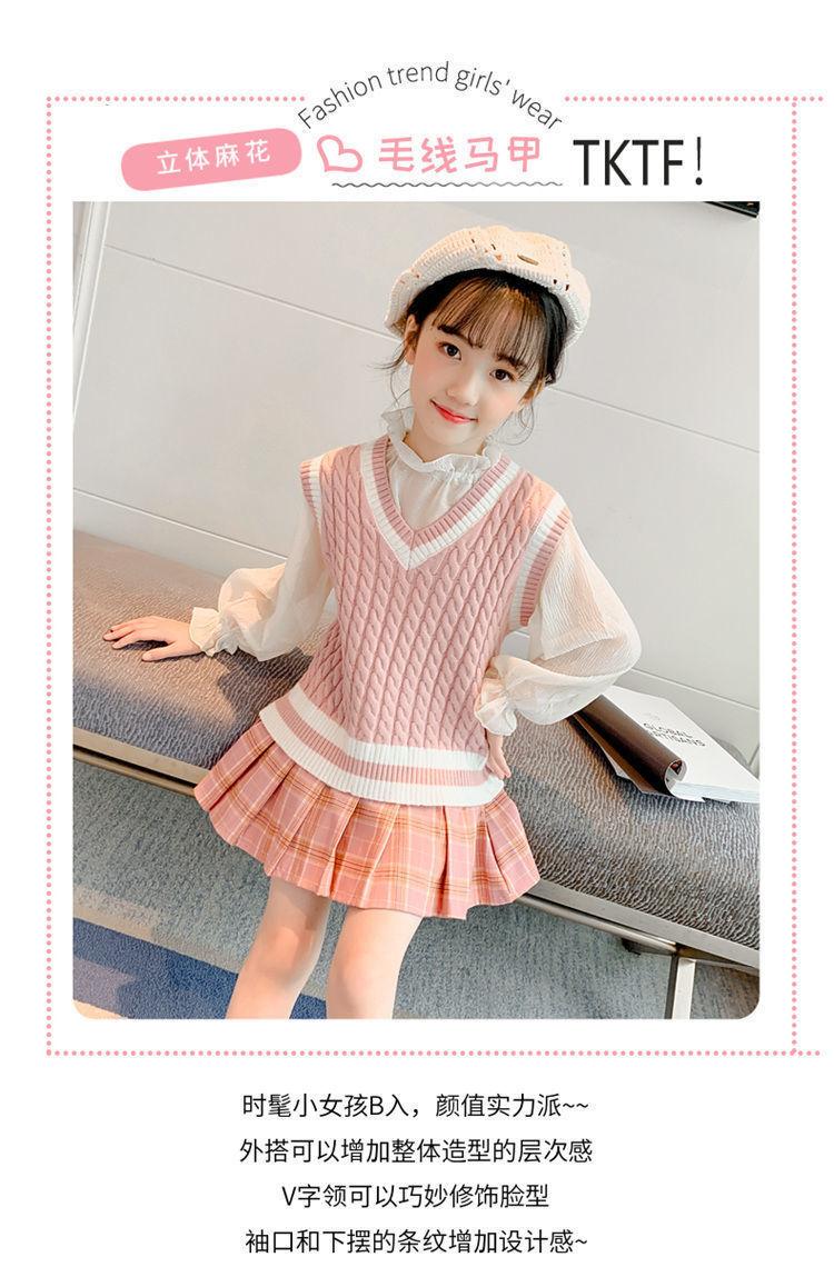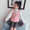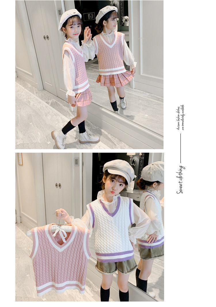 Chaleco de niña, chaleco con cuello en V, otoño e invierno, nuevo chaleco de punto para niños, estilo universitario de celebridades de Internet, suéter de estilo occidental para estudiantes de escuela primaria.