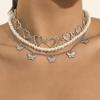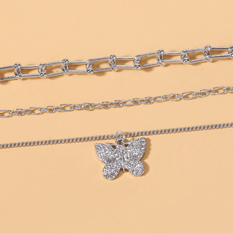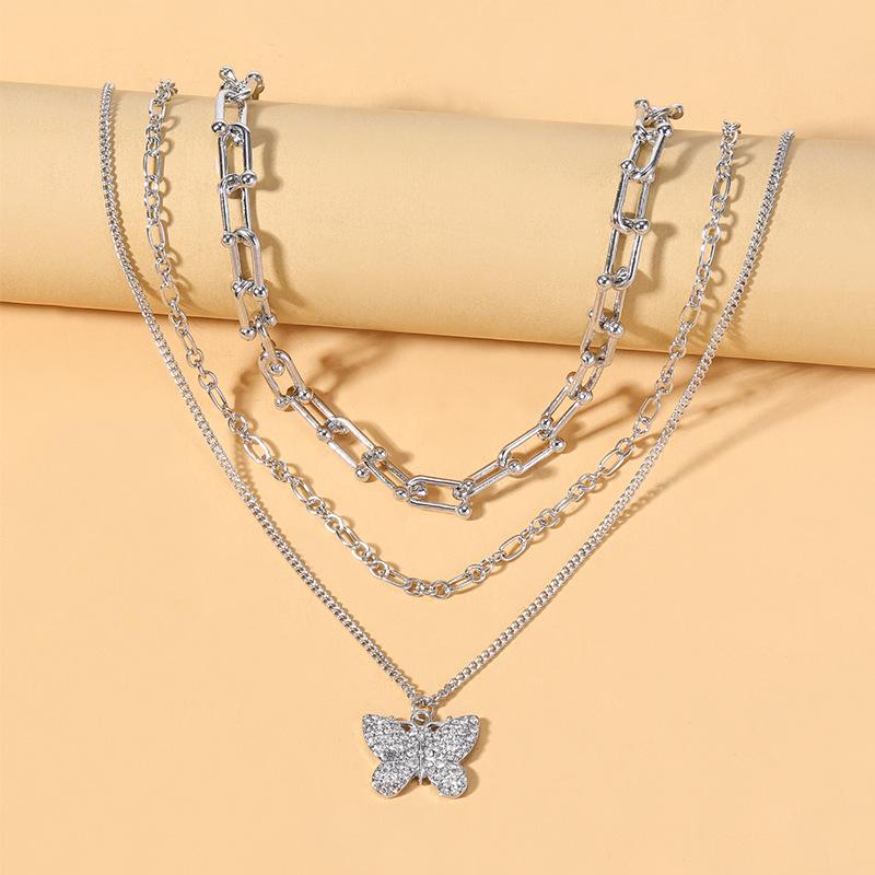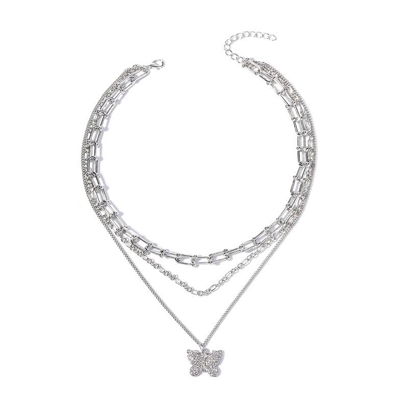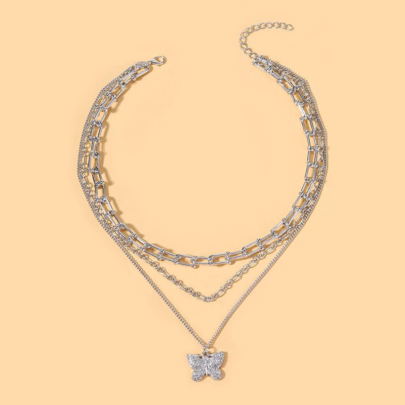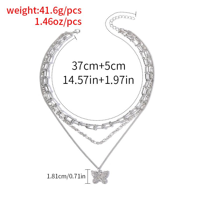 Joyería Transfronteriza Europea y Americana al por Mayor con Colgantes de Mariposa Incrustados de Diamantes, Collares Multicapa de Cadena Gruesa, Cadenas de Clavícula de Personalidad Exagerada para Celebridades de Internet