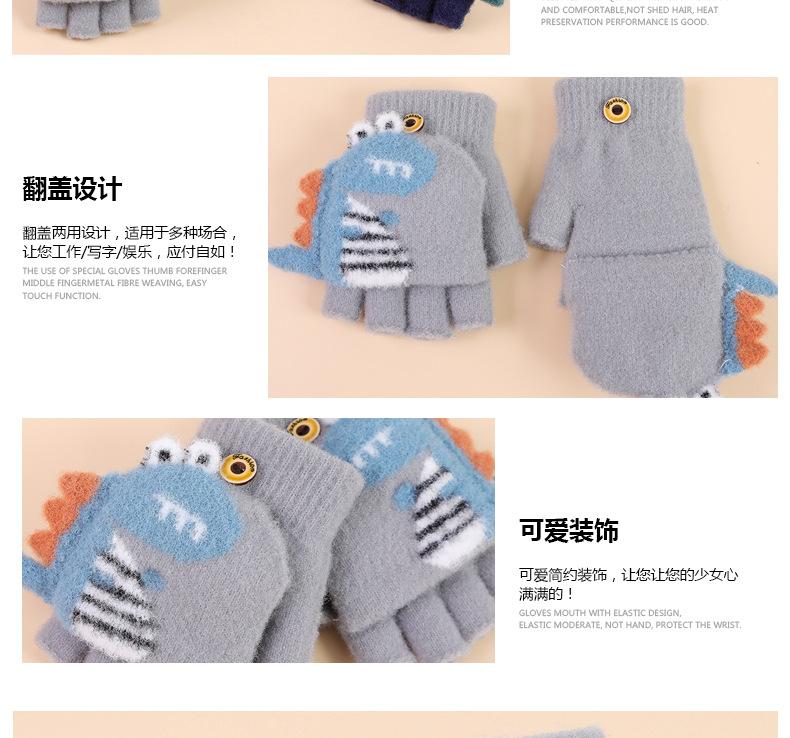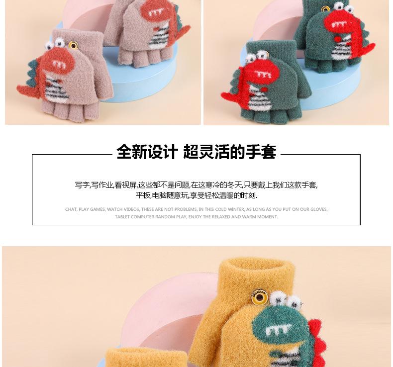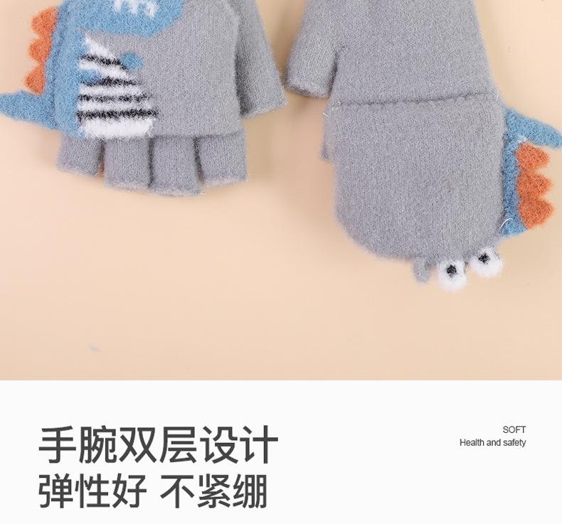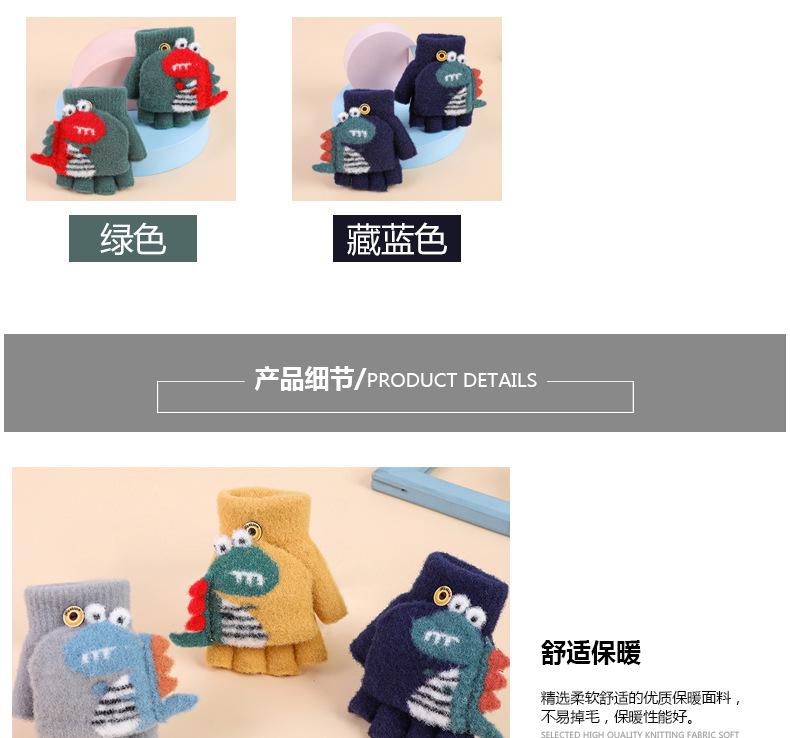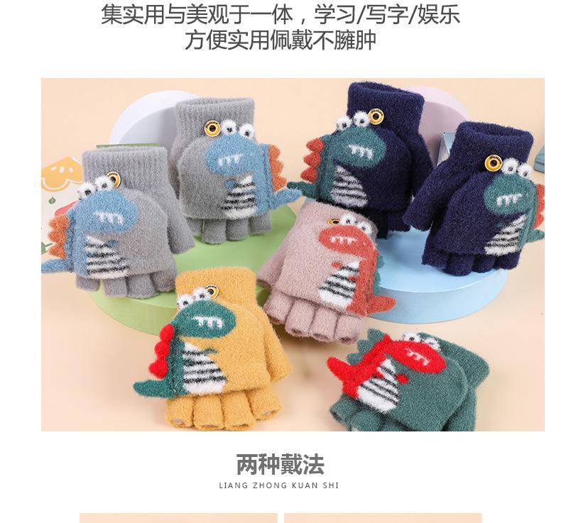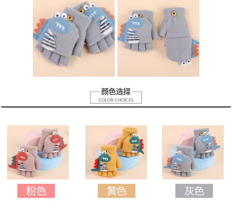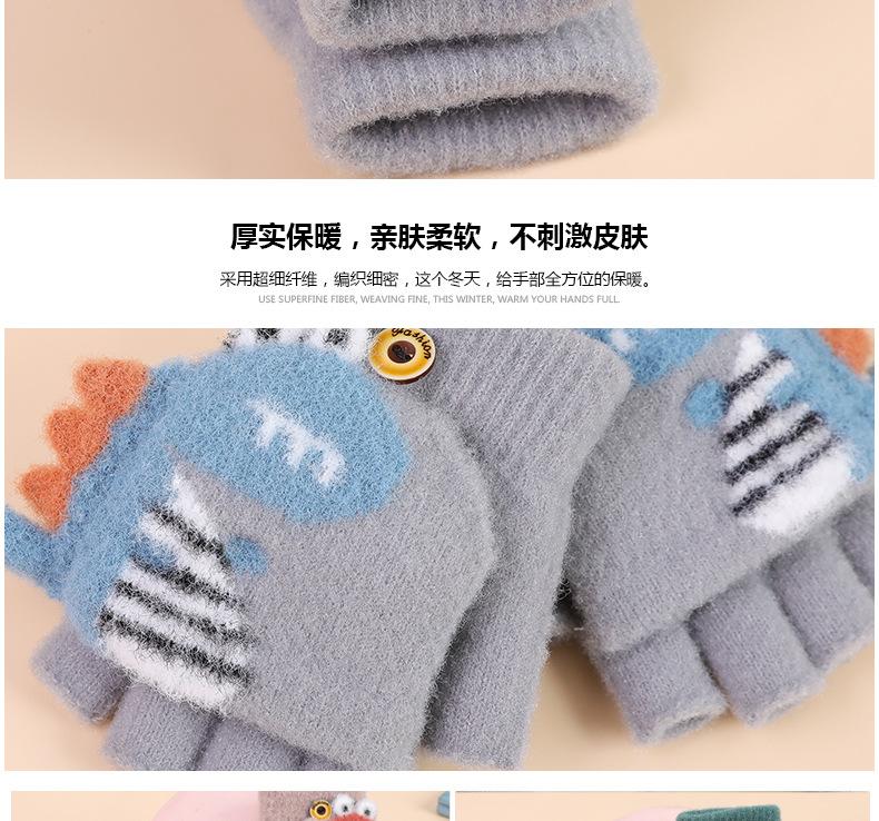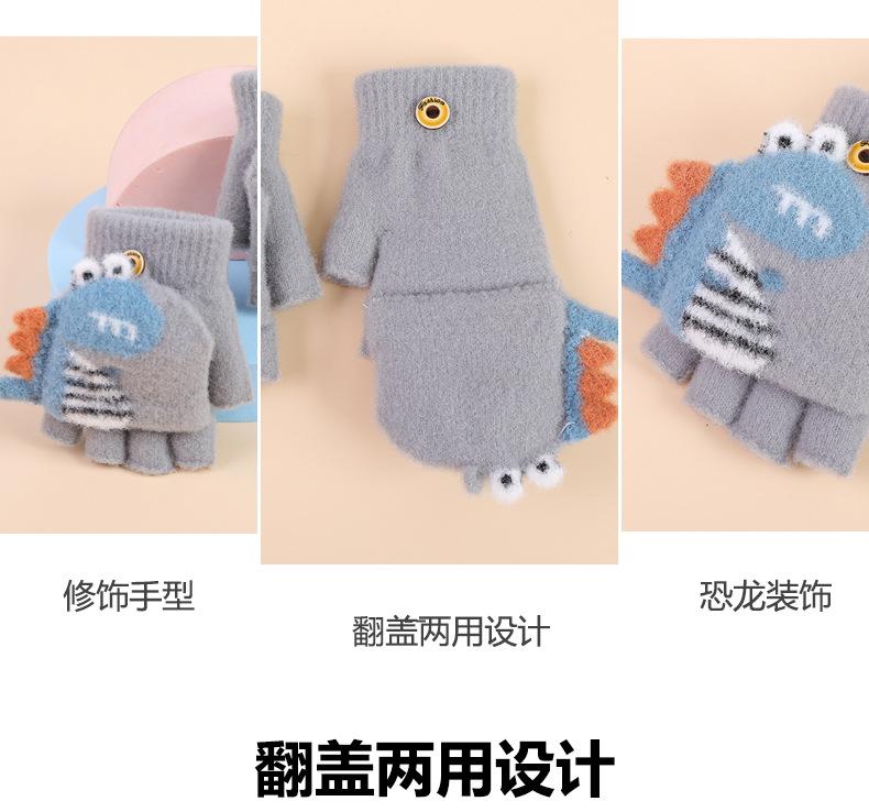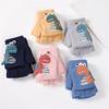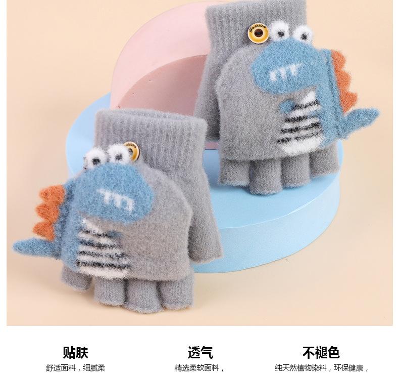 Guantes cálidos de invierno para niños, bonitos guantes de lana tejidos con diseño de cocodrilo de dibujos animados, con dedos abiertos y medio dedo, para niños y niñas y estudiantes.