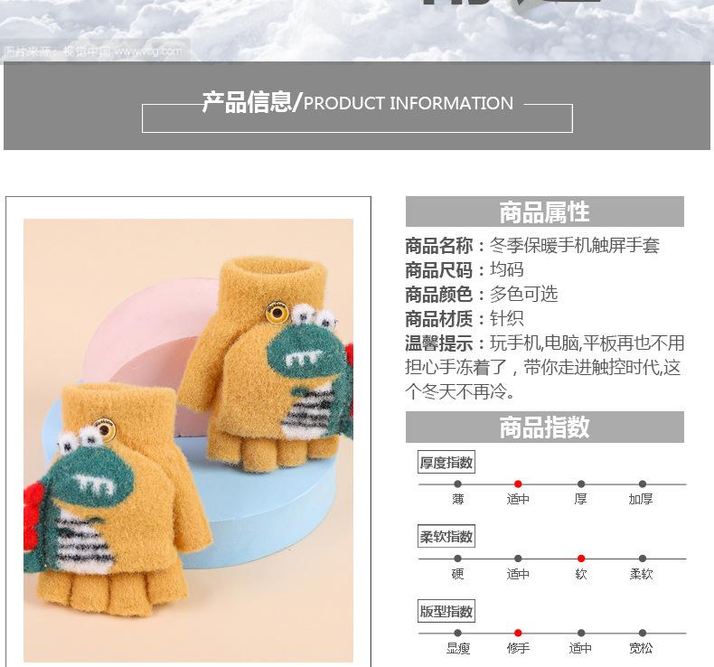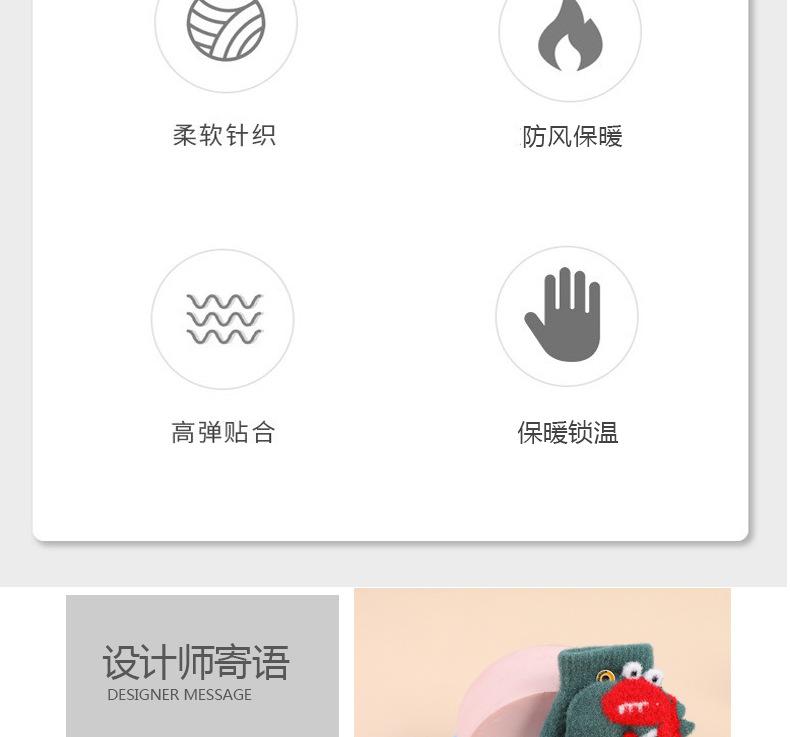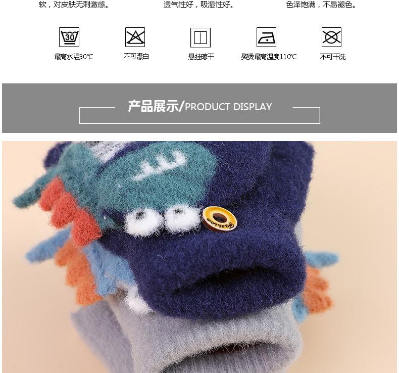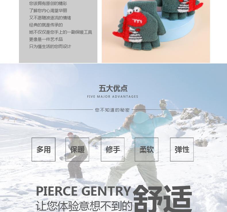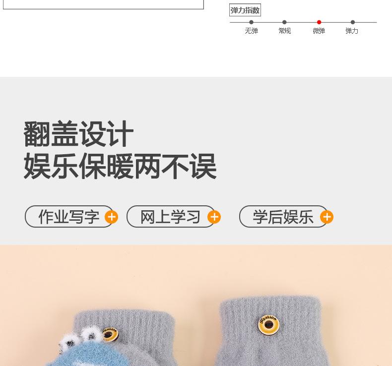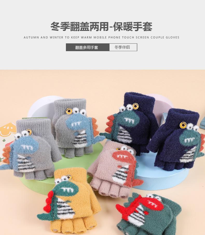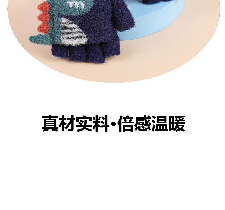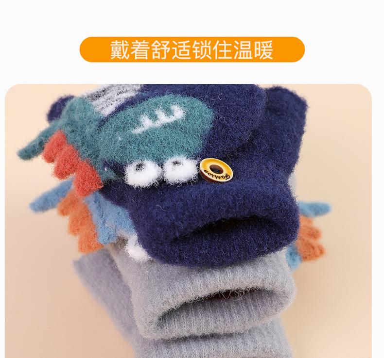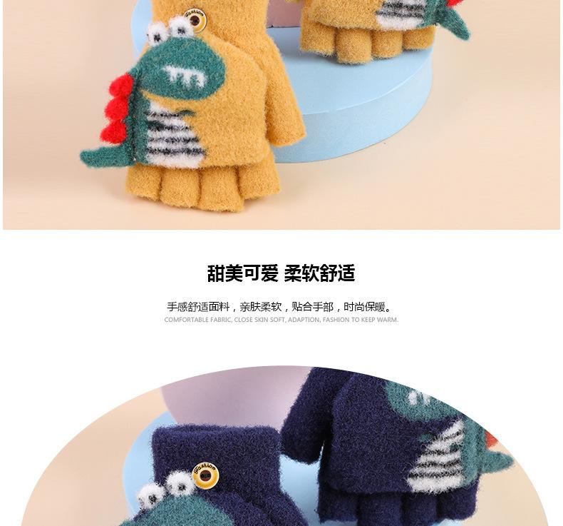 Guantes cálidos de invierno para niños, bonitos guantes de lana tejidos con diseño de cocodrilo de dibujos animados, con dedos abiertos y medio dedo, para niños y niñas y estudiantes.