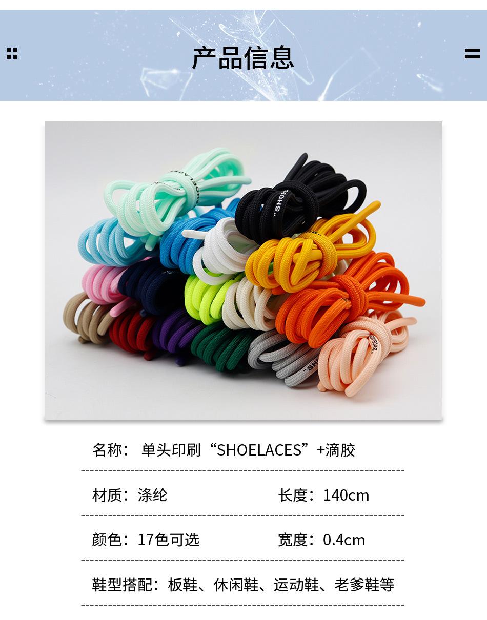 Cordones Kulokin de 4 mm de ancho, redondos, de una sola cabeza, con impresión de goma, para zapatillas, zapatos casuales, sombreros y cuerdas.