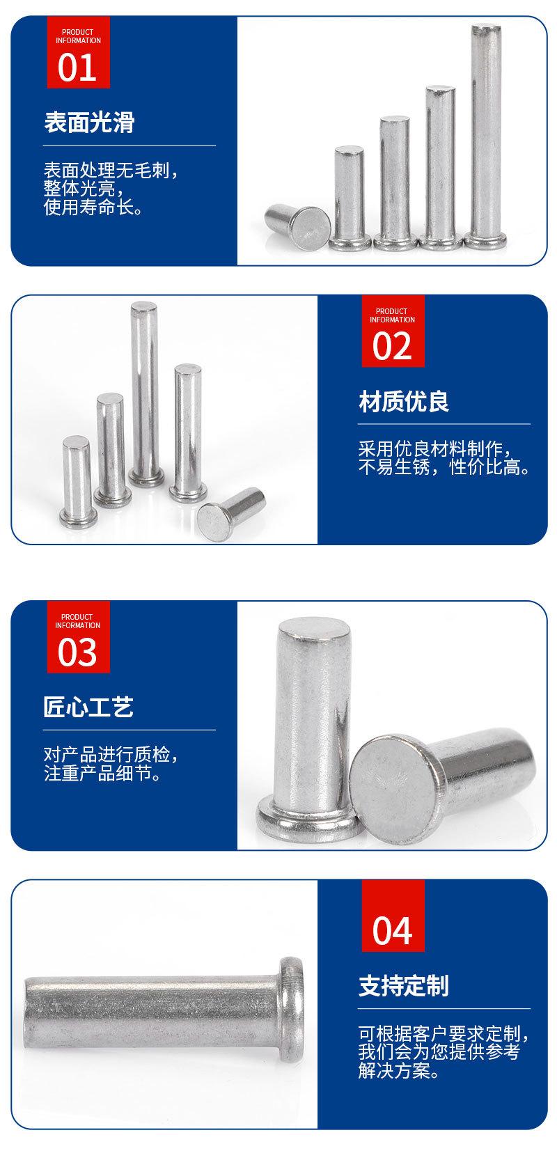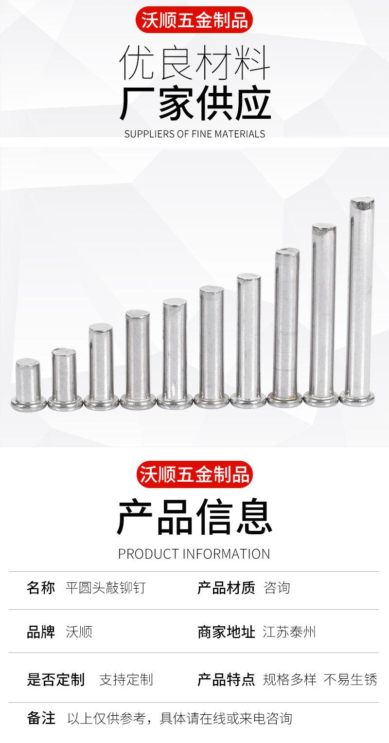 Remache de cabeza plana de acero inoxidable 304 GB109, remache de cabeza redonda plana, remache de golpe sólido, remache de golpe manual M1.5-M12