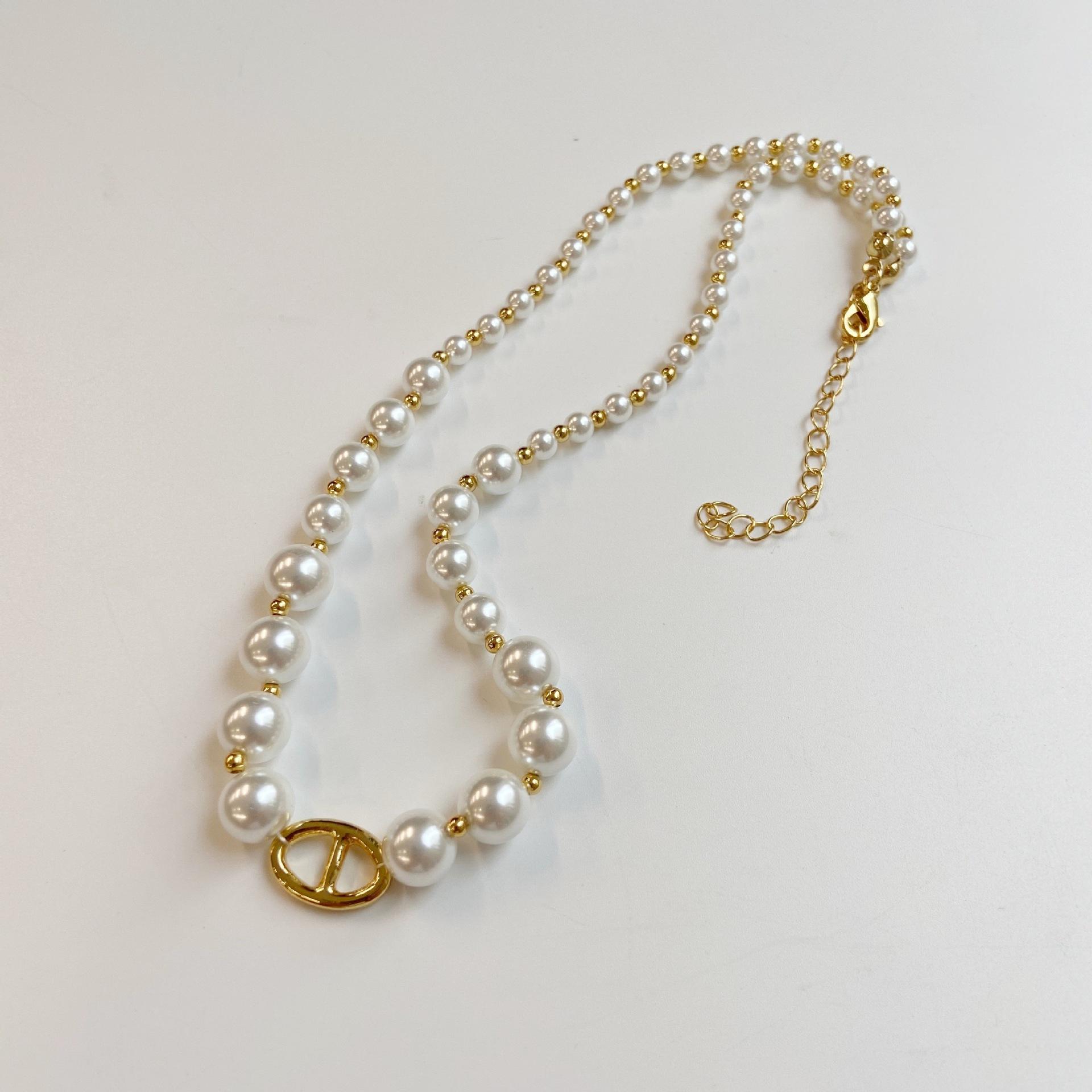 Collar de perlas de moda europea y americana, estilo retro, sencillo y elegante, cadena de clavícula ligera, de lujo, con nicho para el cuello, gargantilla