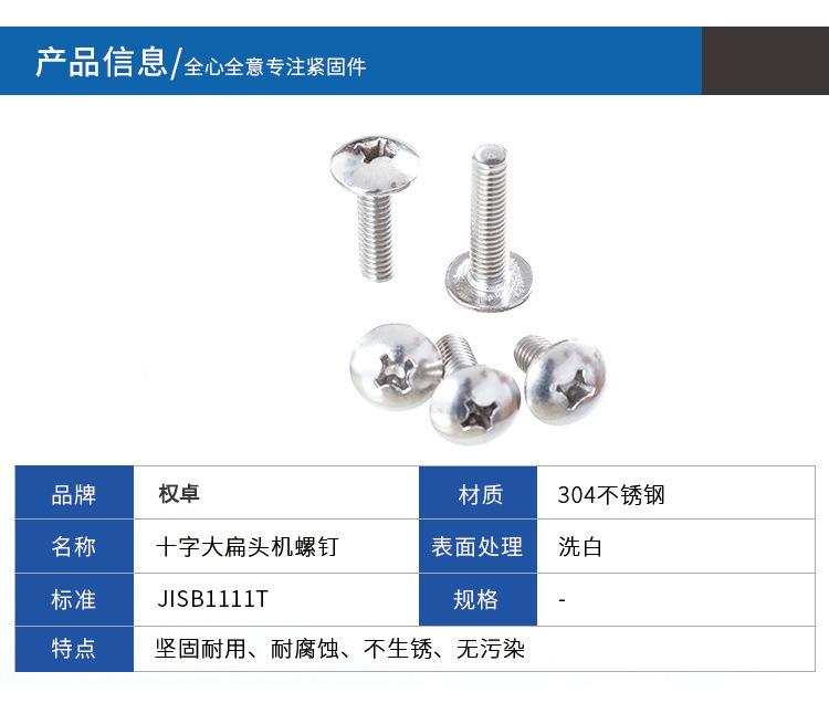 Tornillo de máquina de cabeza plana grande en cruz de acero inoxidable 316 M4M5M6M8, tornillo de cabeza de paraguas, tornillo de cabeza grande, tornillo de cabeza de hongo